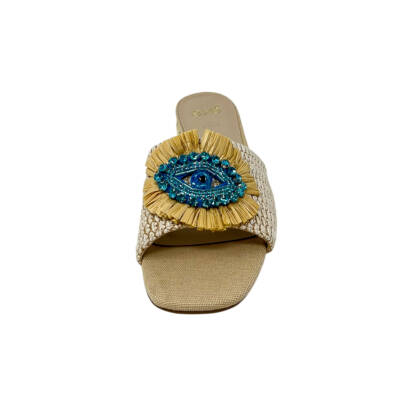EXE’ 424 CIABATTA FASCIA OCCHIO RAFIA BEIGE -NERO