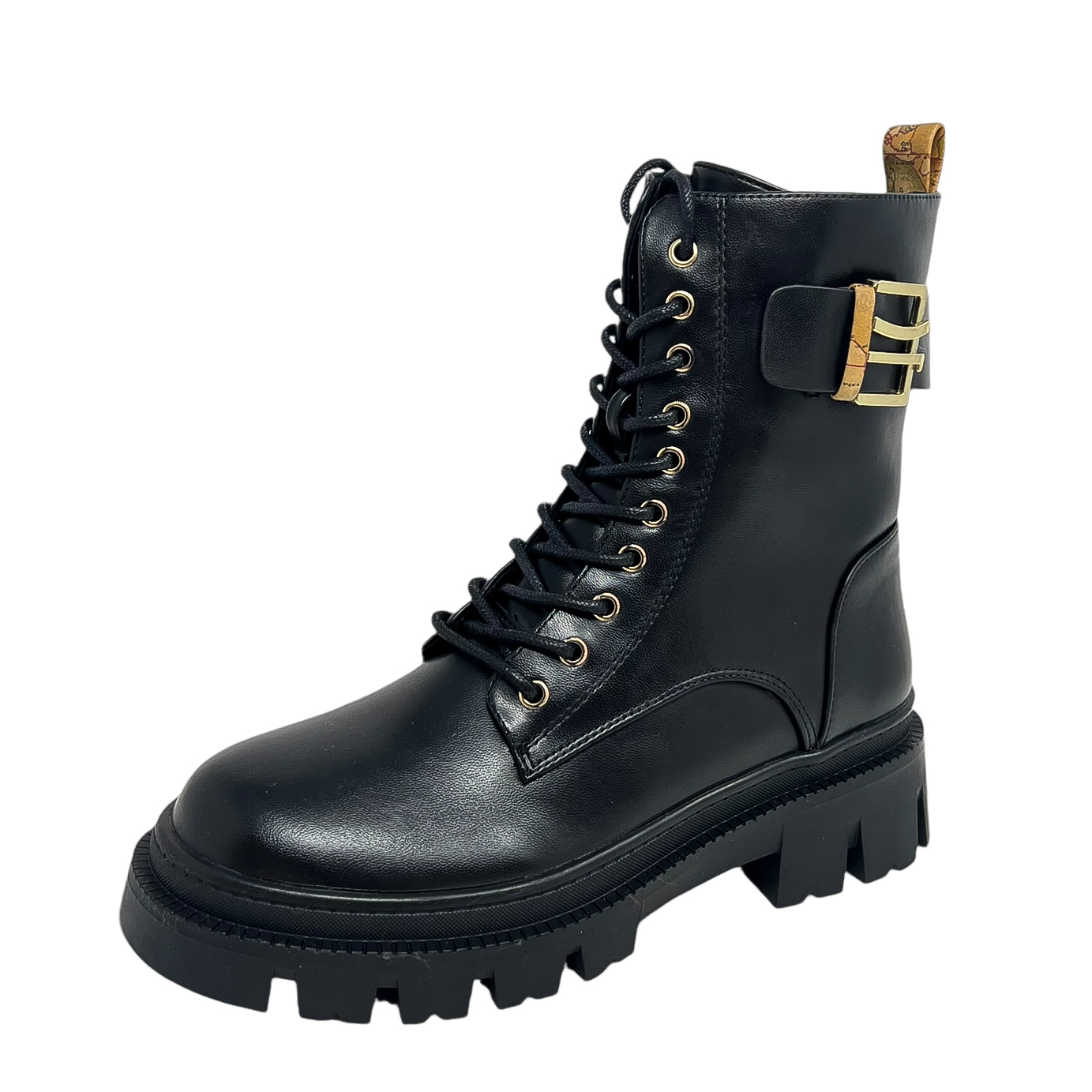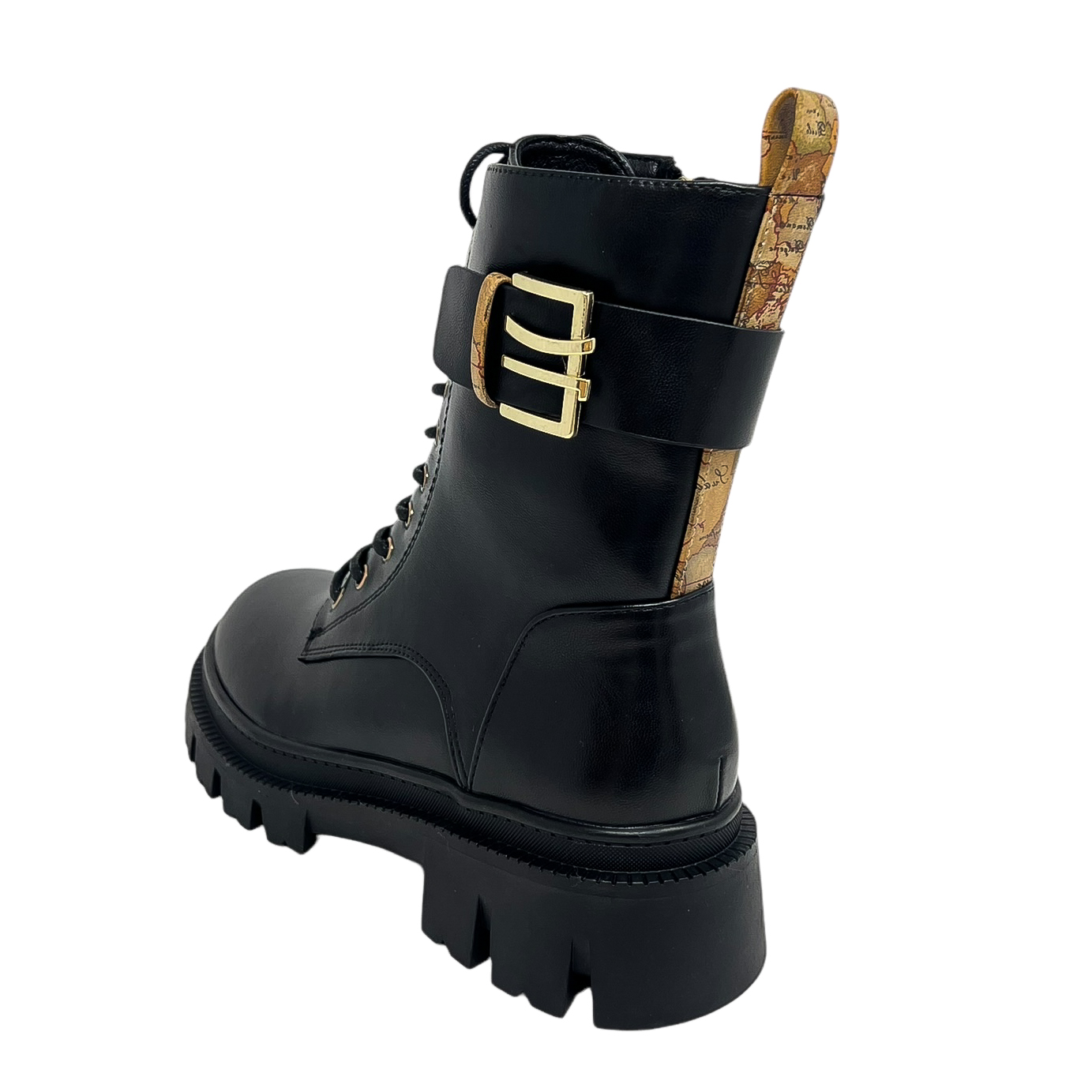 Anfibio nero con fibbia laterale e suola di 3 centimetri a carrarmato