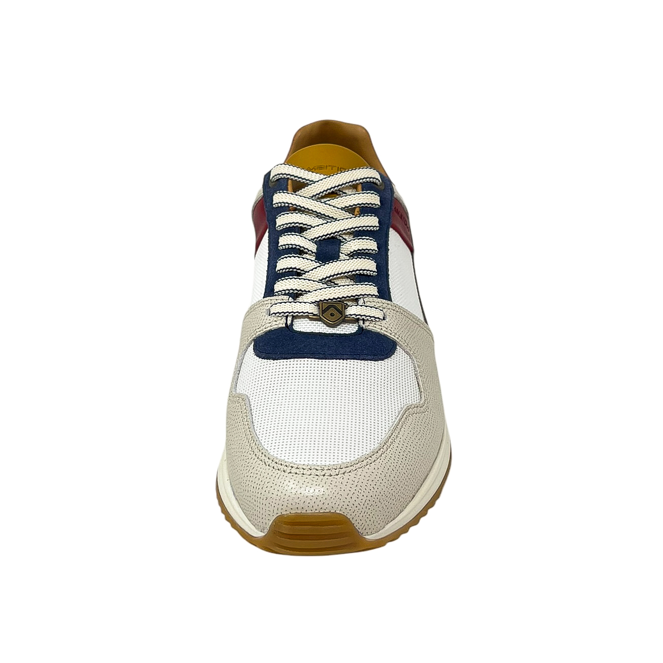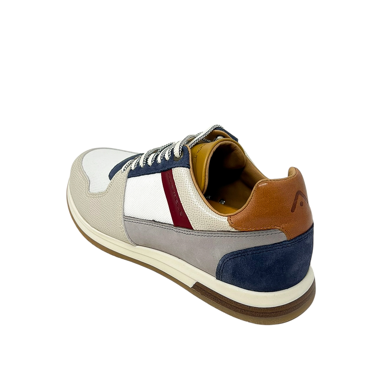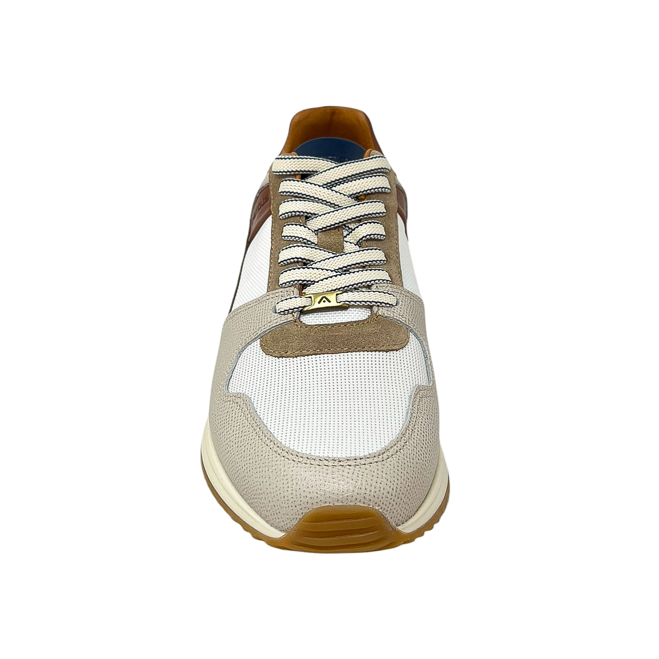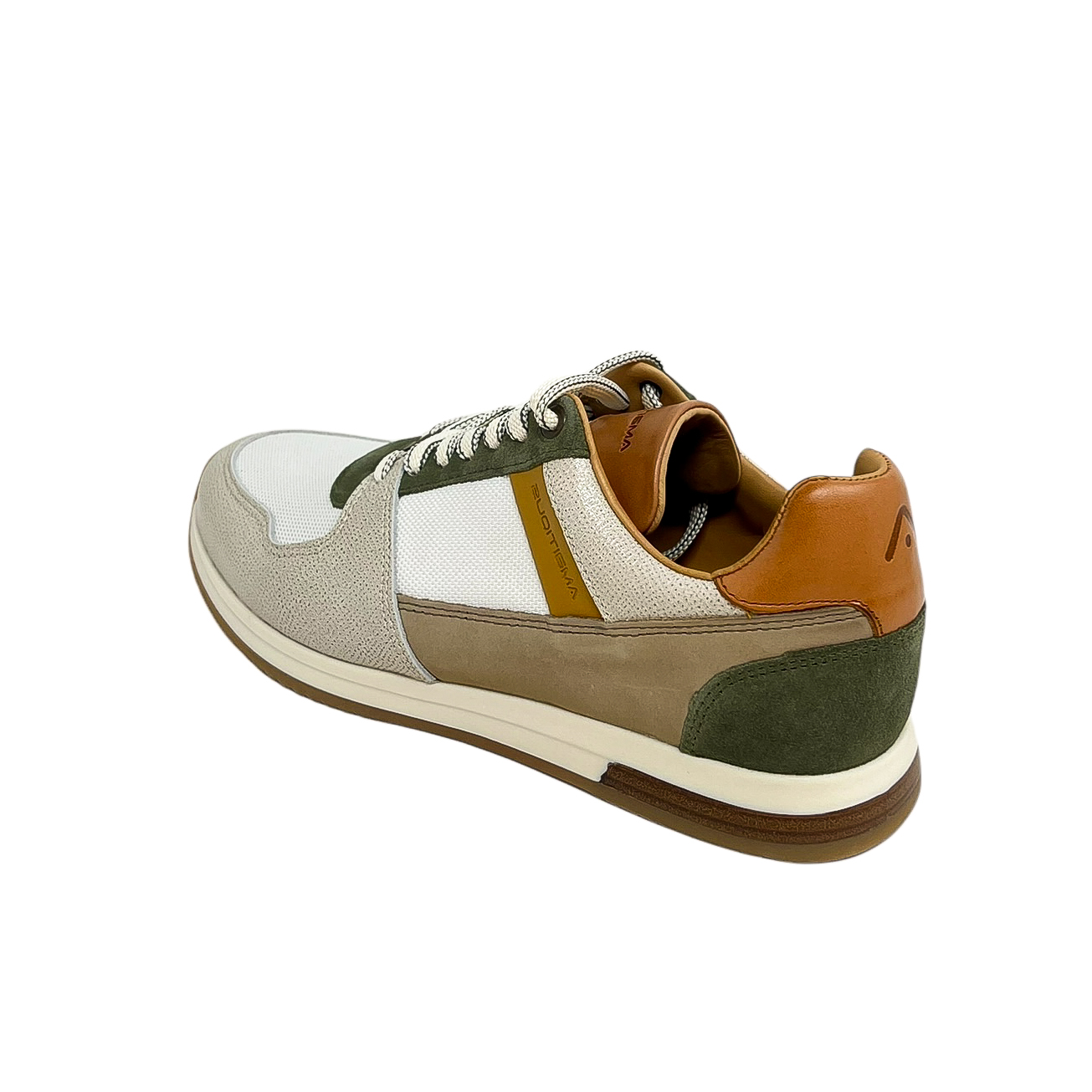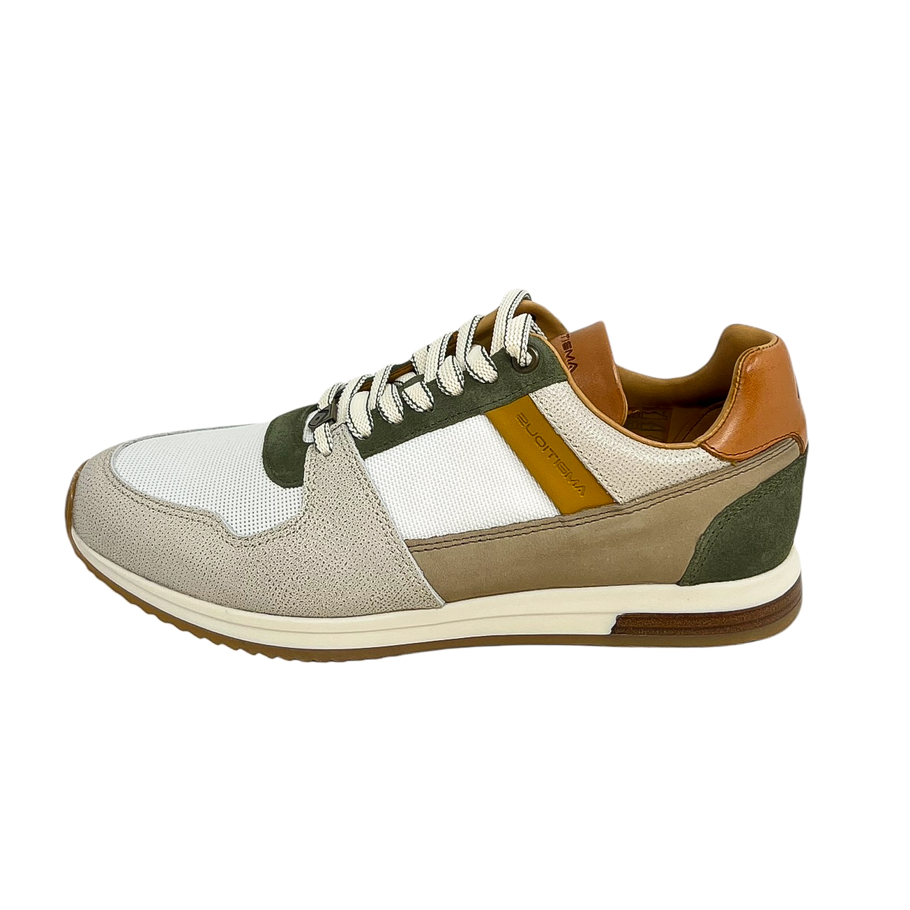 Sneaker running casual in pelle e camoscio beige/bianco/cuoio-beige/bianco/verde-beige/bianco/blu
