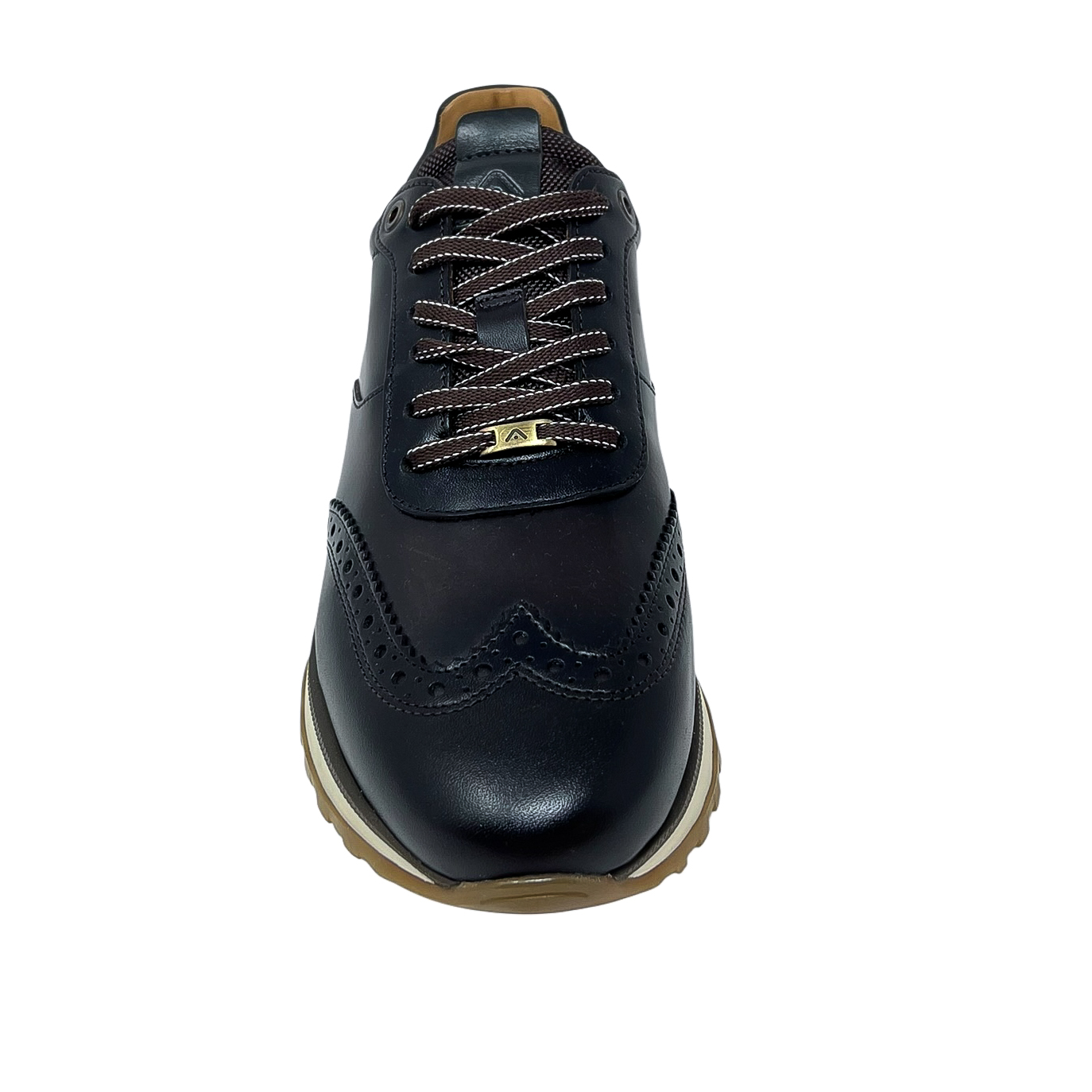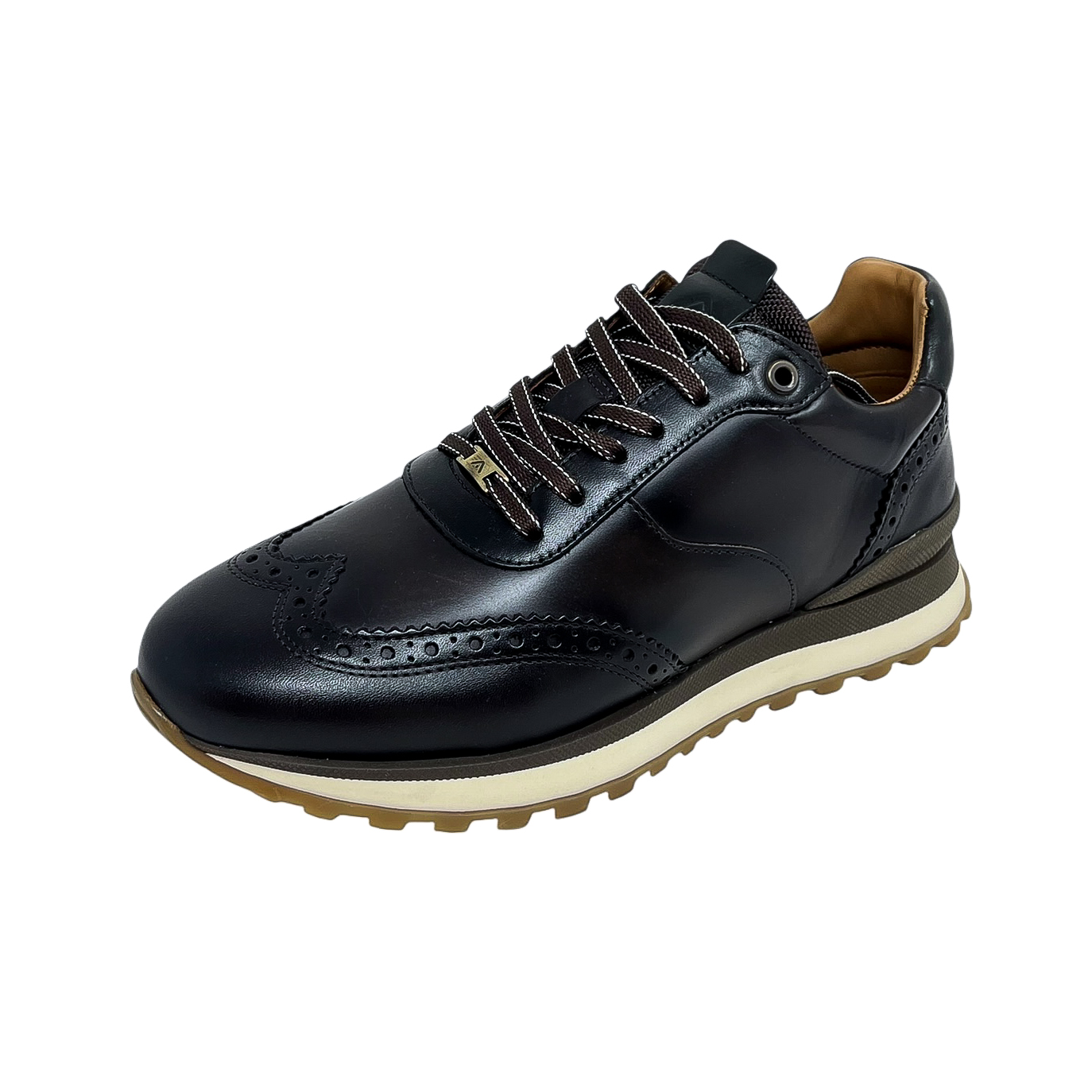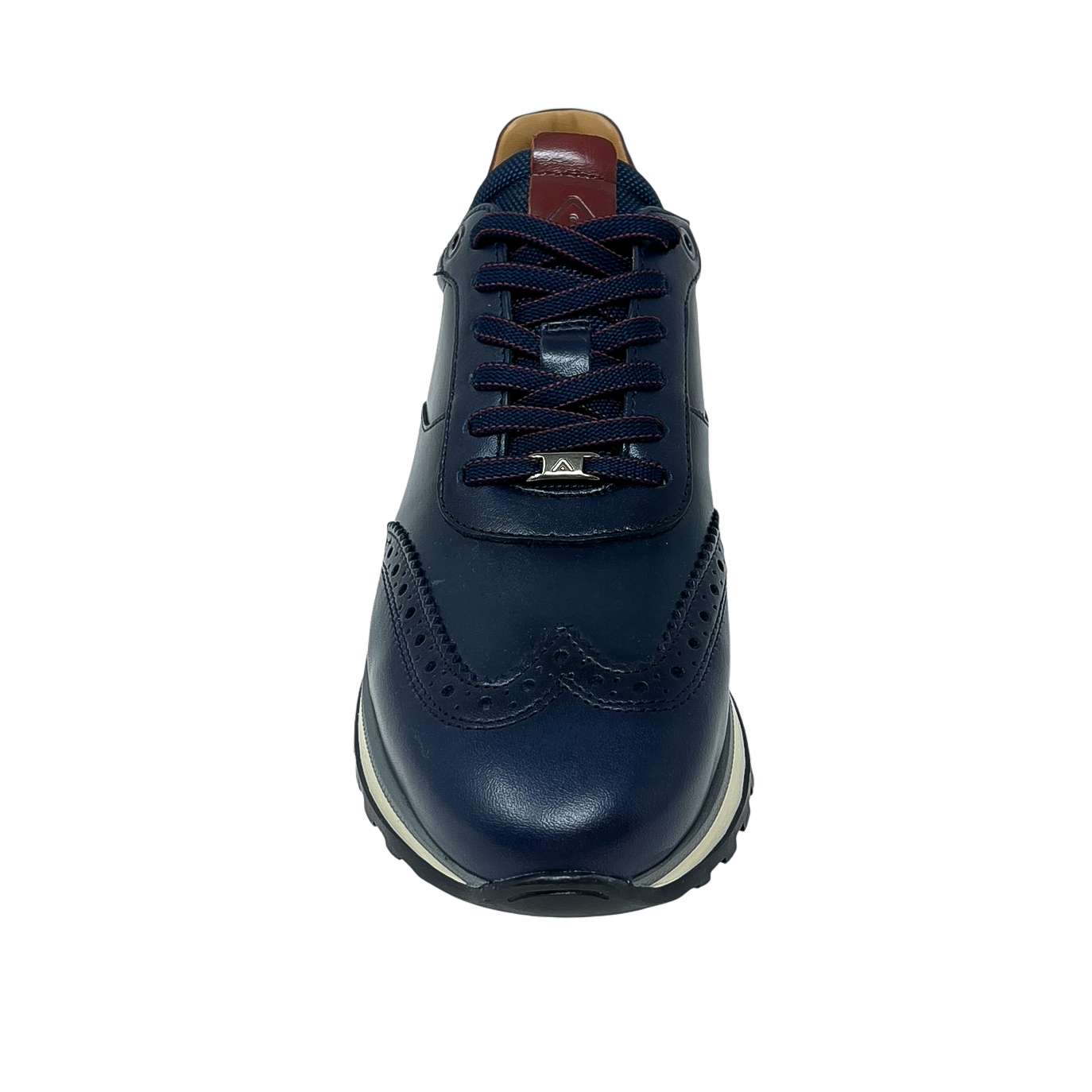 Stringata running in pelle blu o marrone con ricamo a coda di rondine
