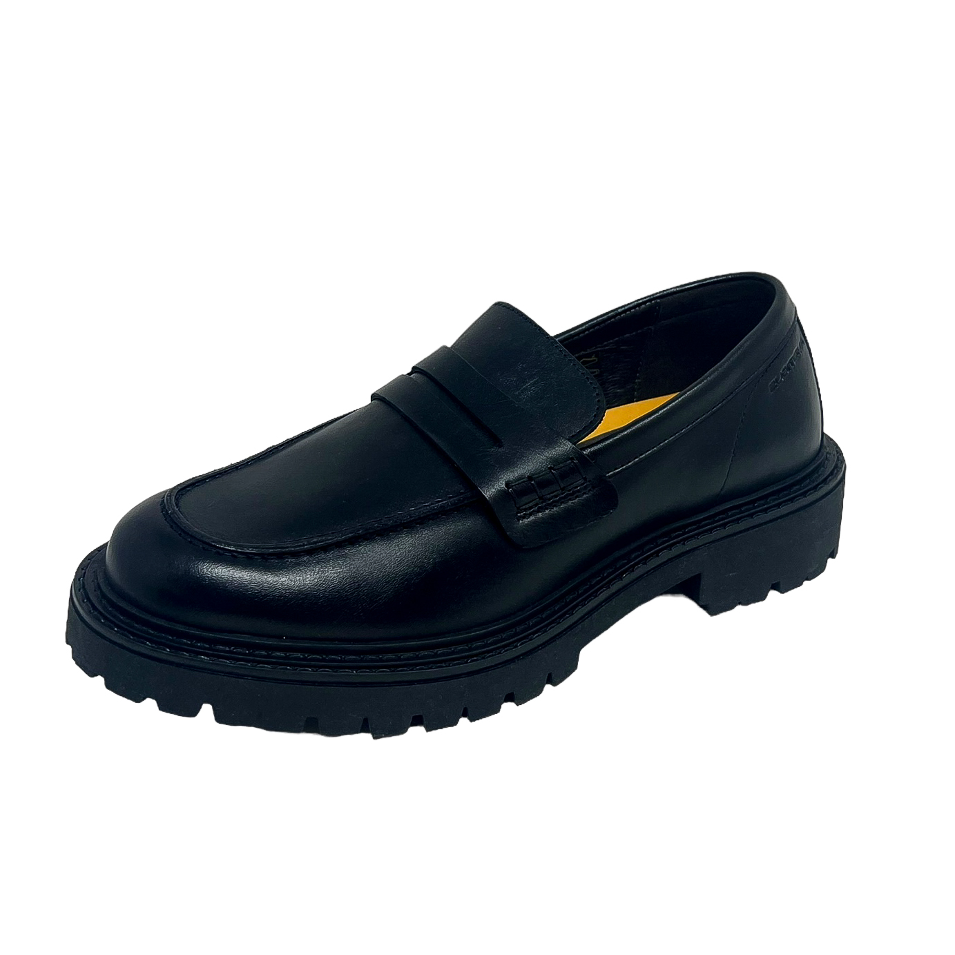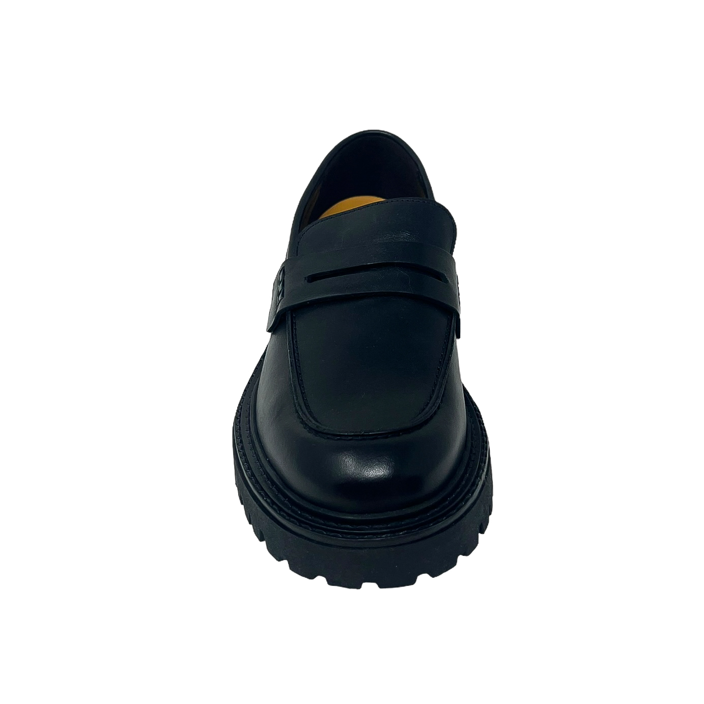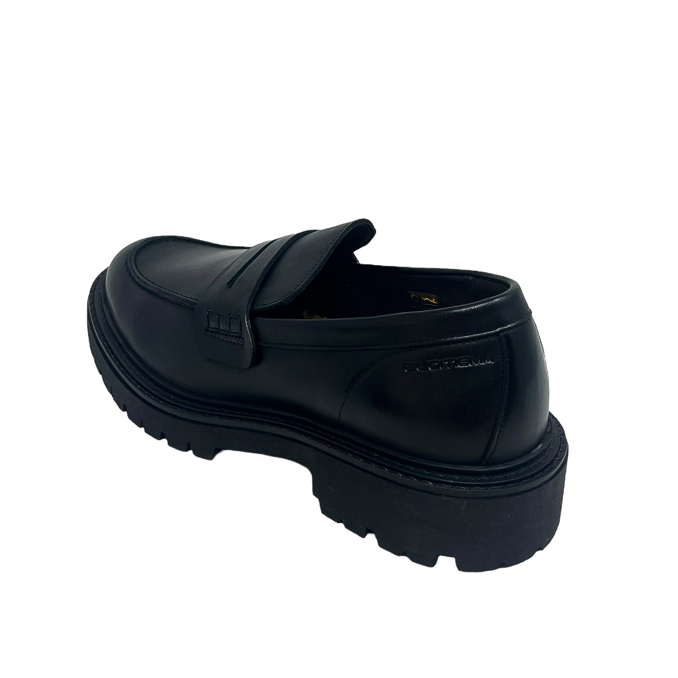 Mocassino in pelle nera con fascetta e suola a carrarmato