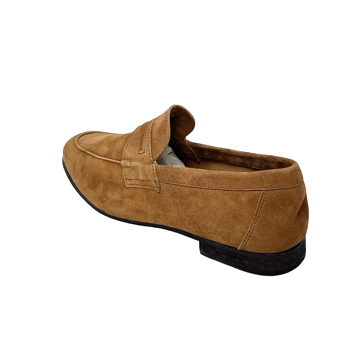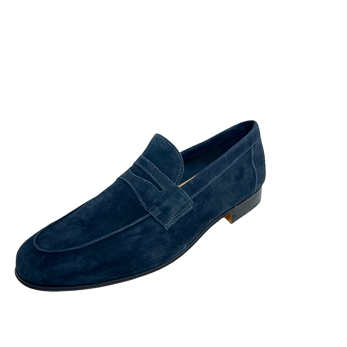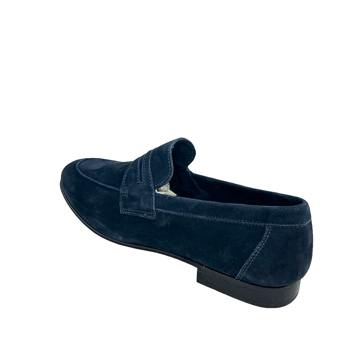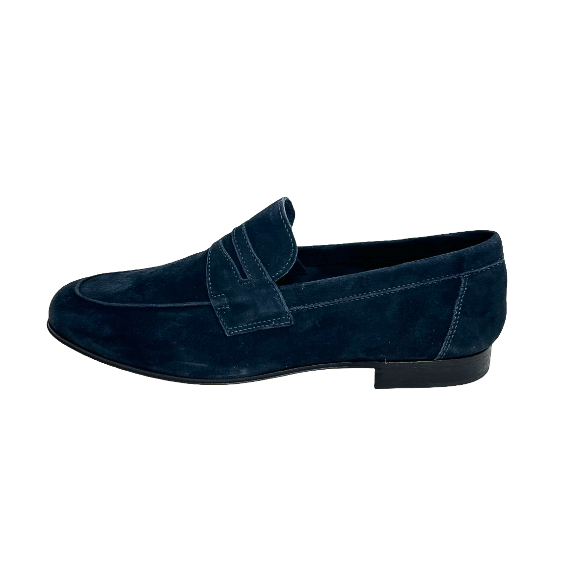 Mocassino con fascetta in camoscio blu, cuoio o marrone