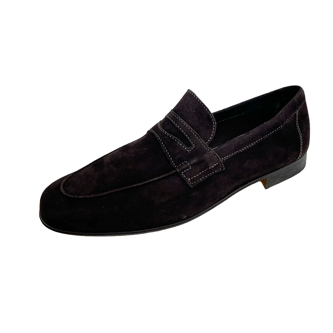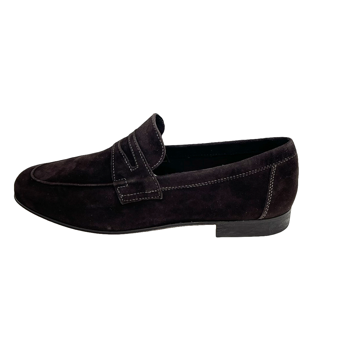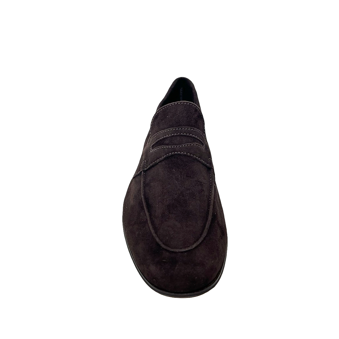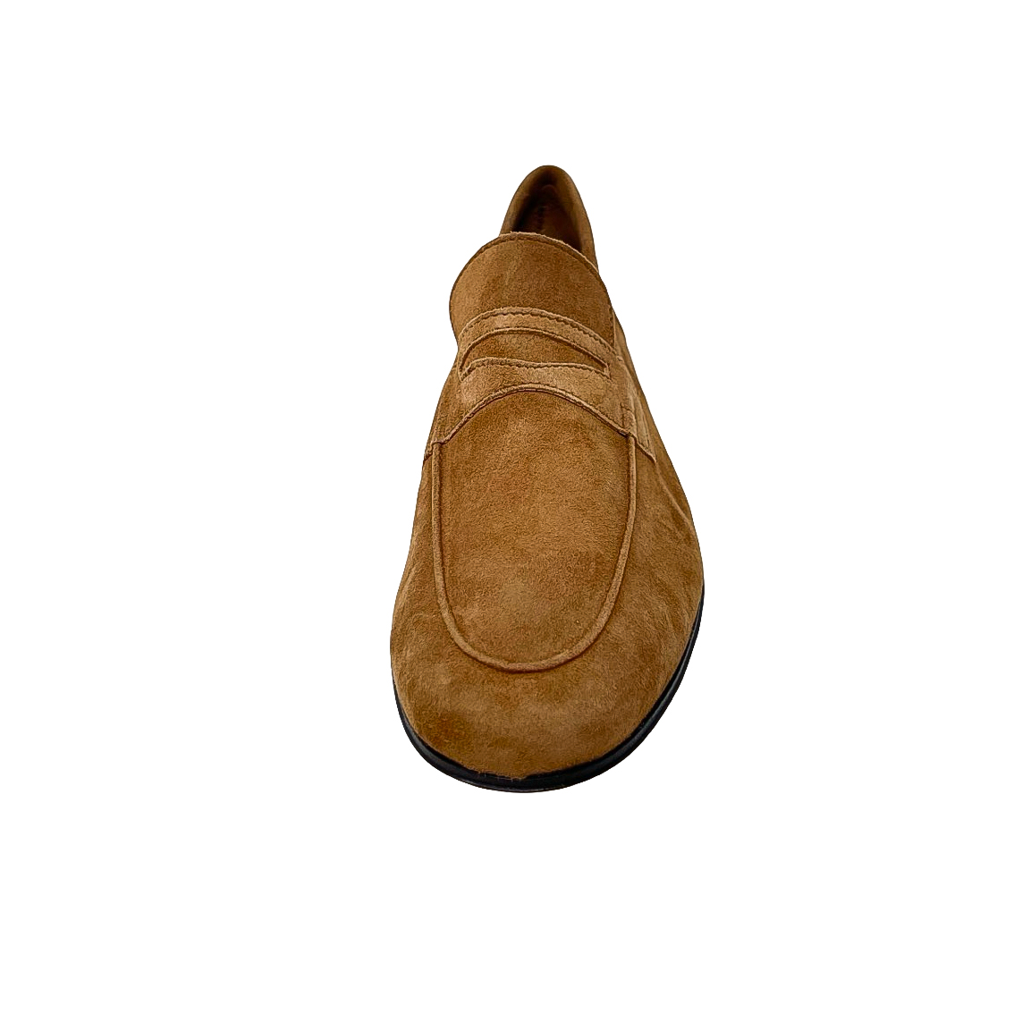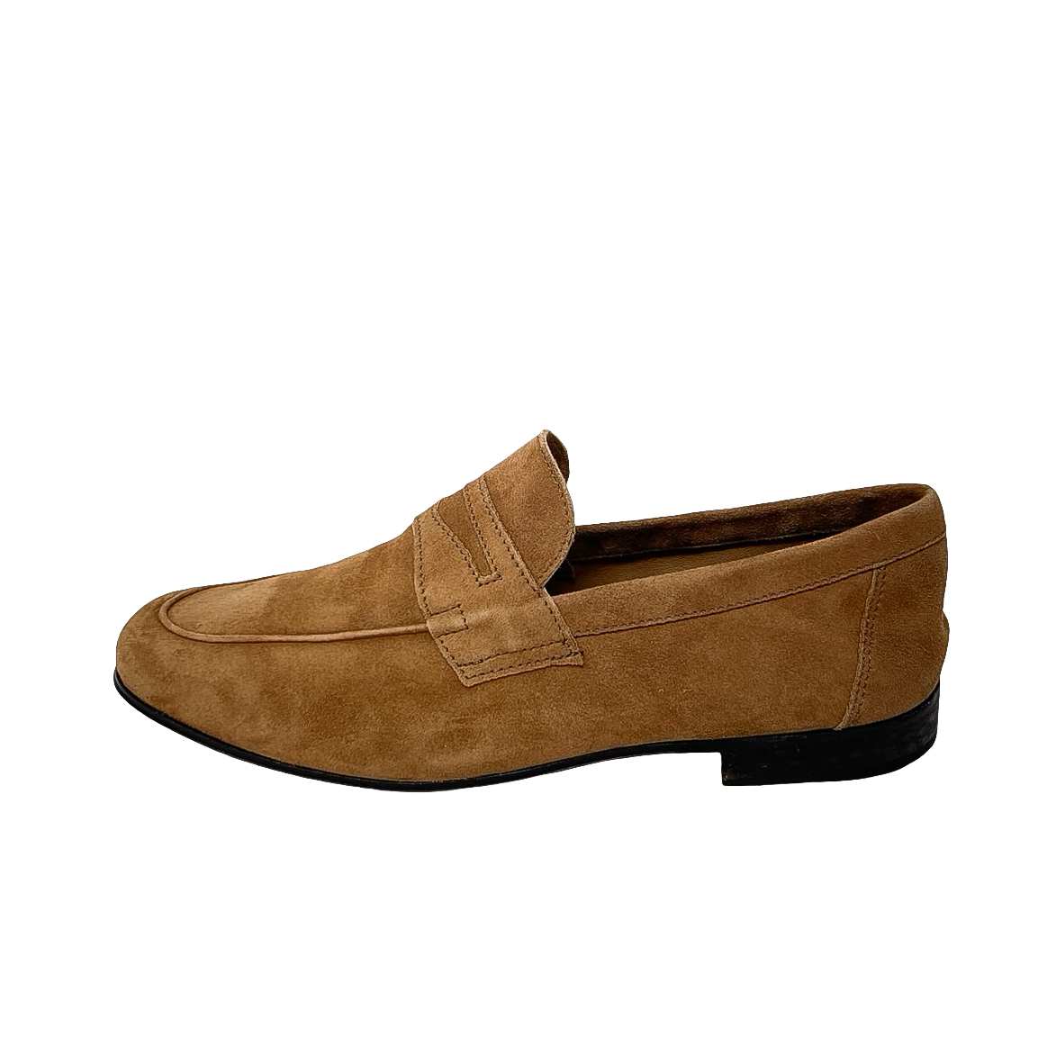 Mocassino con fascetta in camoscio blu, cuoio o marrone
