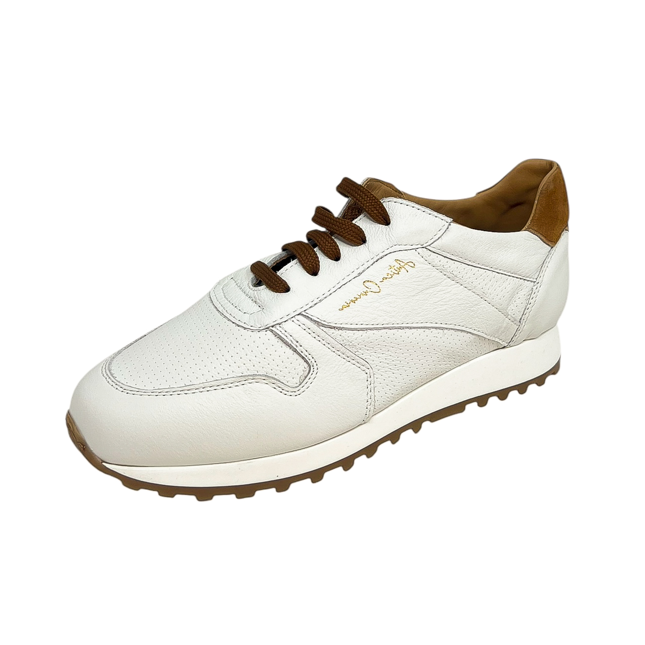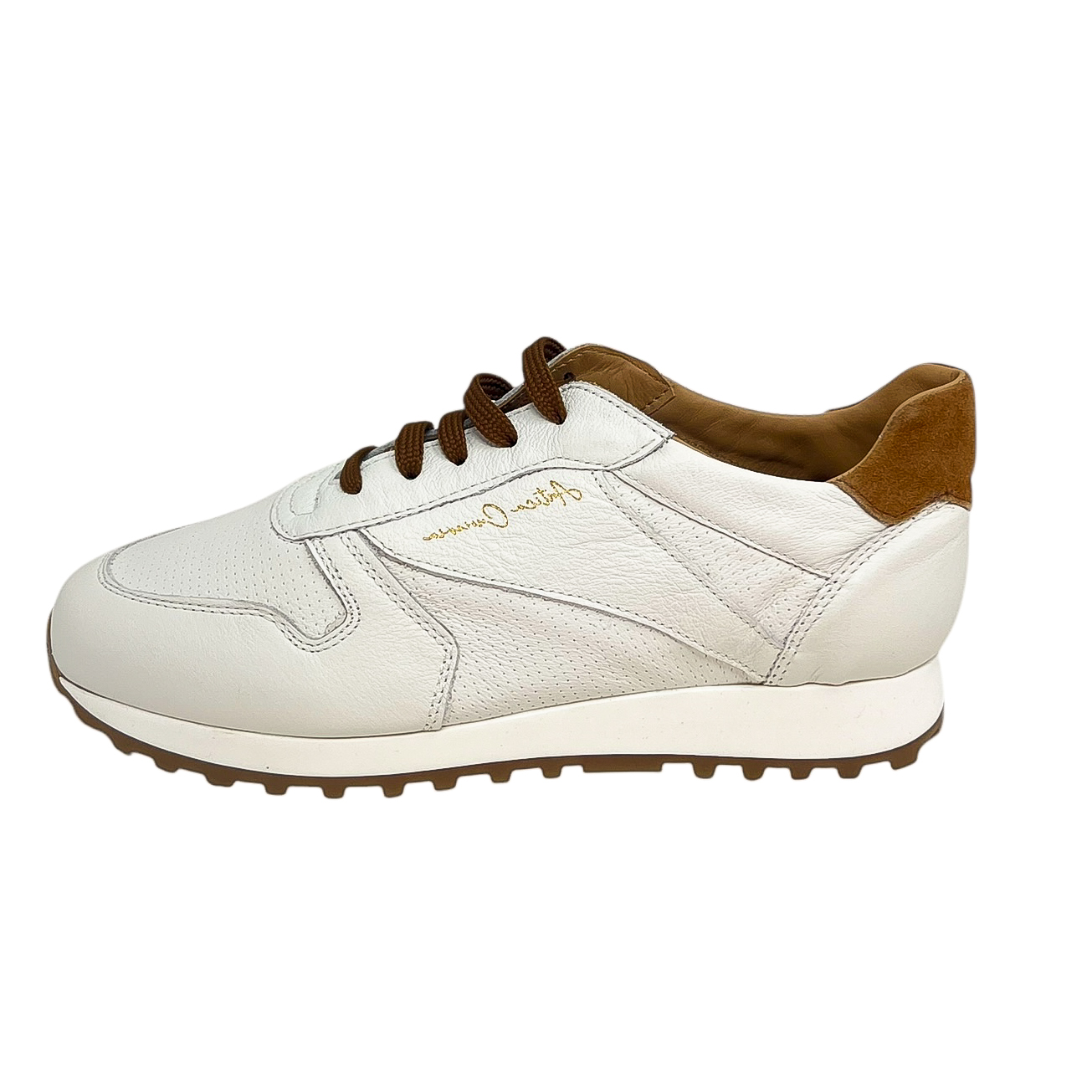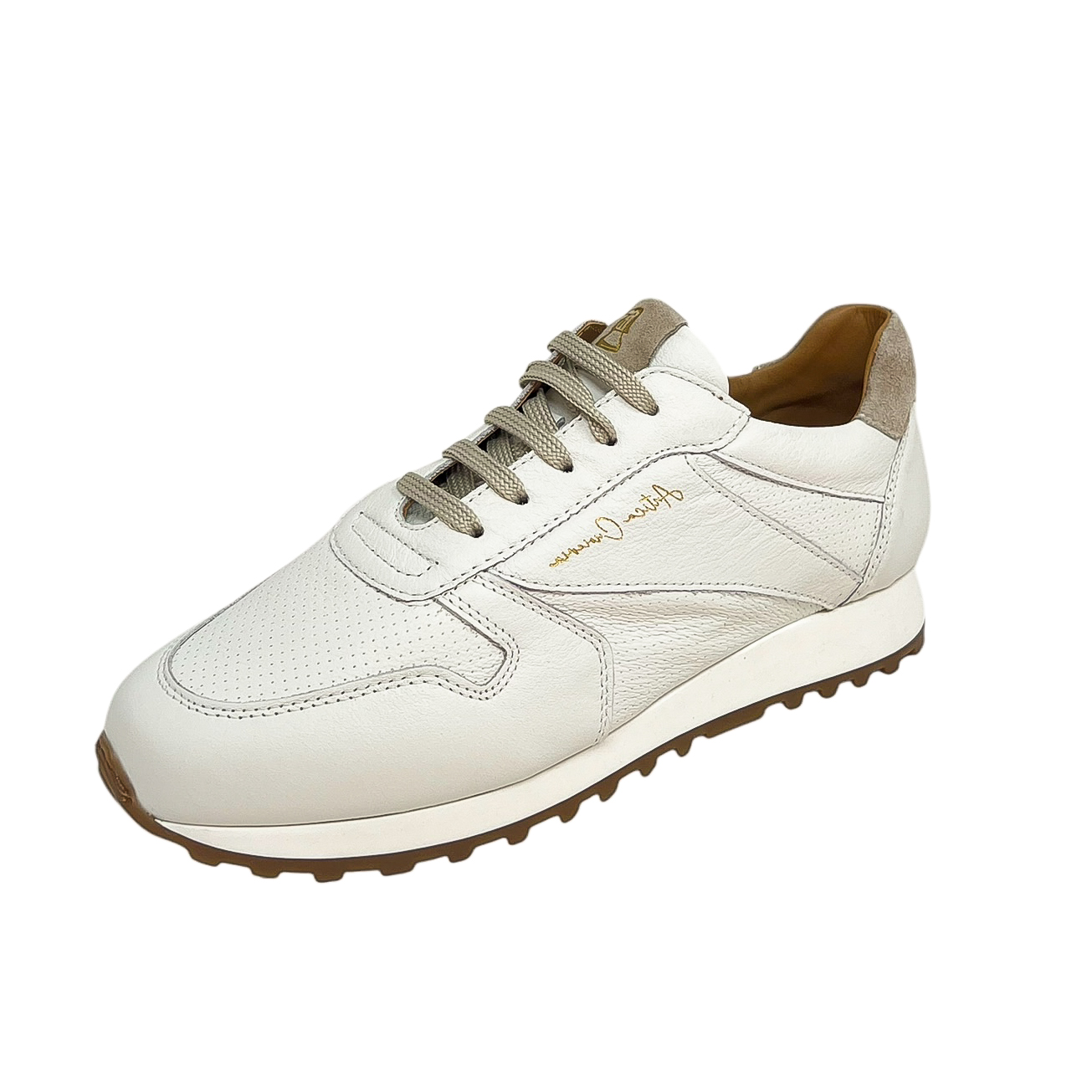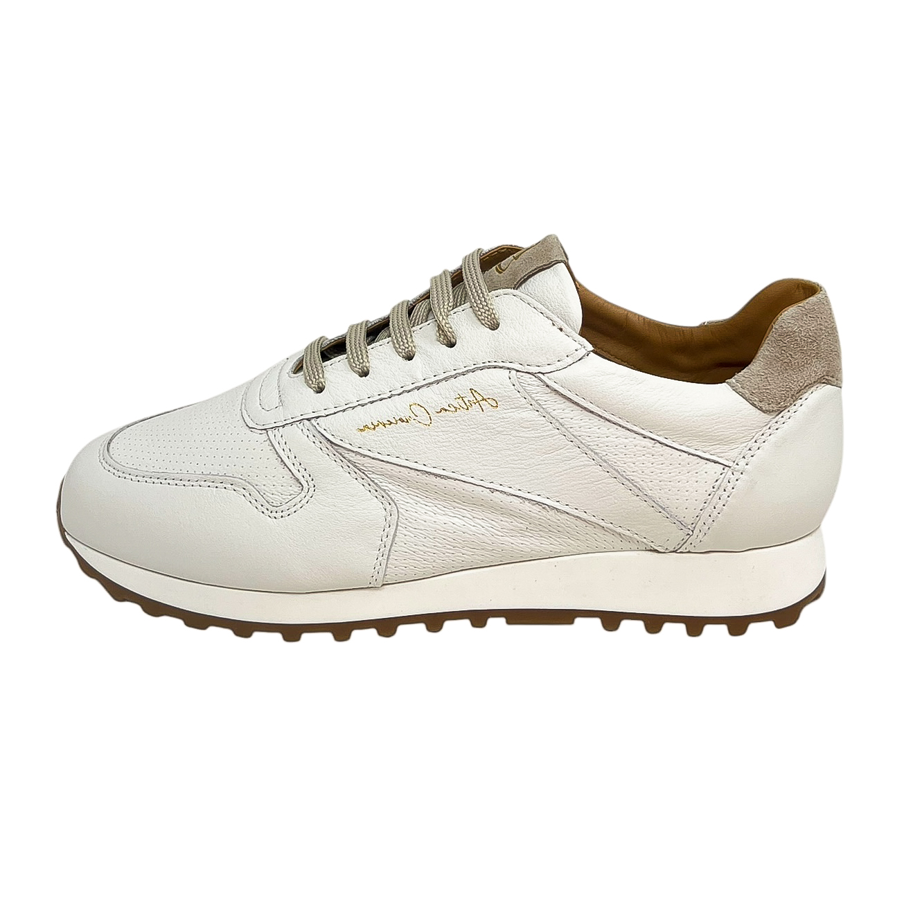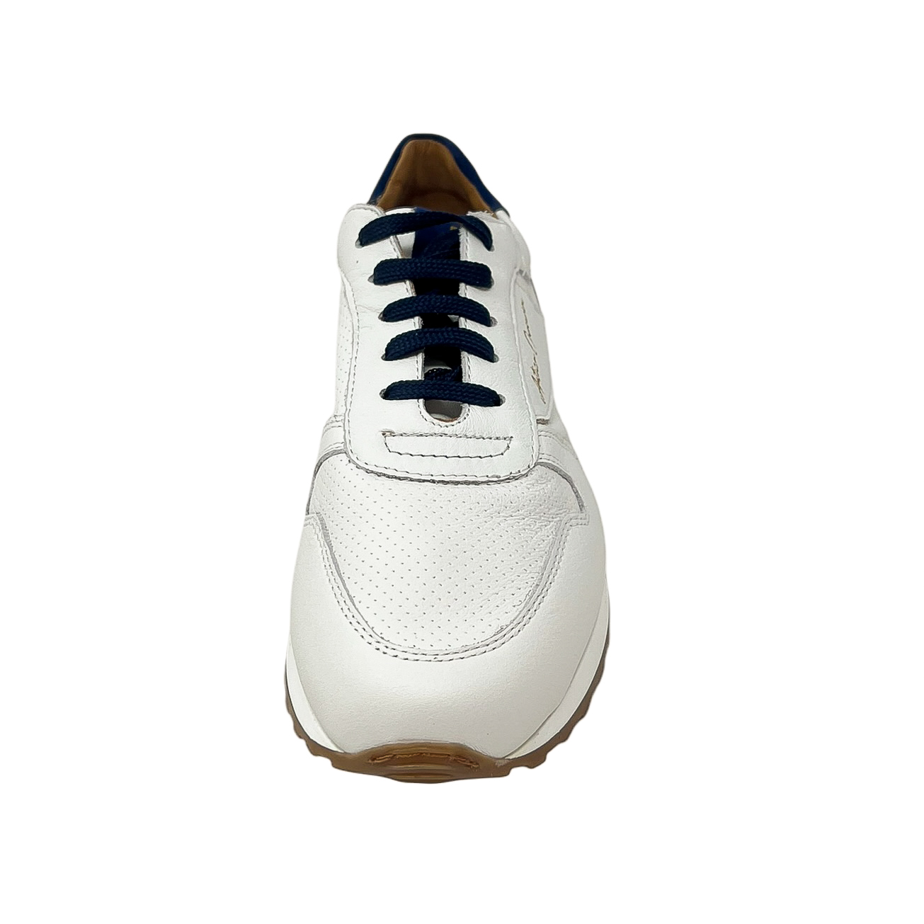 Sneaker running in pelle morbidissima bianco/beige, bianco/blu, bianco/cuoio