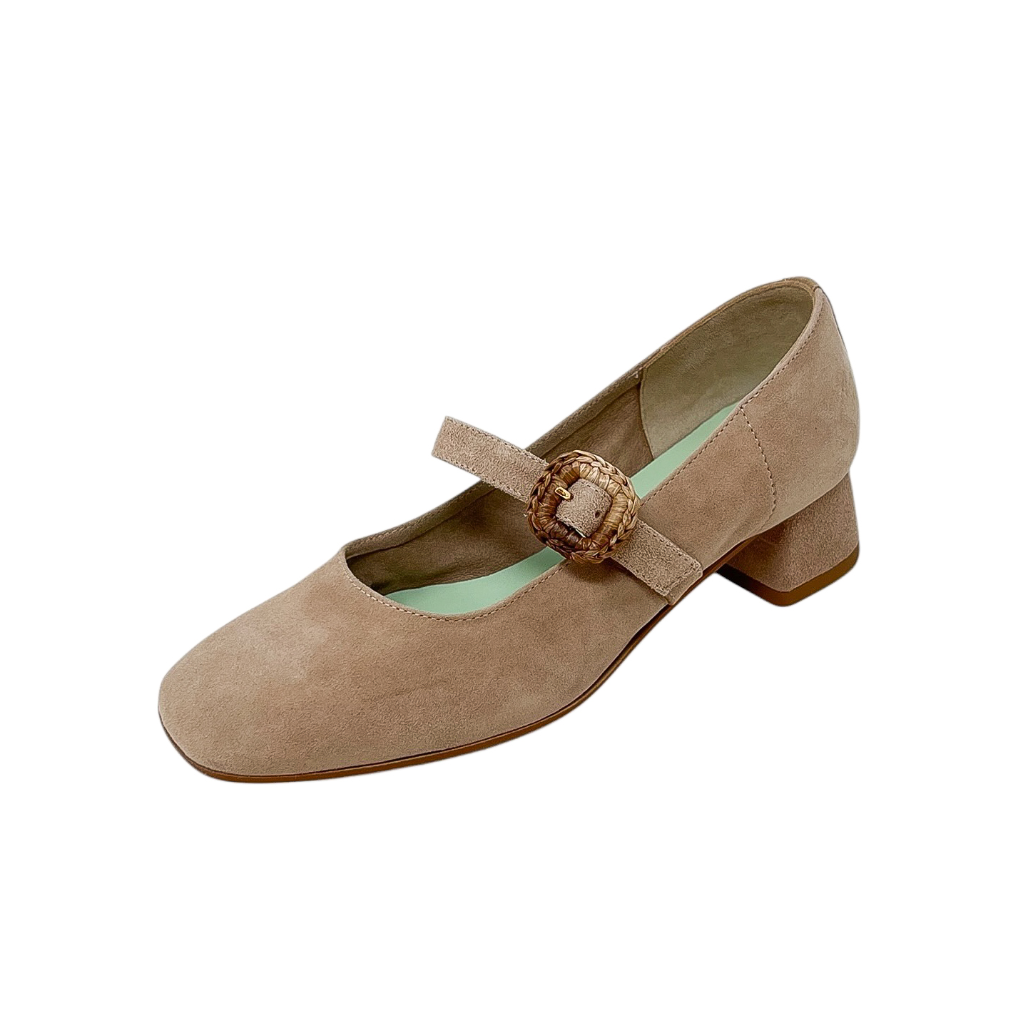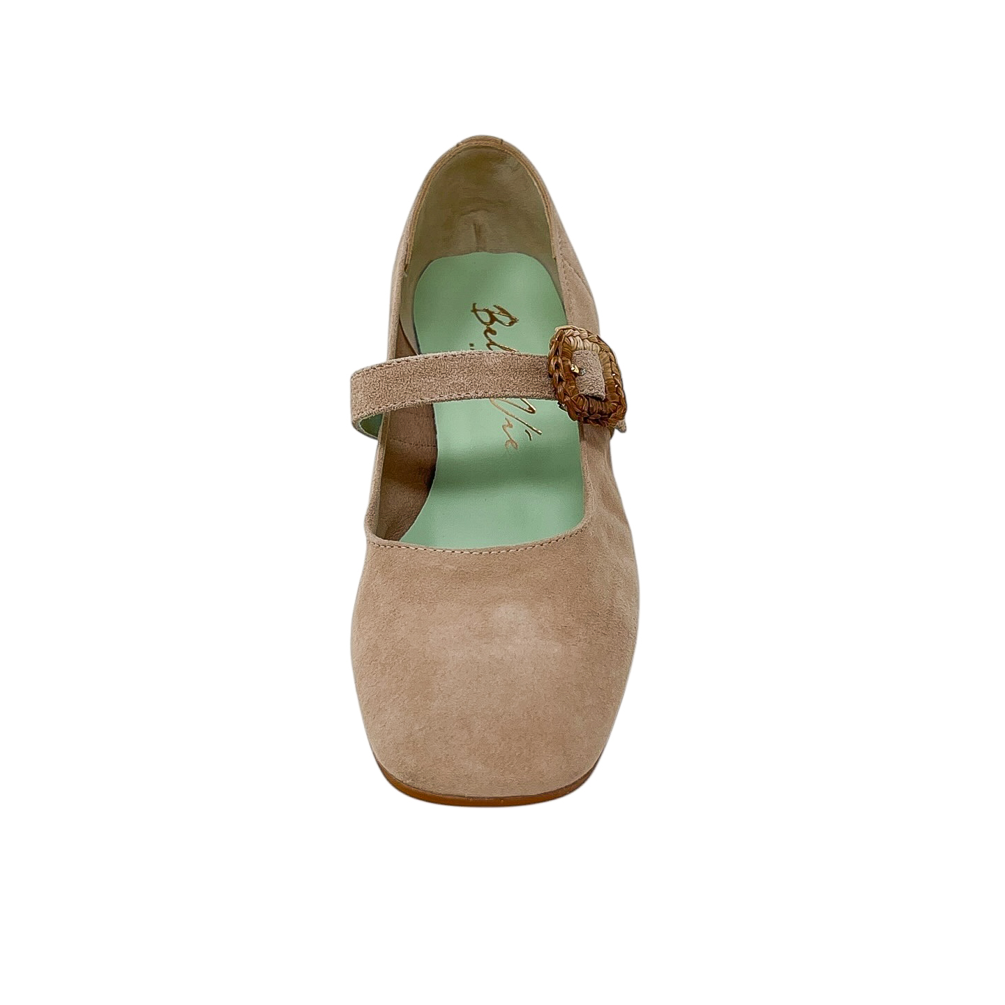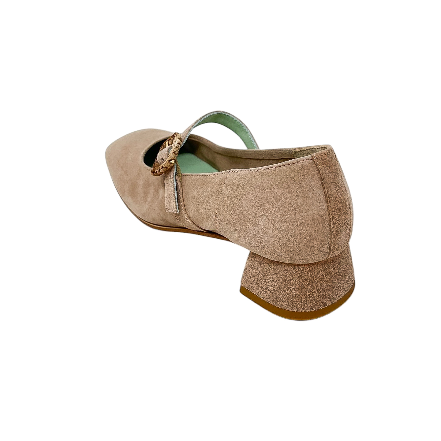 Bebè in camoscio cipria con cinturino e tacco grosso di 3 centimetri