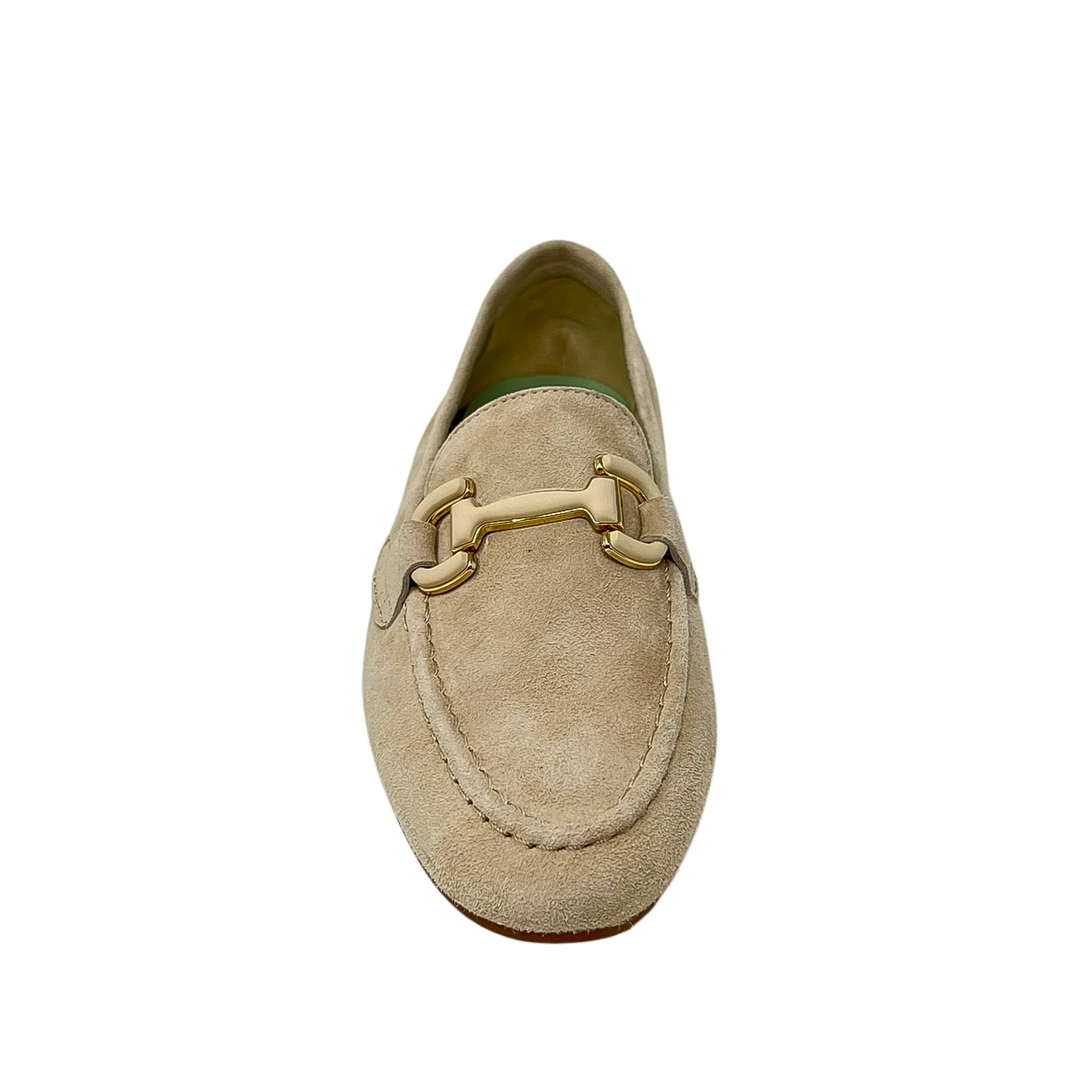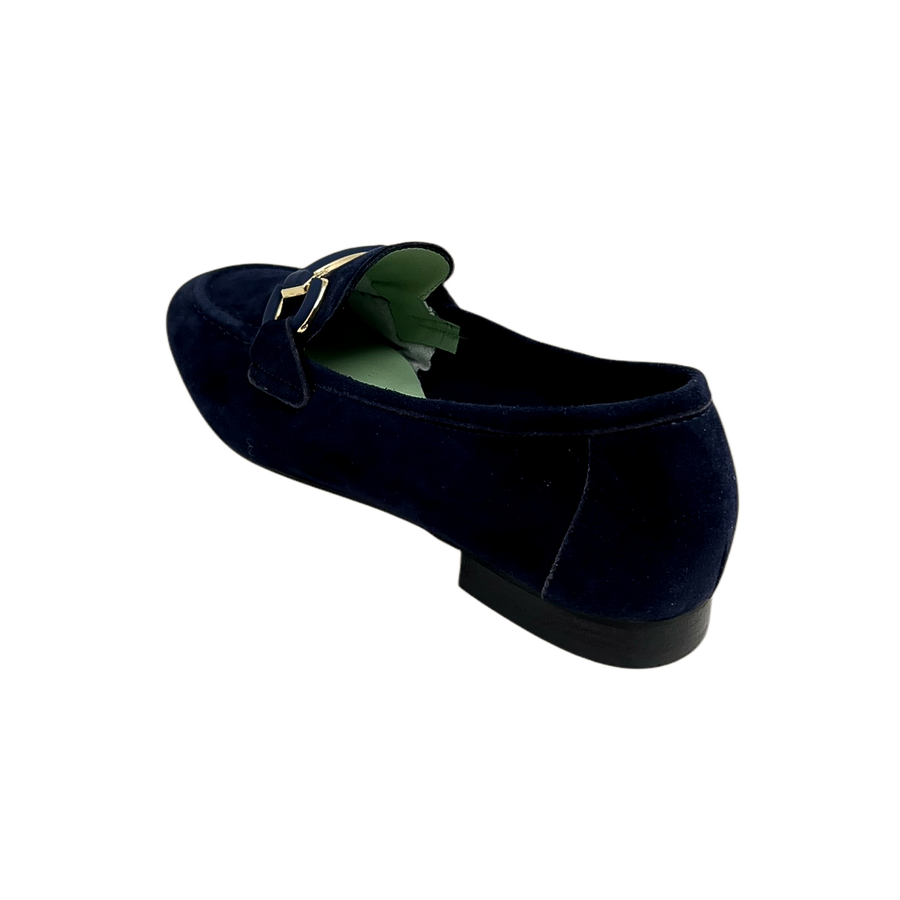Mocassino in pelle nero o bianco o in camoscio blu o beige con morsetto tono su tono