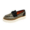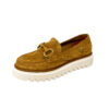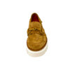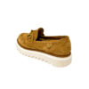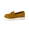 Mocassino in camoscio cuoio con morsetto o in rafia beige e nero con morsetto e suola in gomma