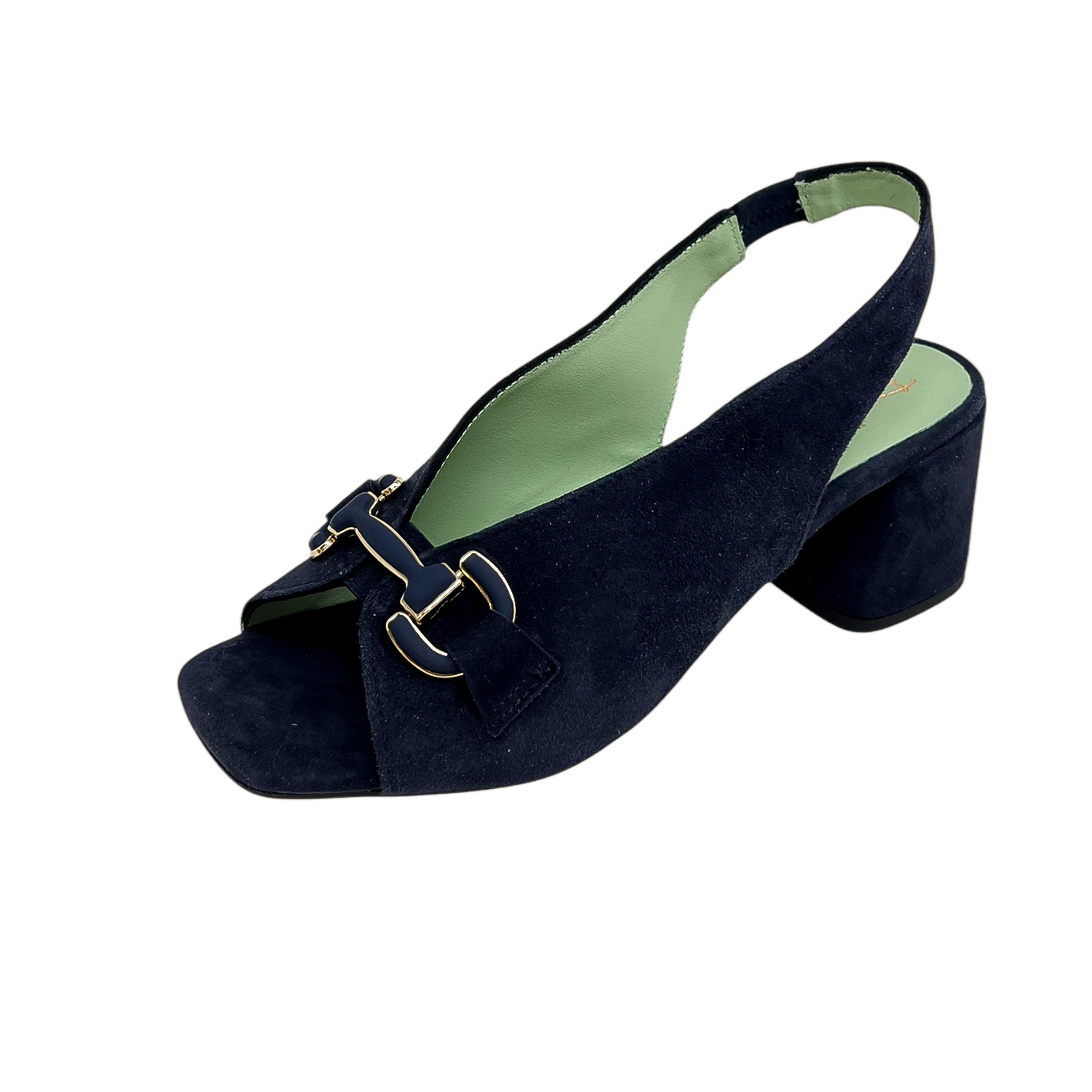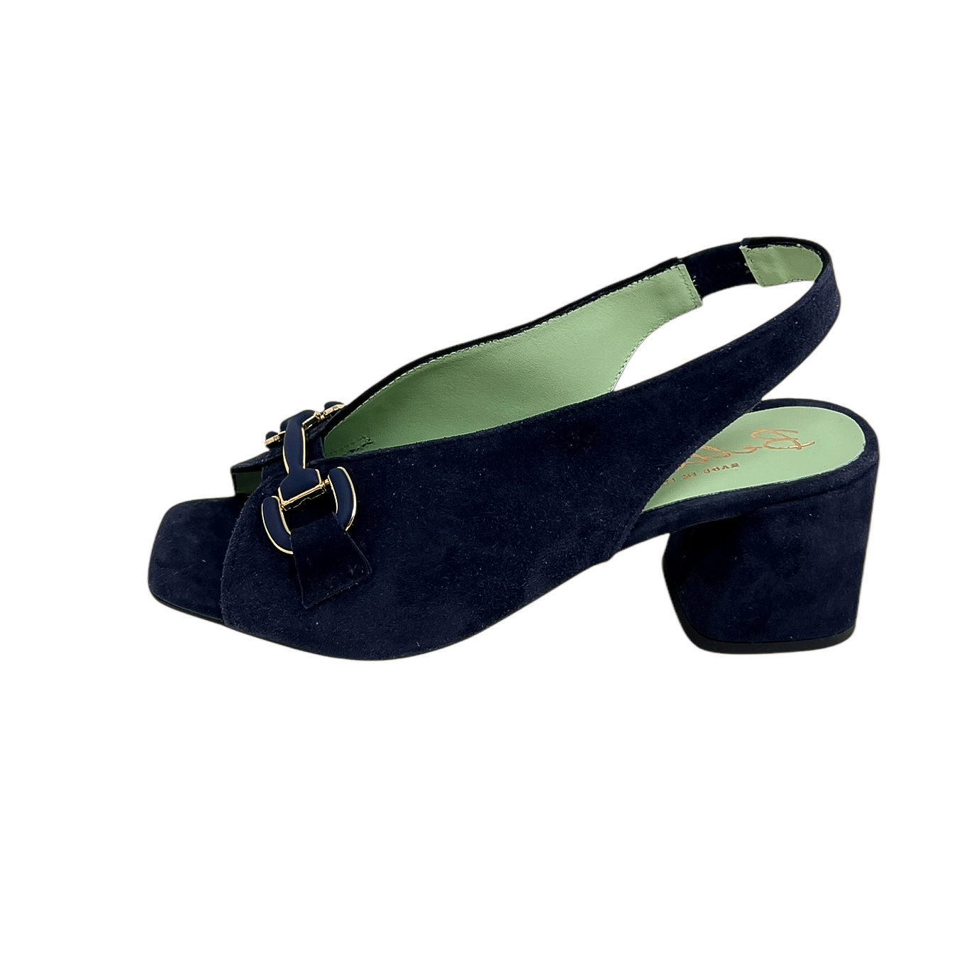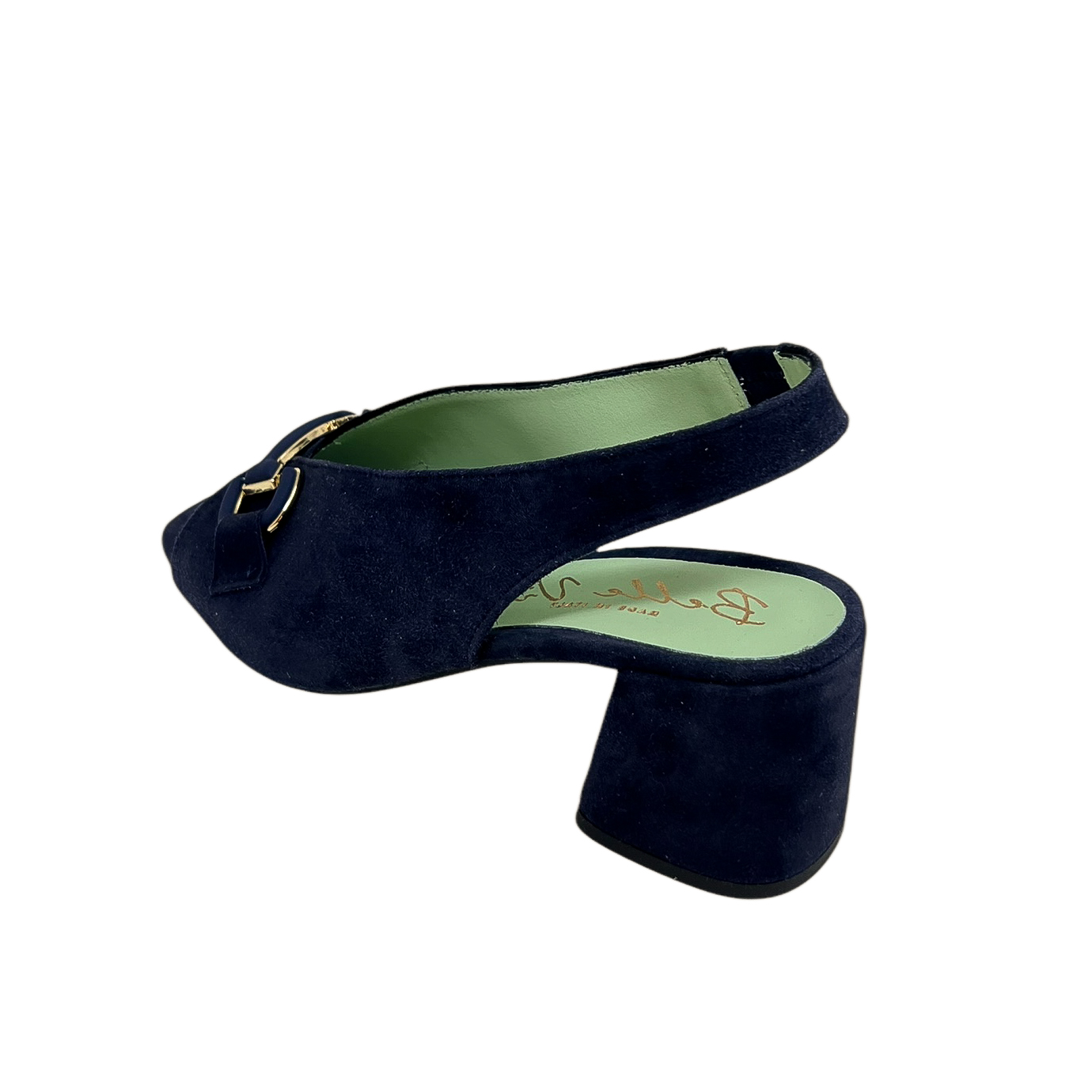 Sandalo in camoscio beige o blu con morsetto e tacco grosso di 5 centimetri