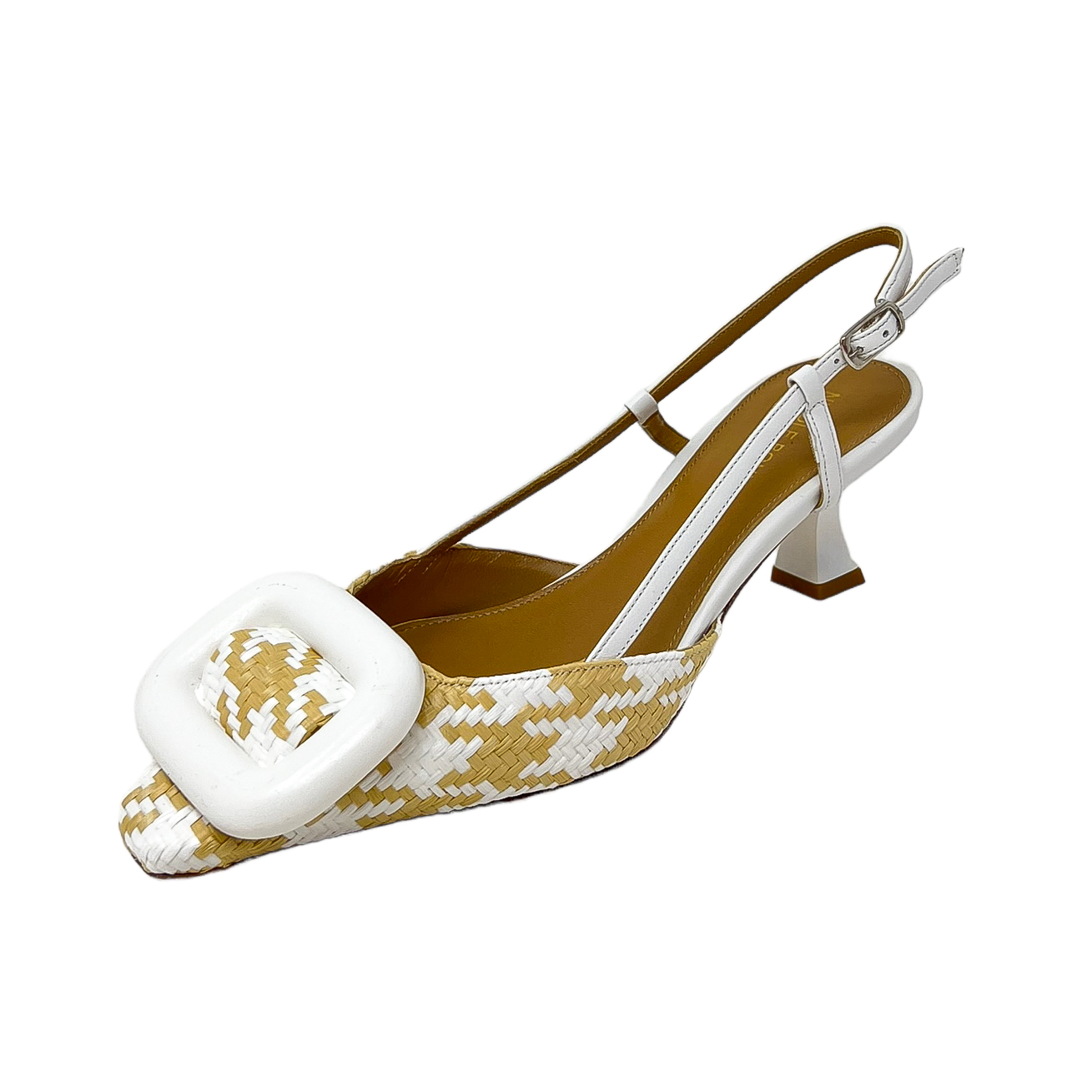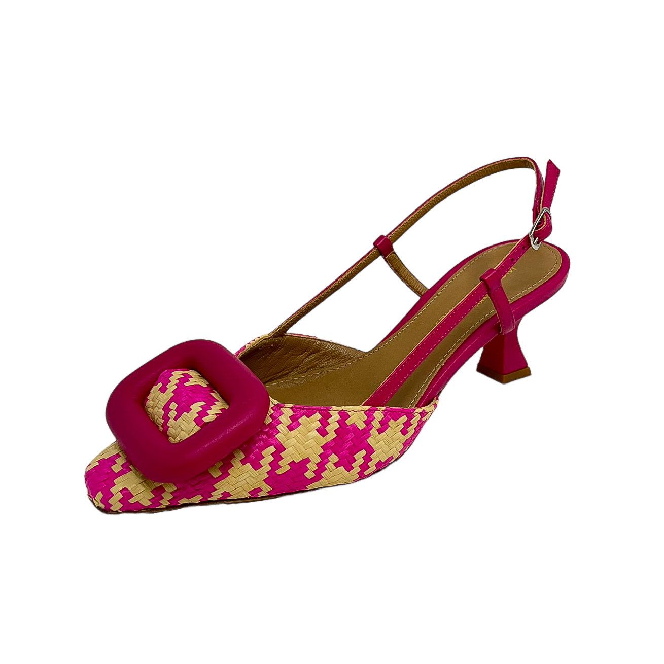 Chanel in rafia pied de poule beige/bianco o beige/rosa con accessorio e tacco di 5 centimetri