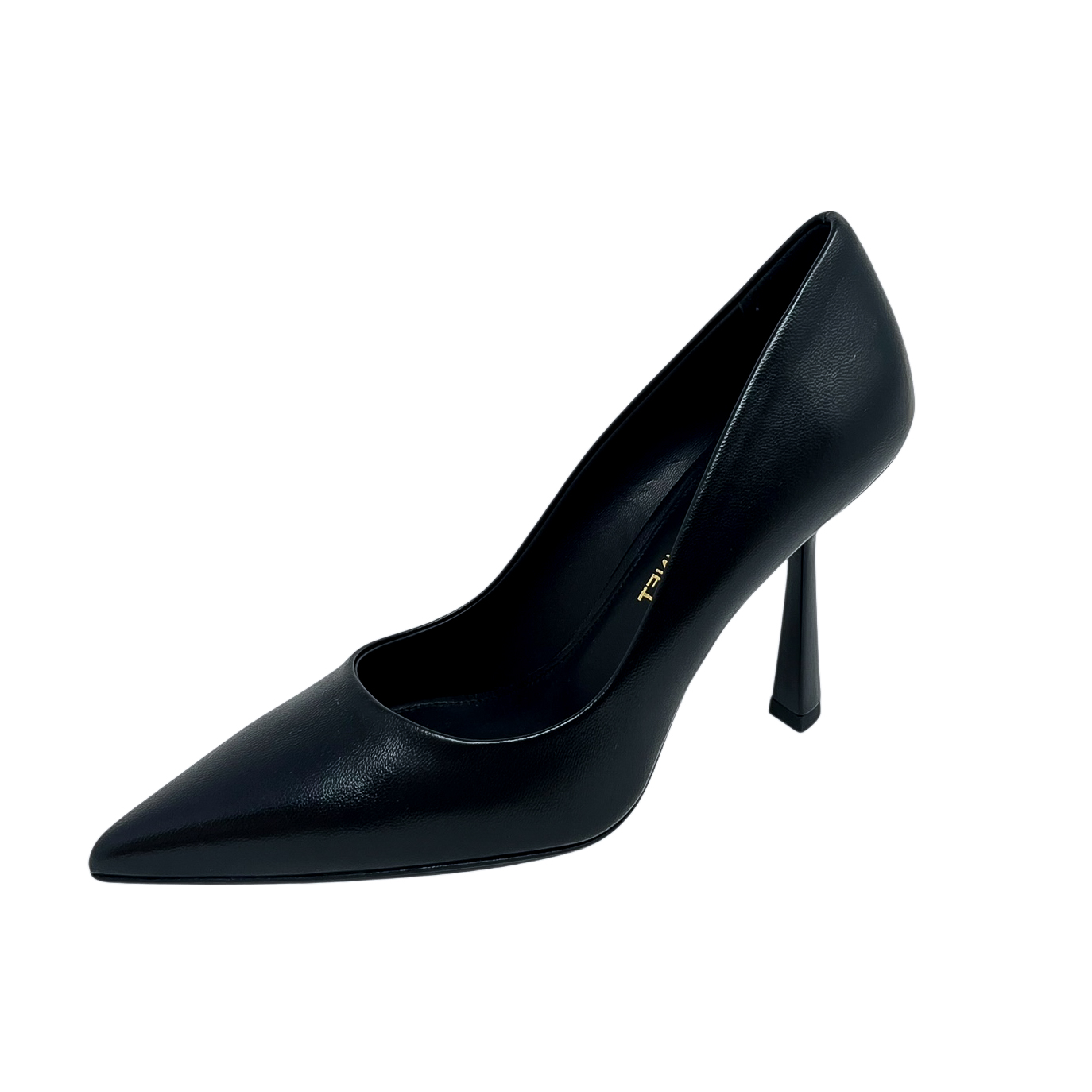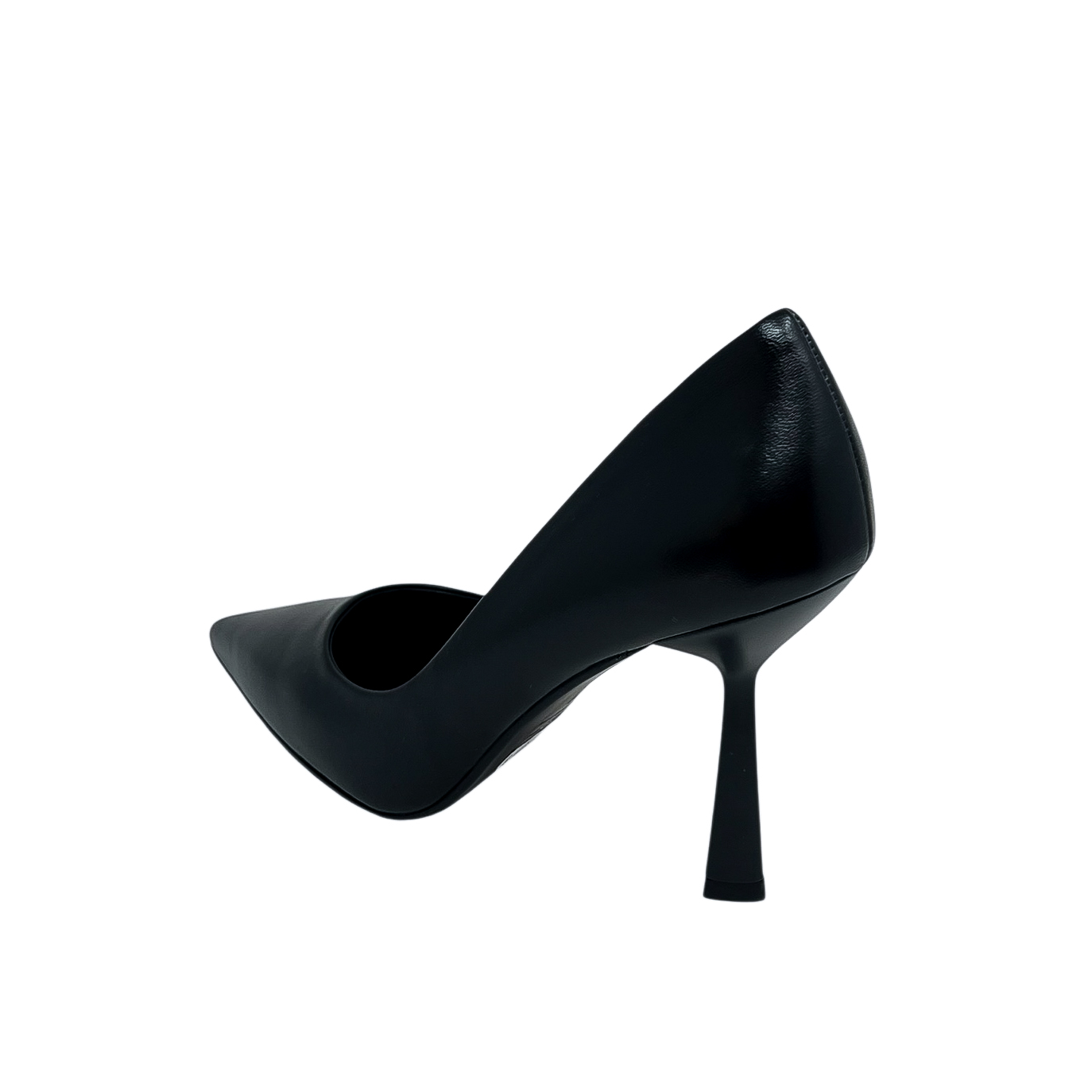 Decollete in pelle nera con tacco a rocchetto di 9 centimetri