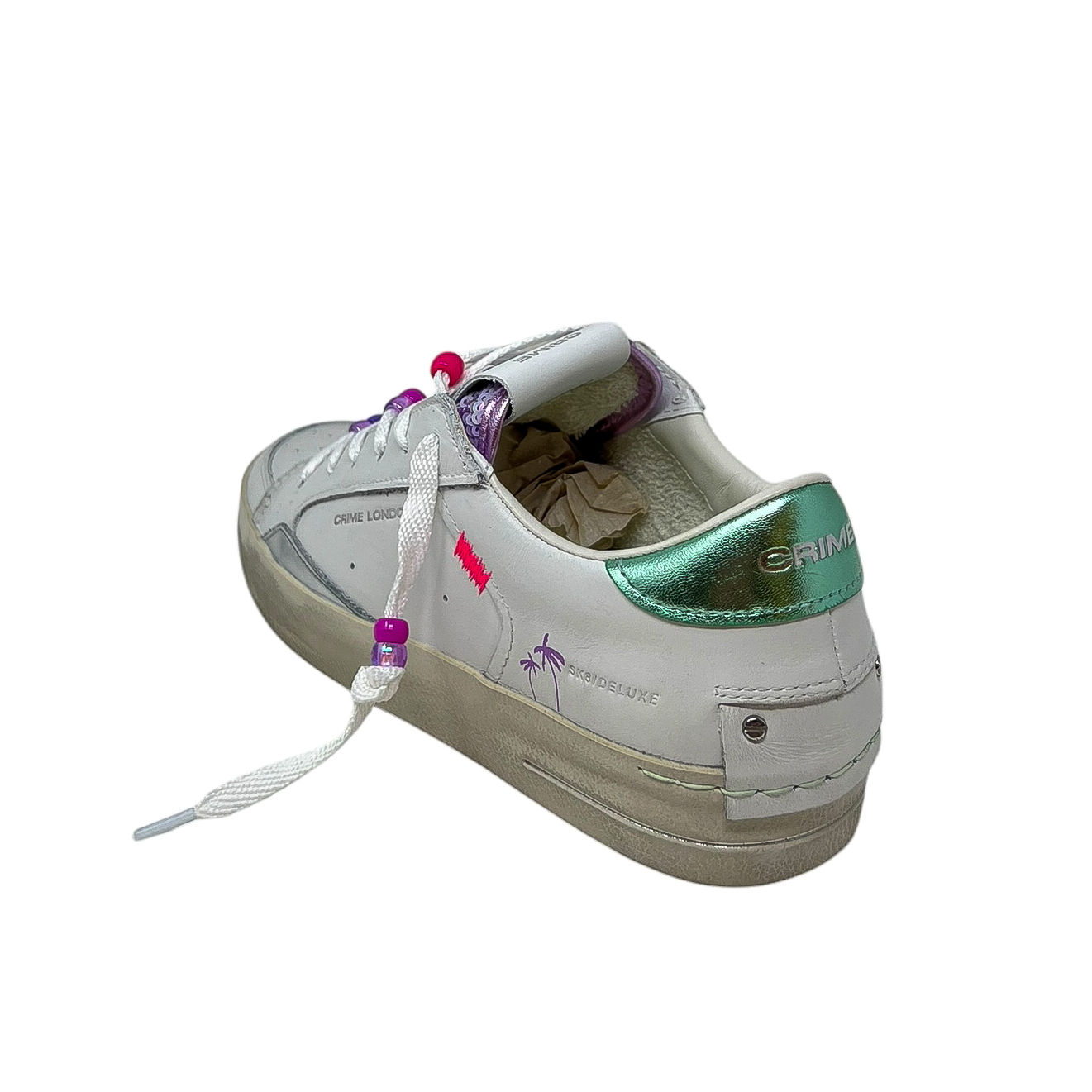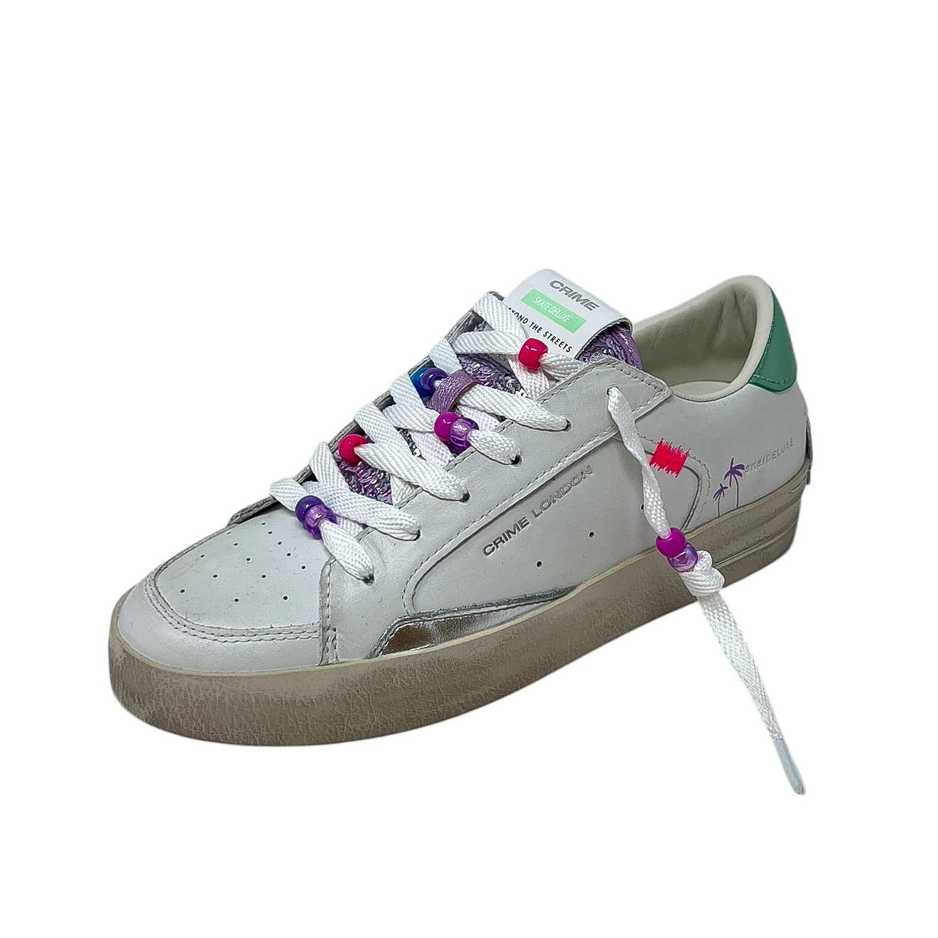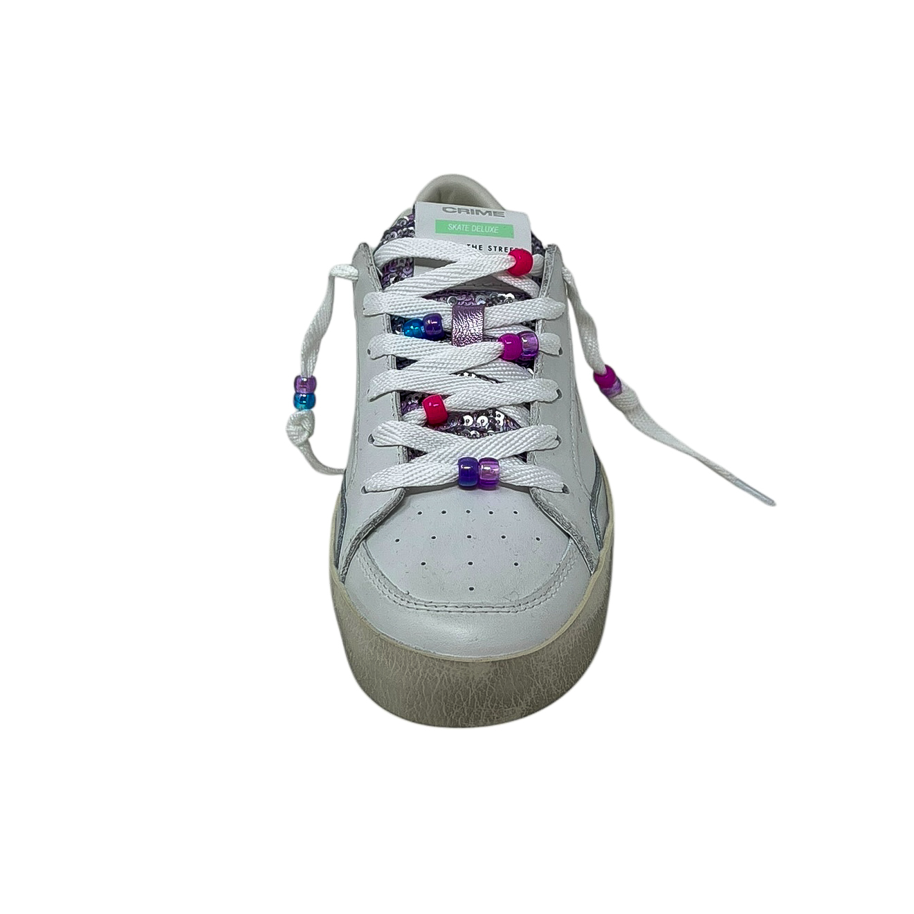 Sneaker in pelle bianca e lilla con perline rimovibili sui lacci