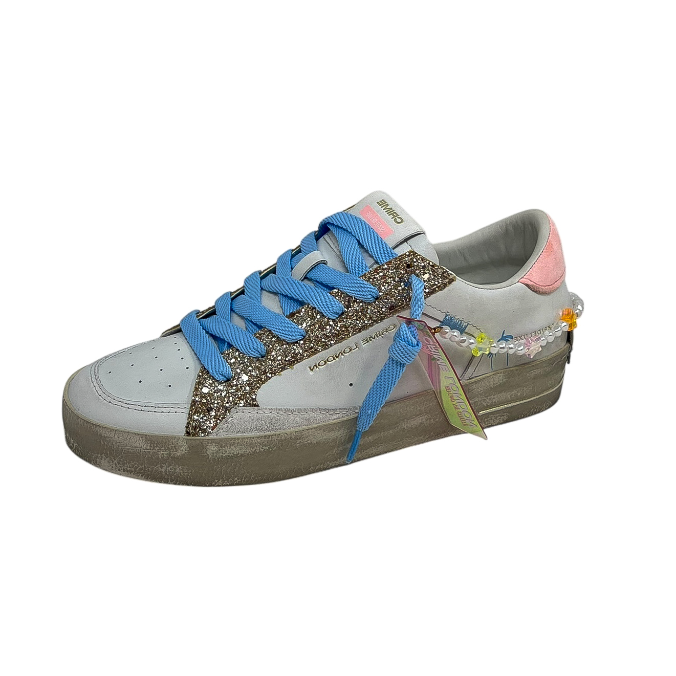 CRIME 20103 SNEAKER CAVIGLIERA BIANCO/GLITTER/AZZURRO