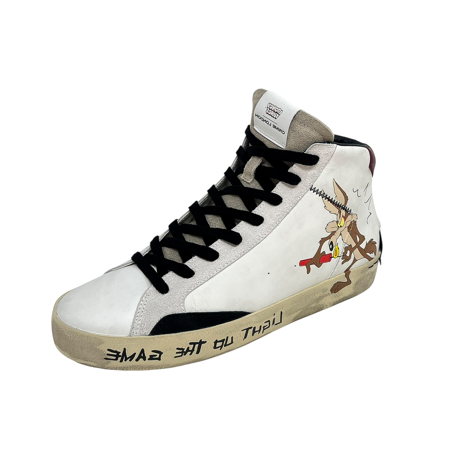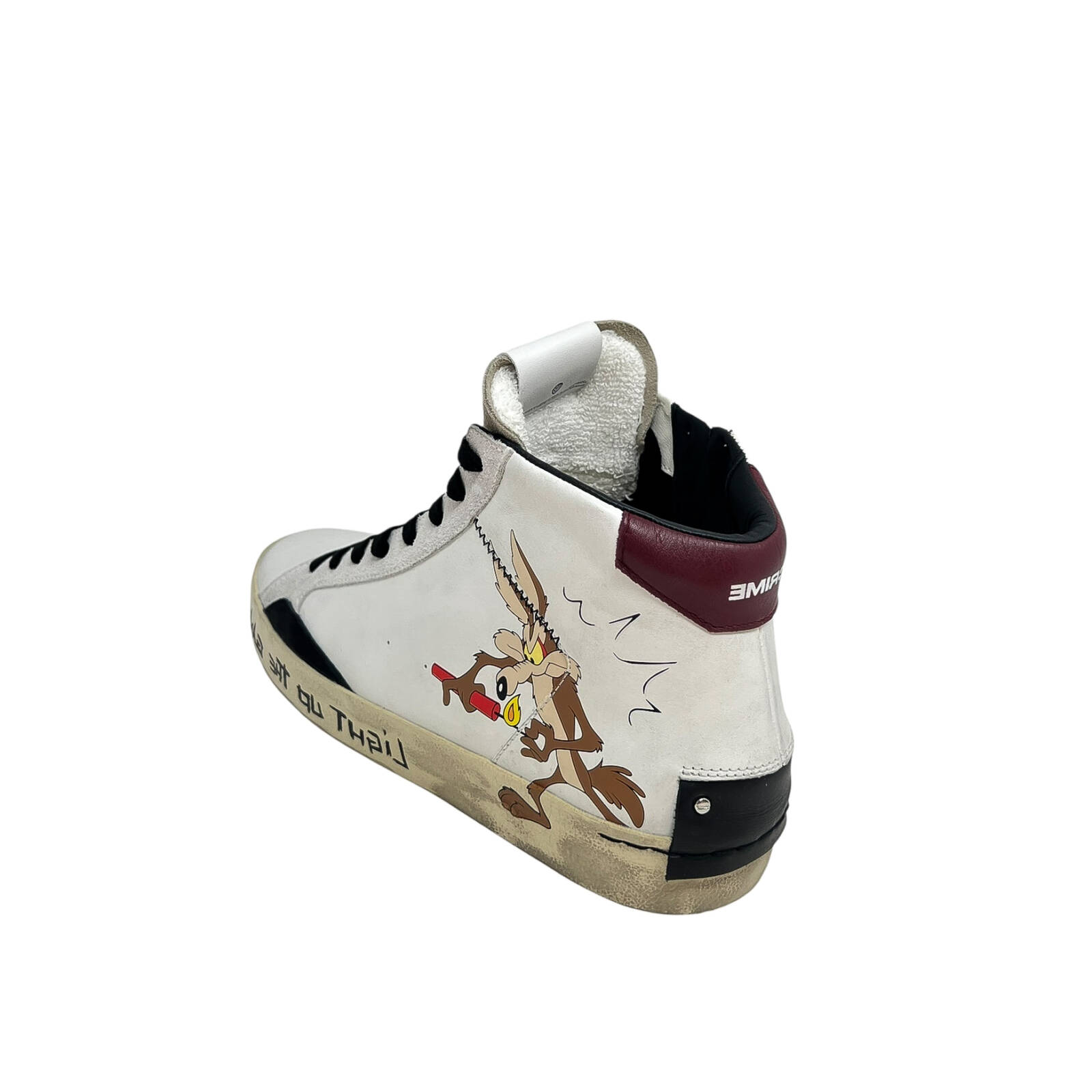 Sneaker alta in pelle bianca con stampa Looney Tunes