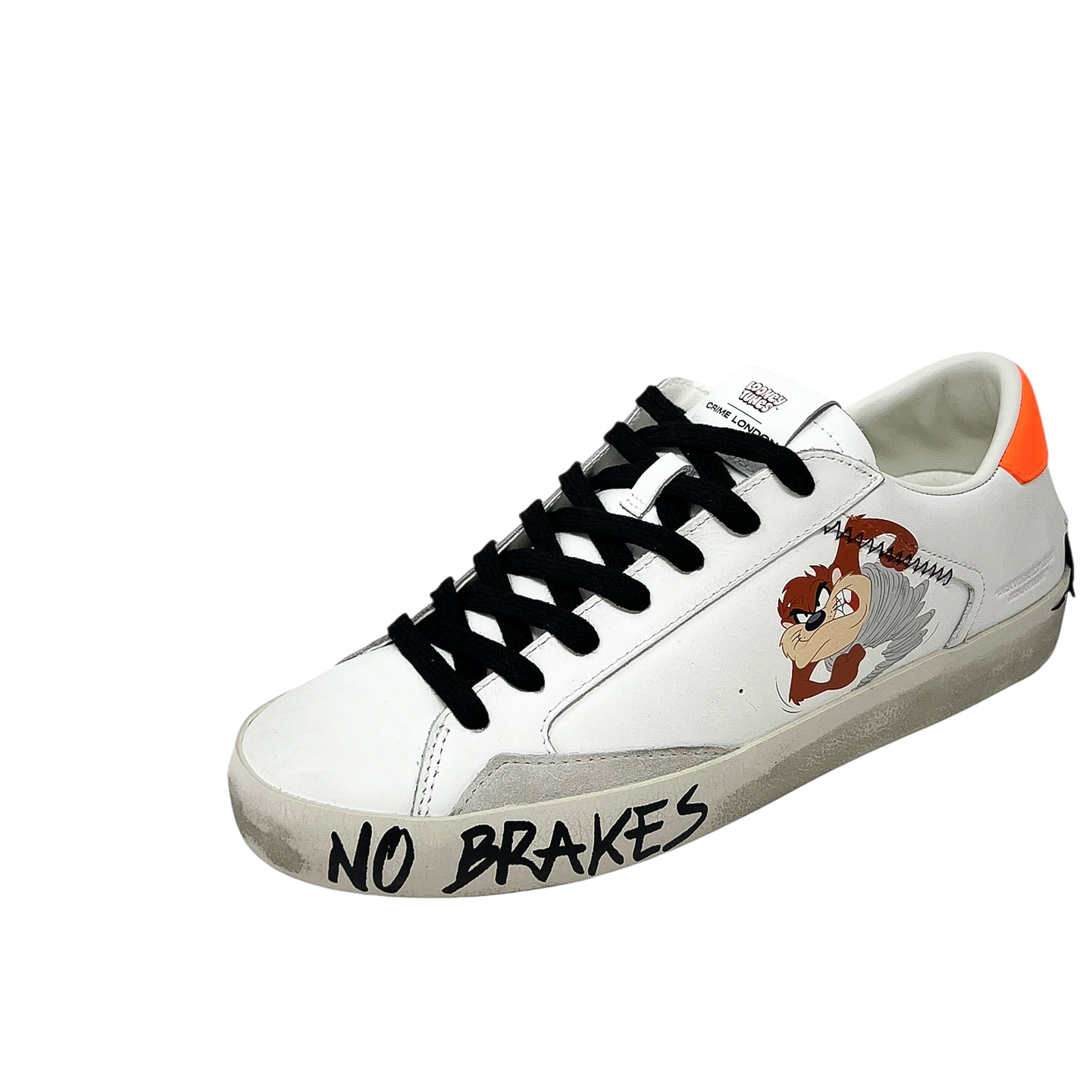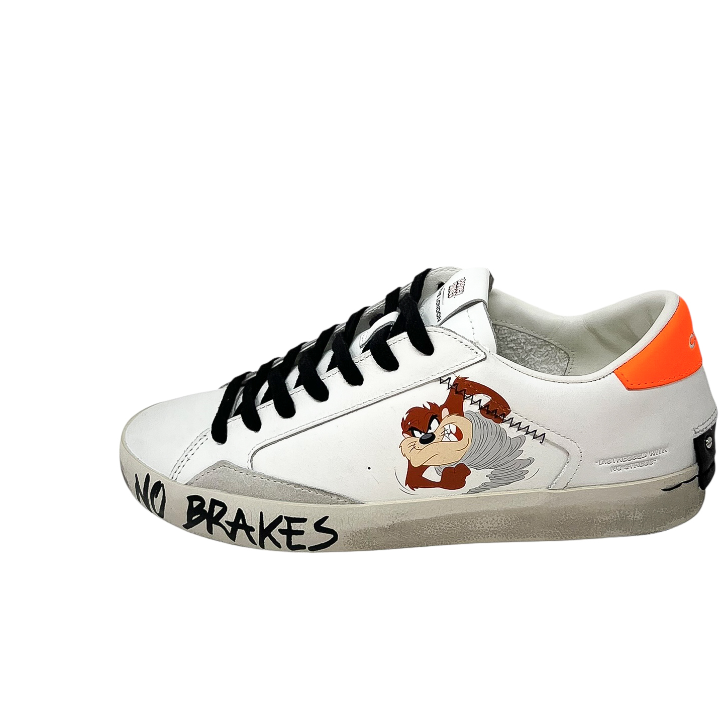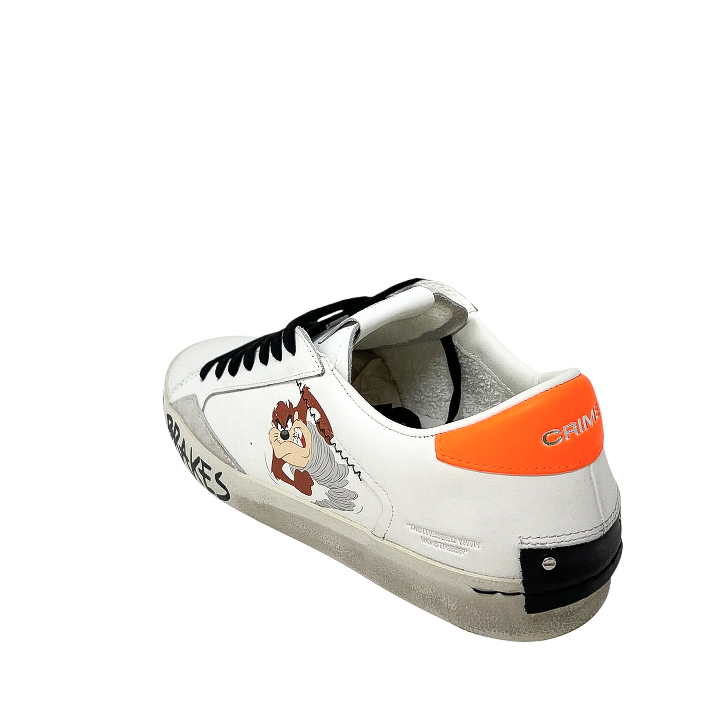 Sneaker in pelle bianca con disegno Tazz laterale e dettagli arancioni