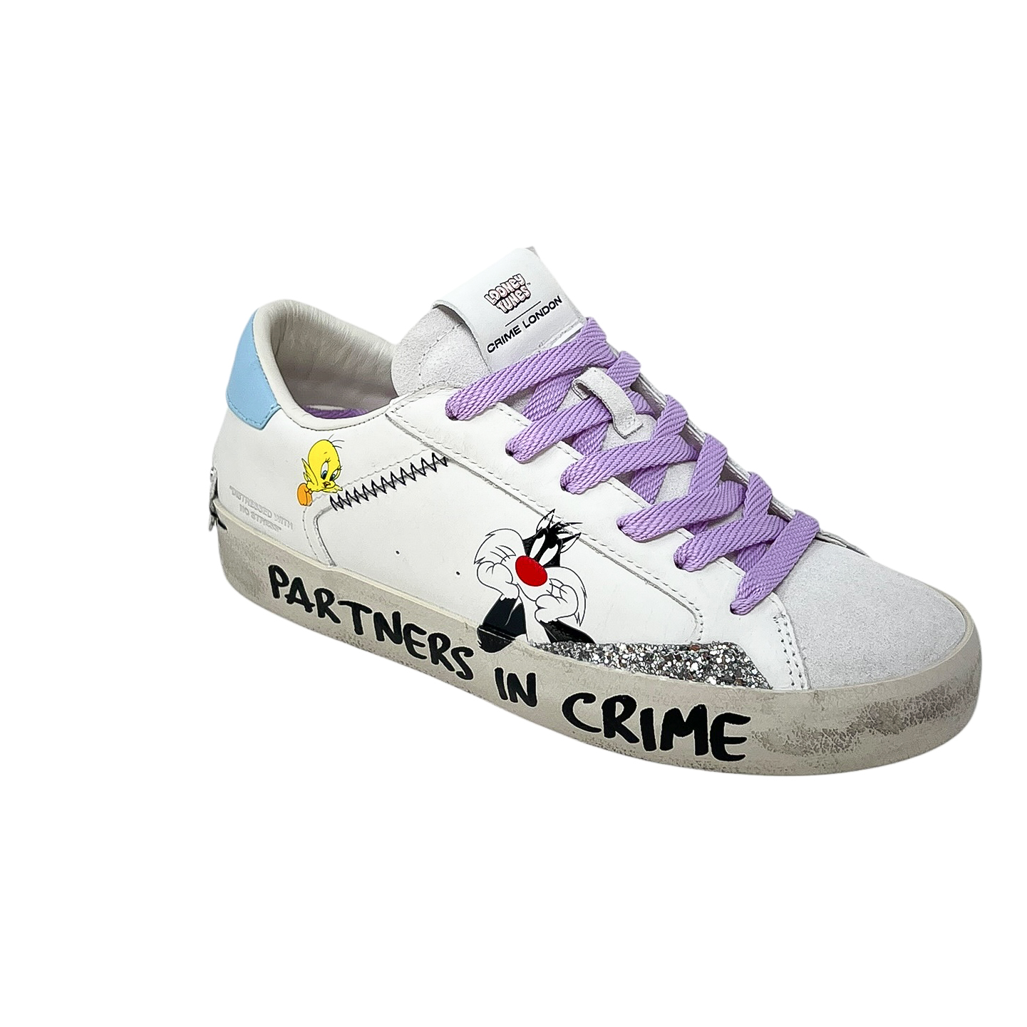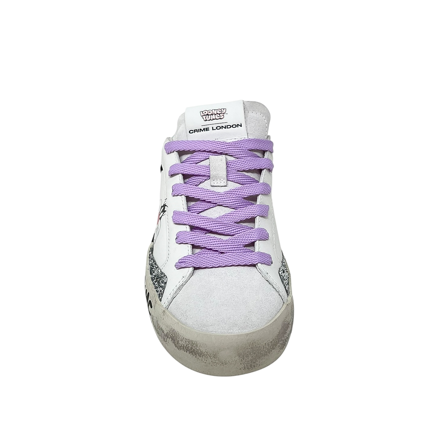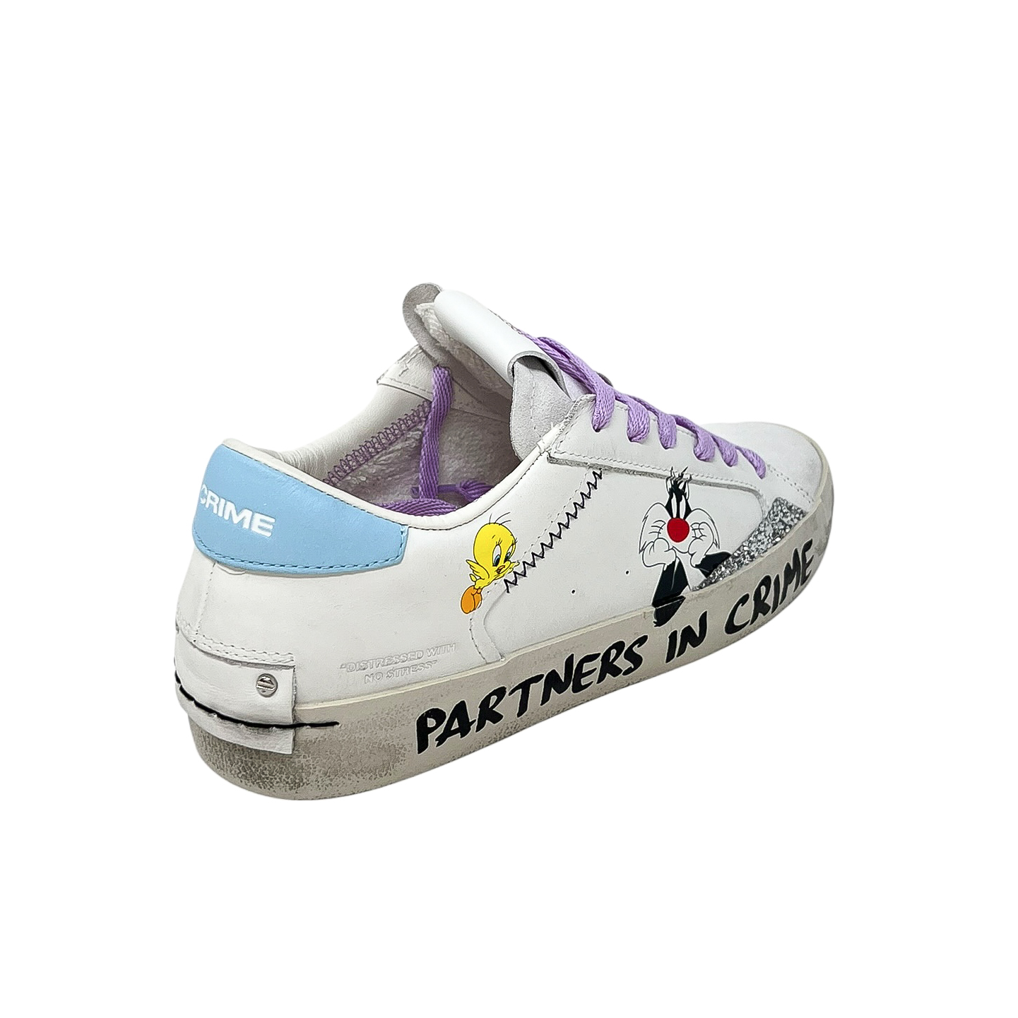 Sneaker in pelle bianca con disegno Silvestro laterale