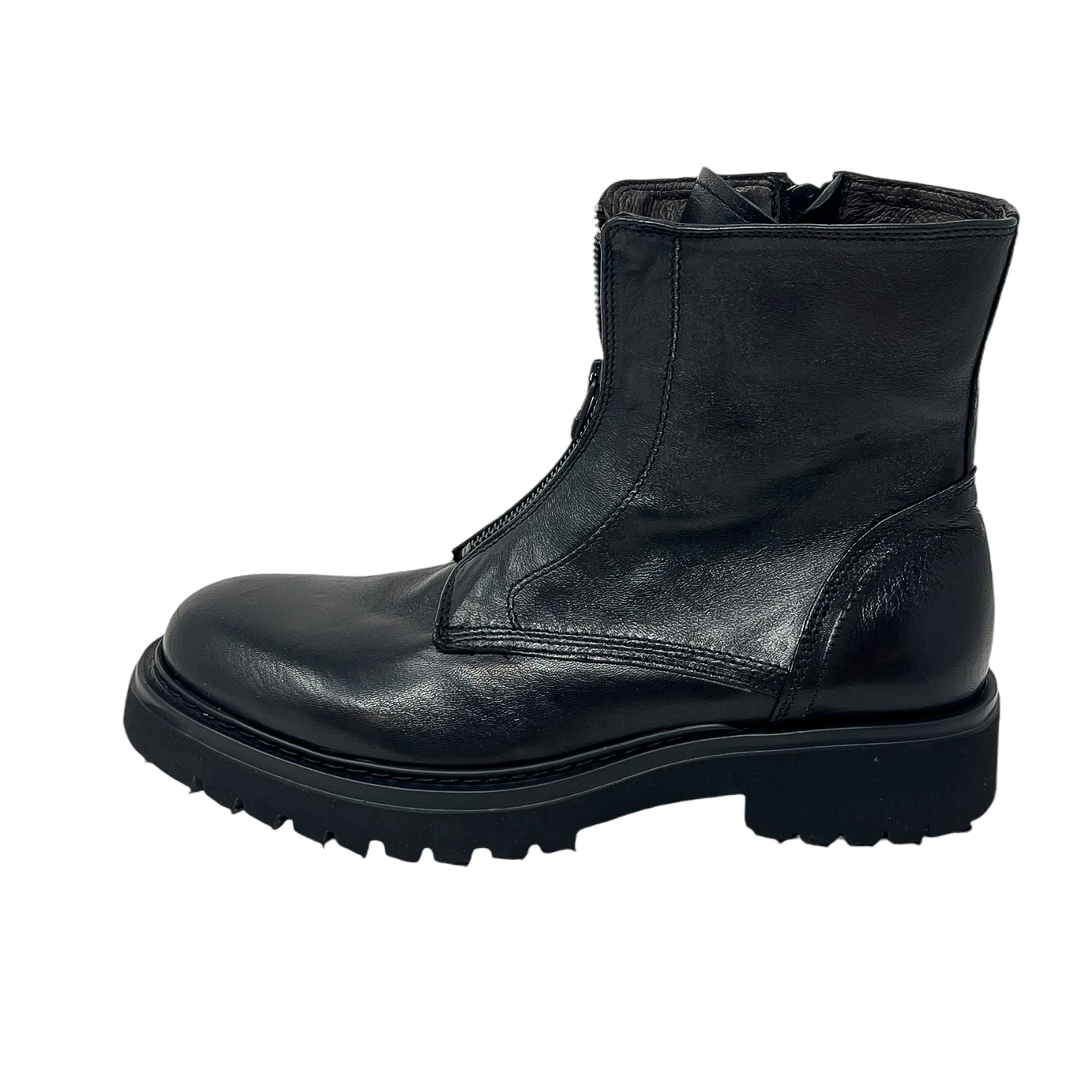 Polacco in pelle grigia con finta stringa frontale e cerniera laterale. Suola di 2 centimetri