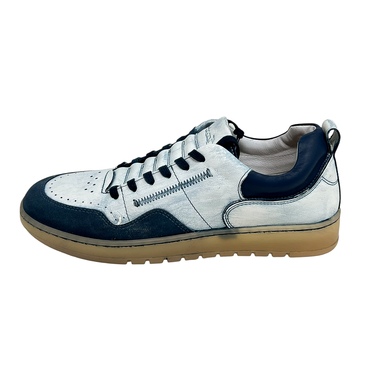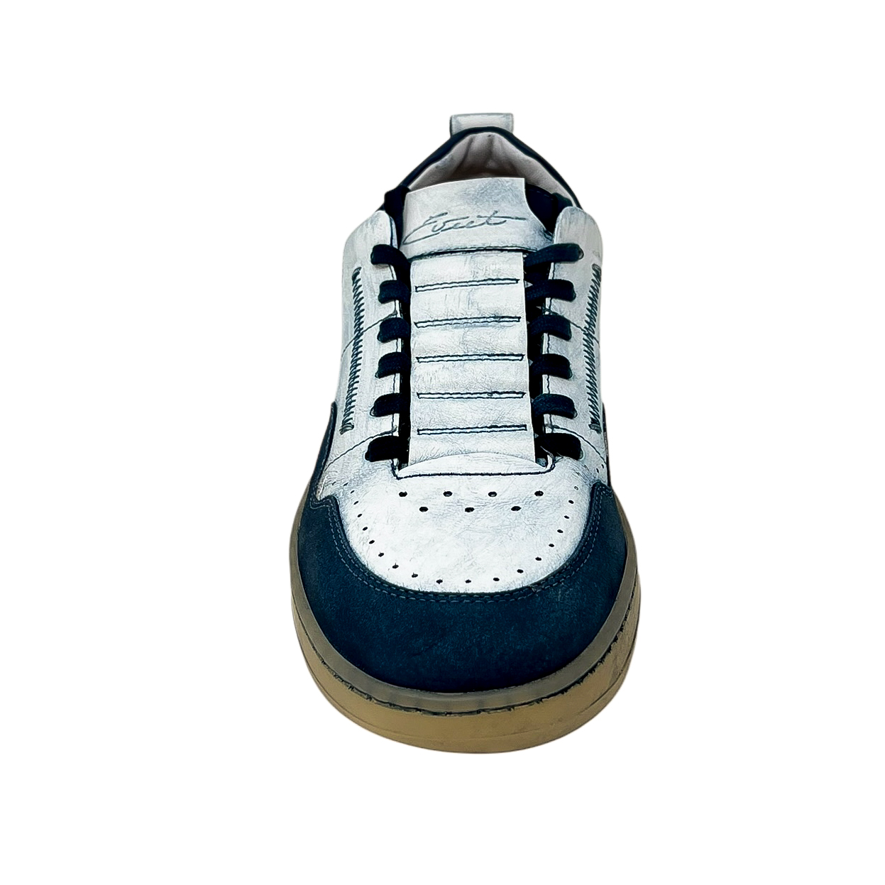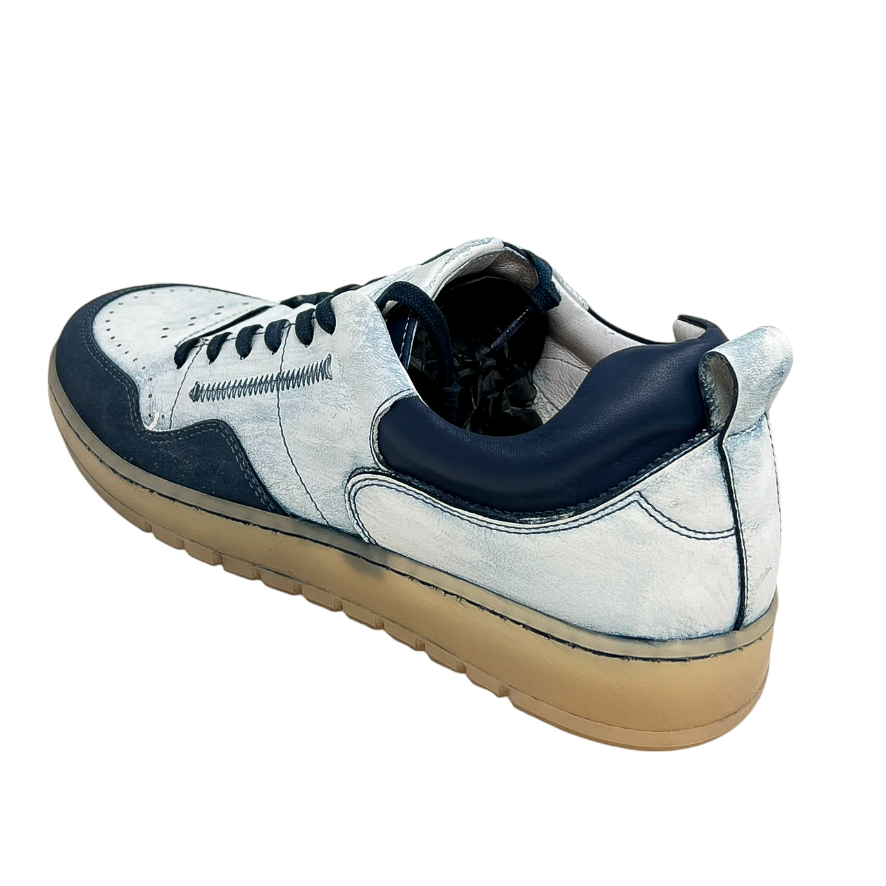 Sneaker in pelle bianca sfumata blu o sfumata cuoio con finta allacciatura
