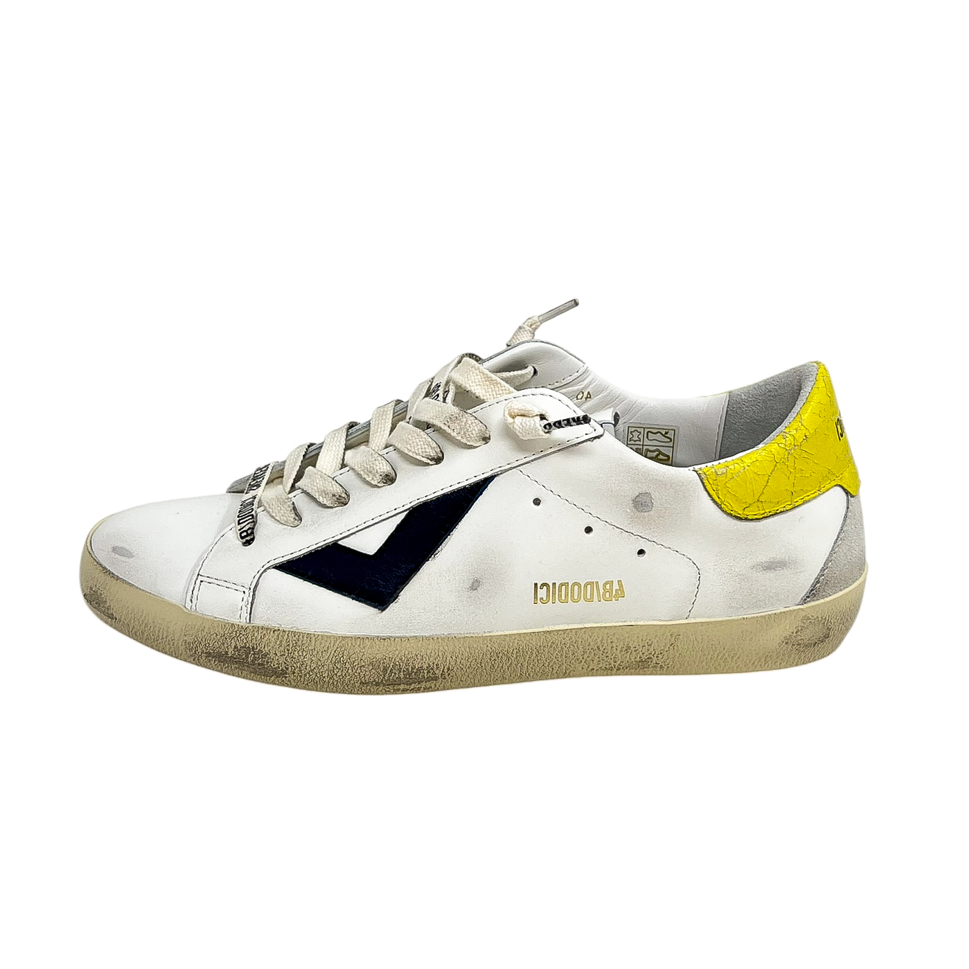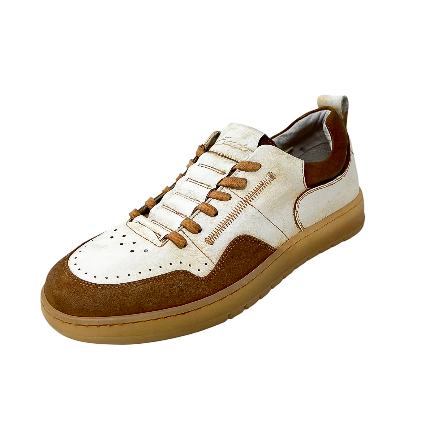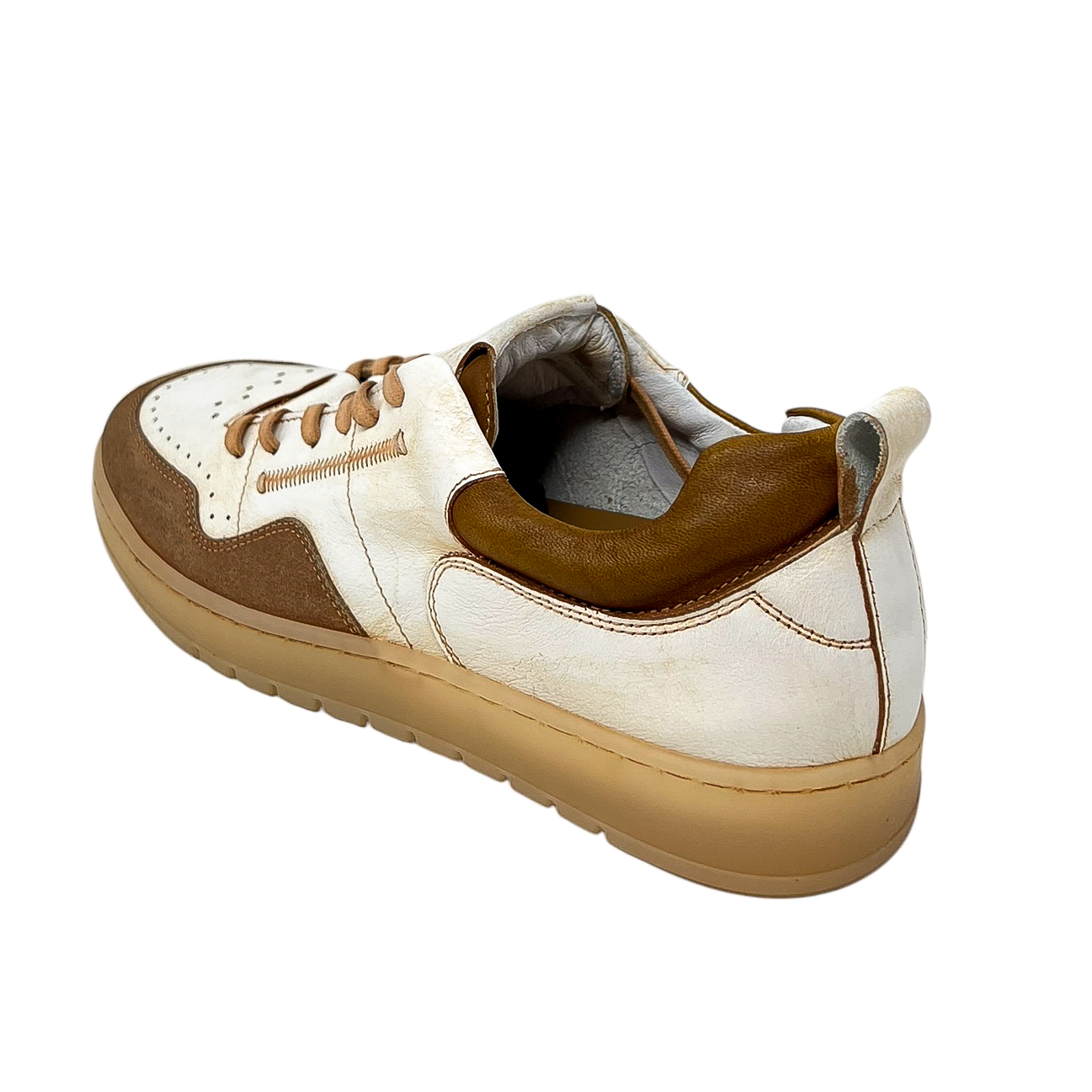 Sneaker in pelle bianca sfumata blu o sfumata cuoio con finta allacciatura
