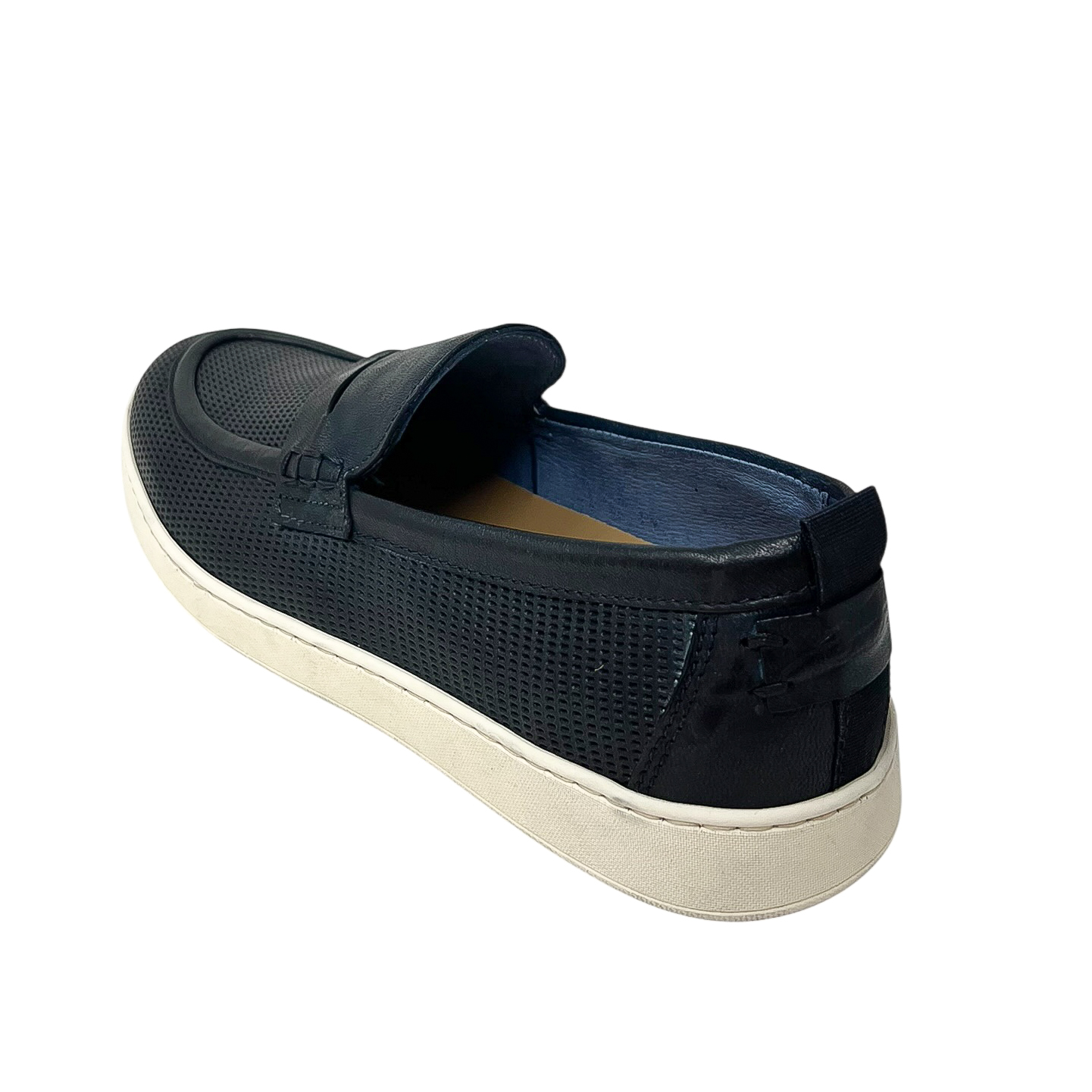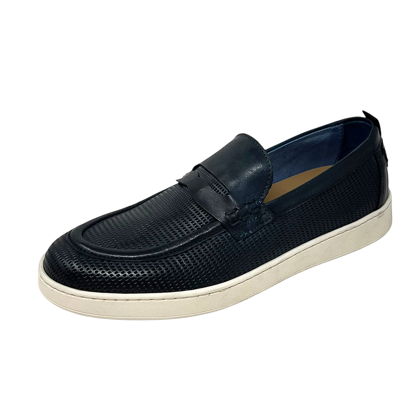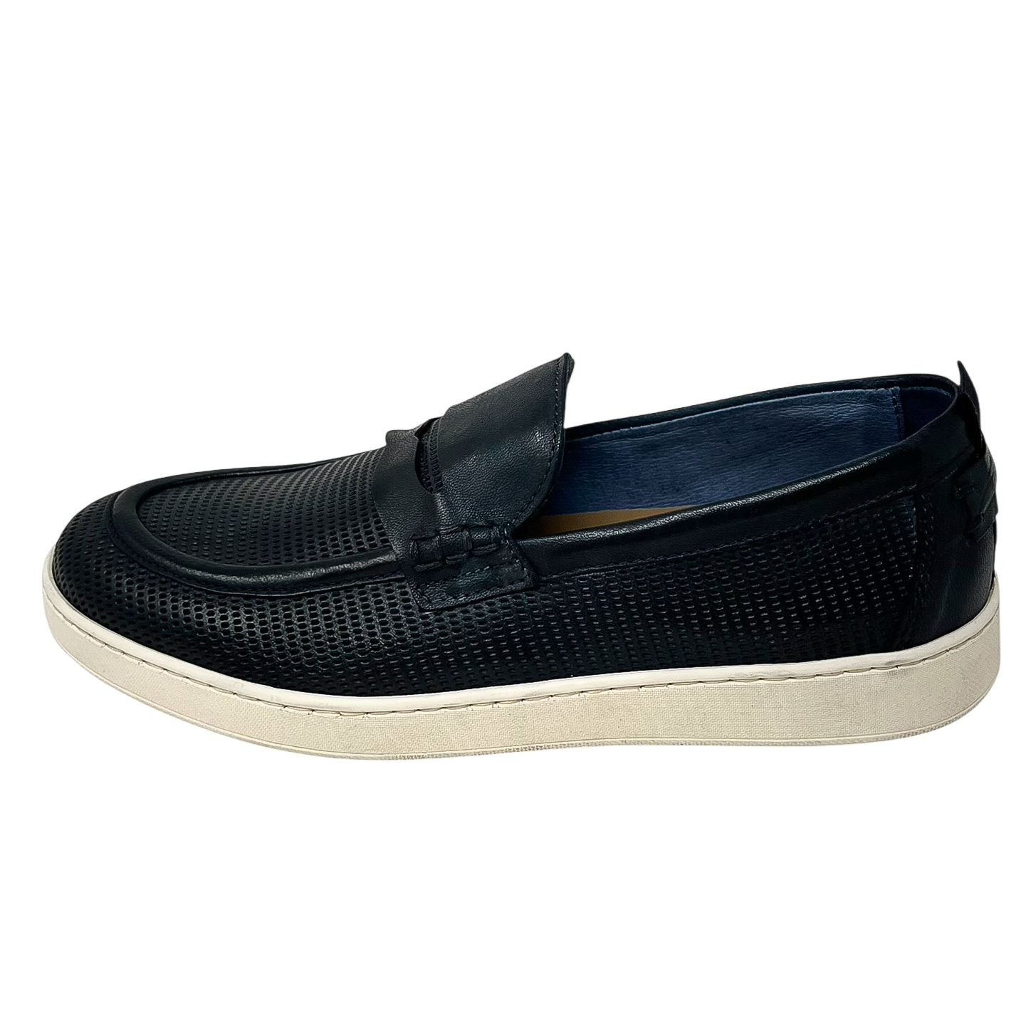 Mocassino in pelle traforata blu o marrone con suola in gomma