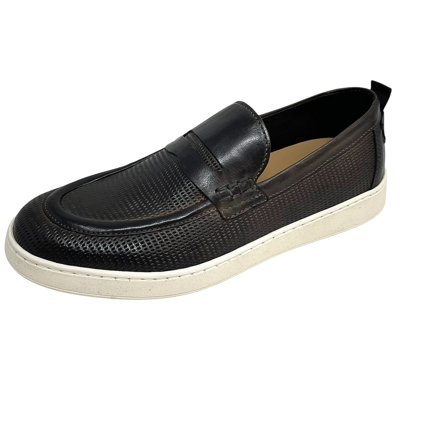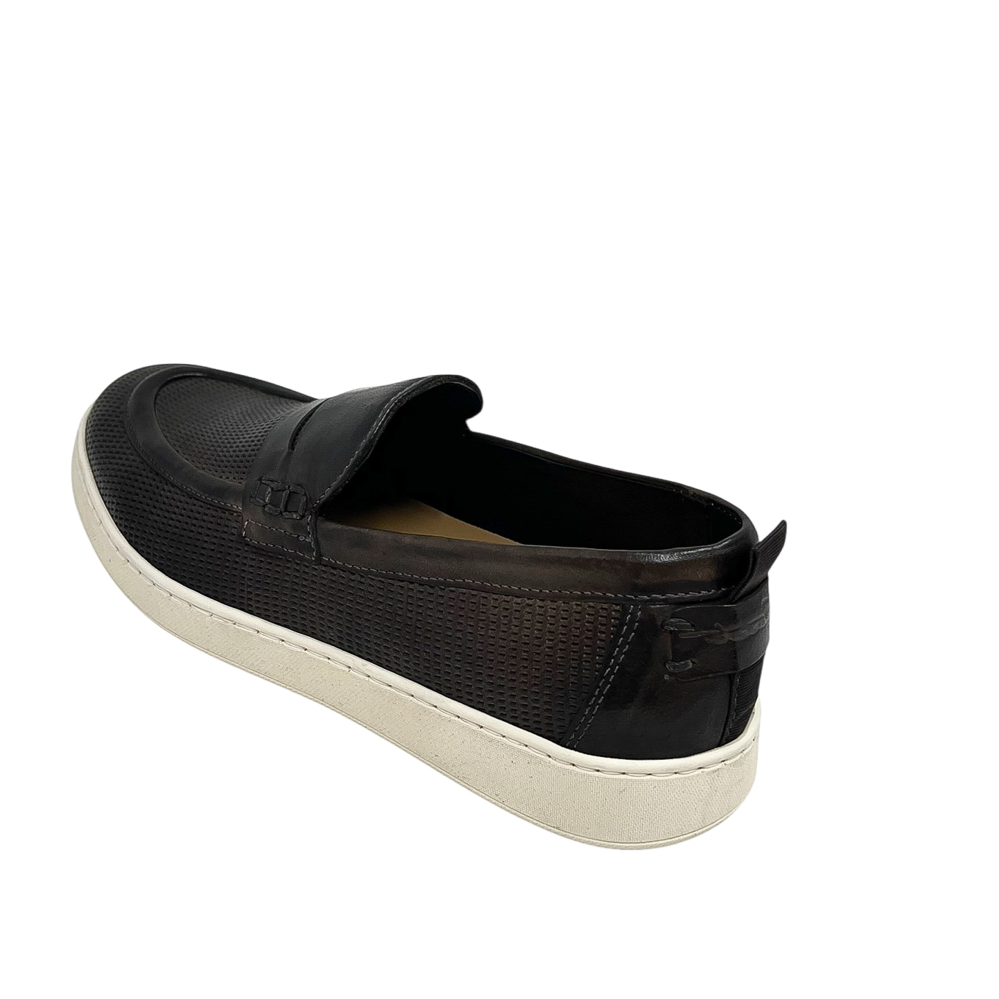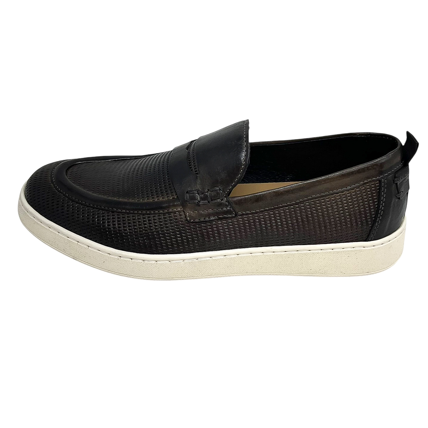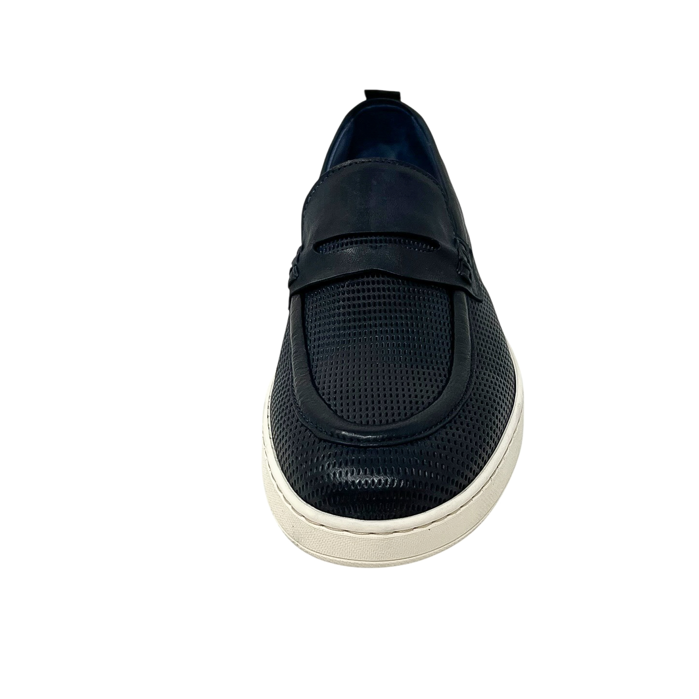Mocassino in pelle traforata blu o marrone con suola in gomma