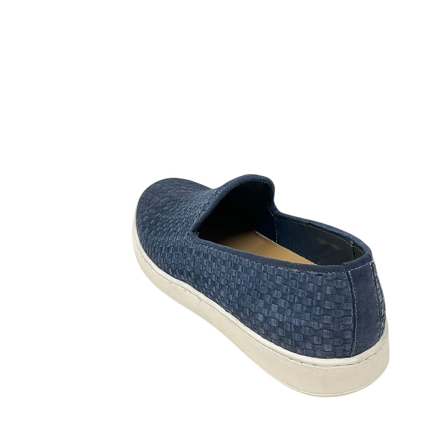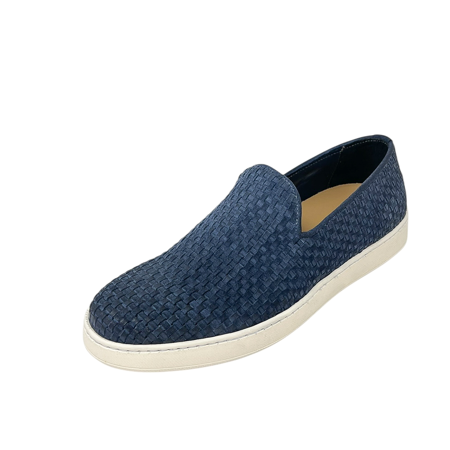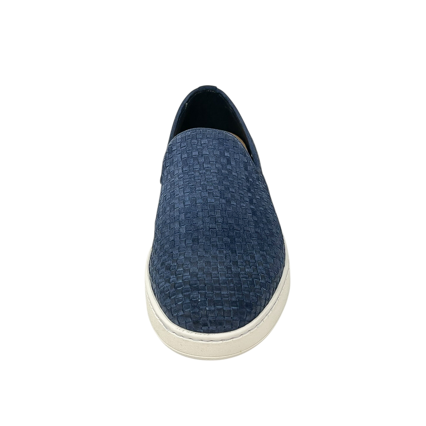 Slipon in camoscio intrecciato blu e sabbia con suola in gomma