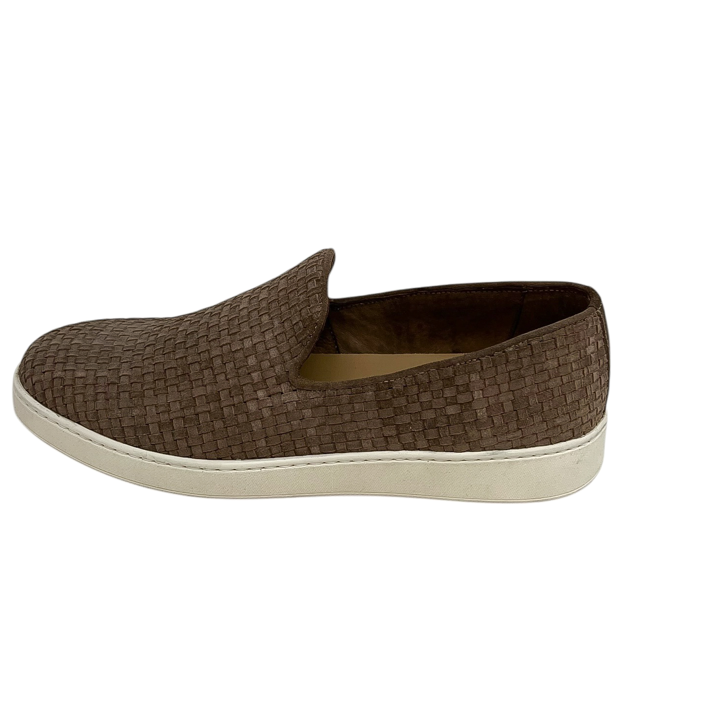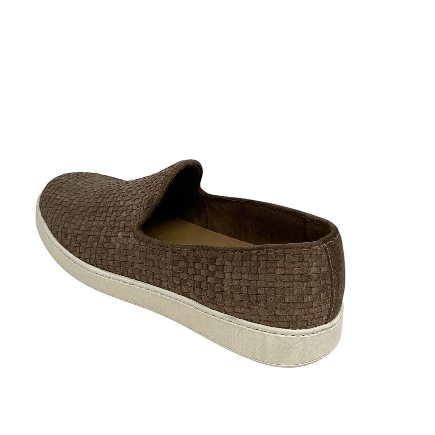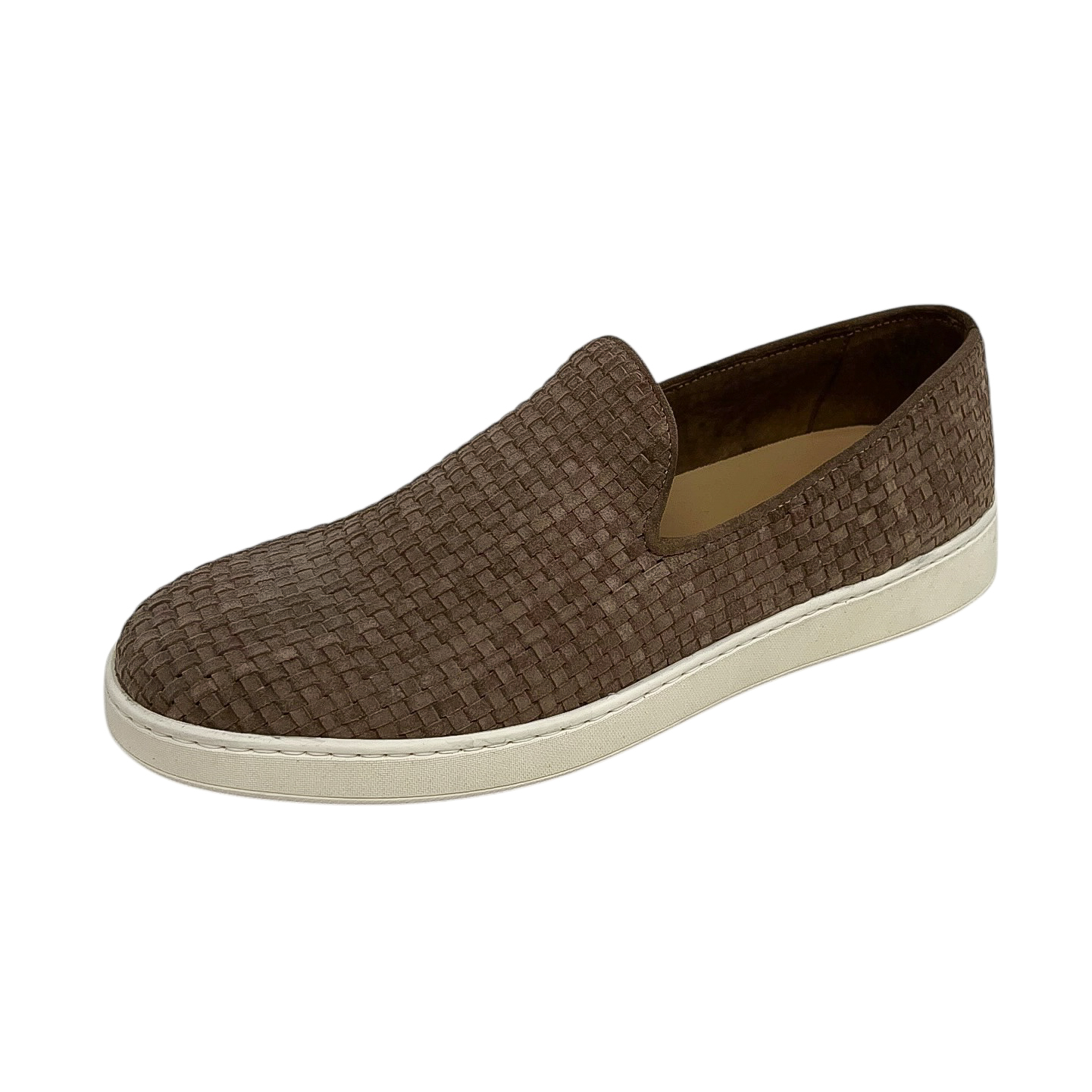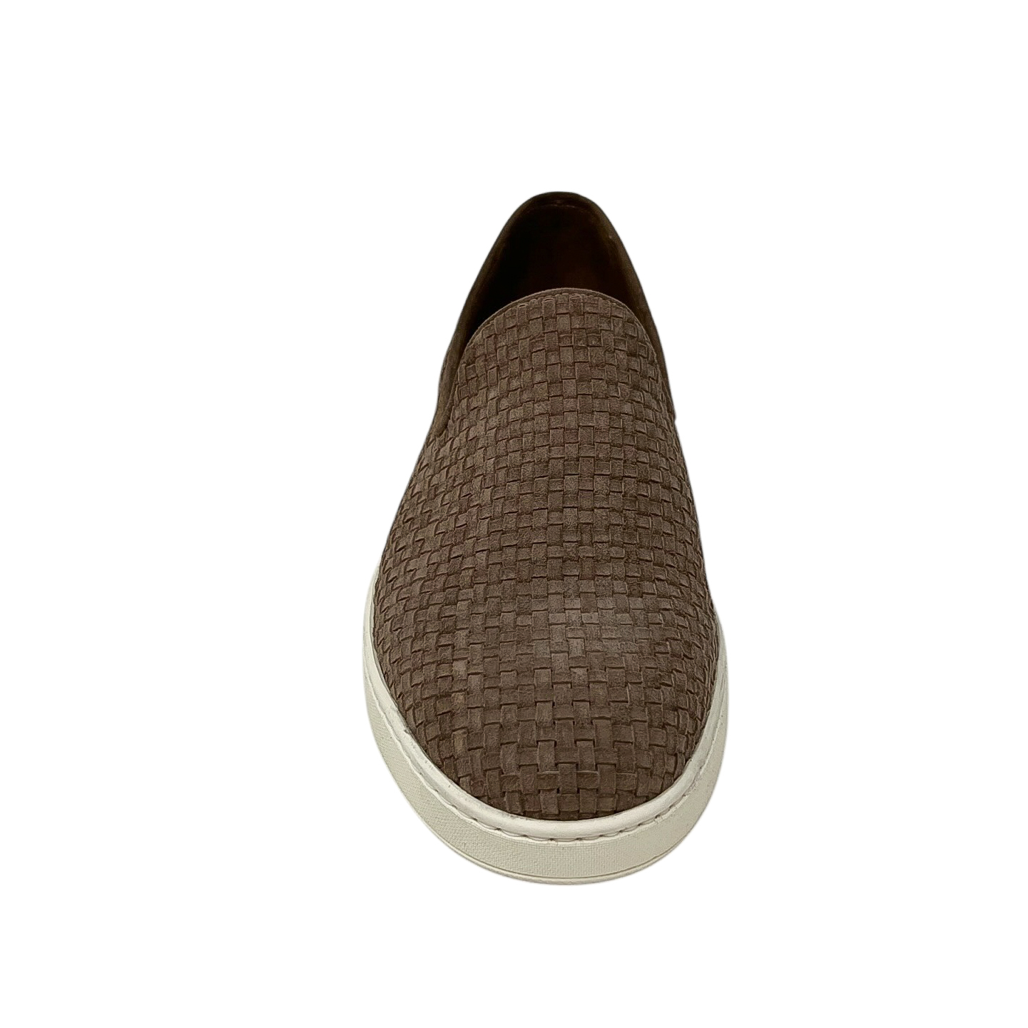 Slipon in camoscio intrecciato blu e sabbia con suola in gomma