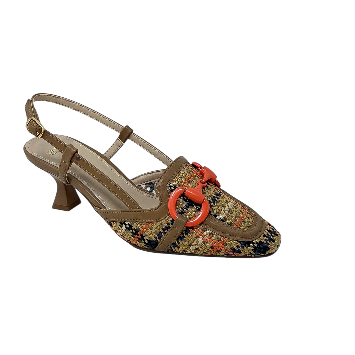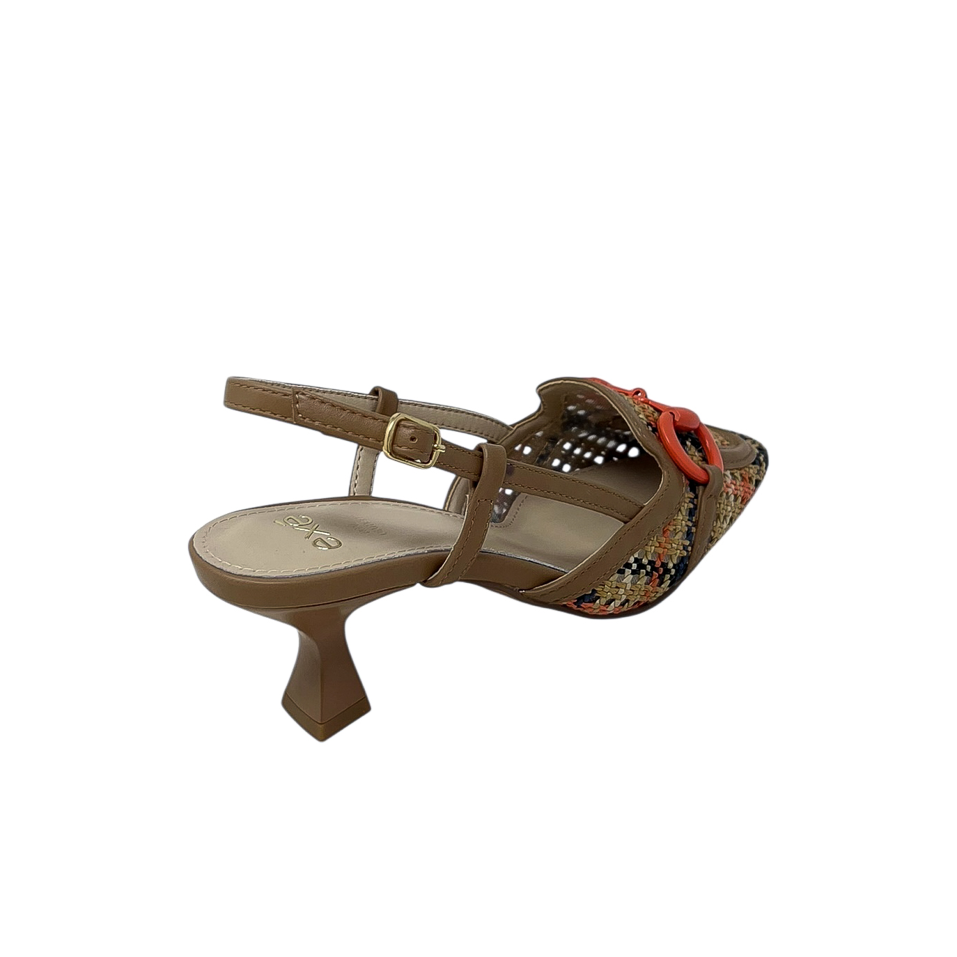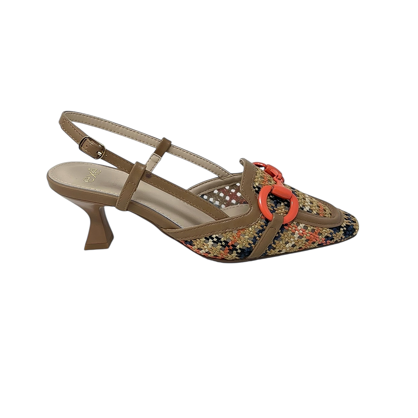Chanel in tweed blu/rosa o cuoio/arancione con morsetto e tacco di 4 centimetri