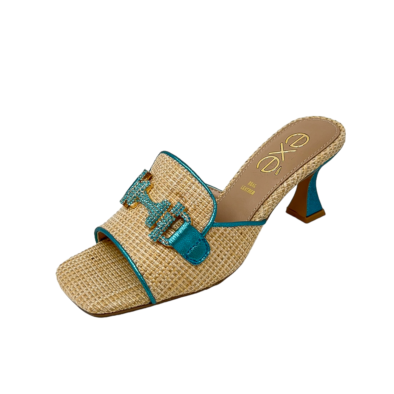 EXE’ 556 CIABATTA MORSETTO RAFIA BEIGE/AZZURRO – BEIGE/ROSA