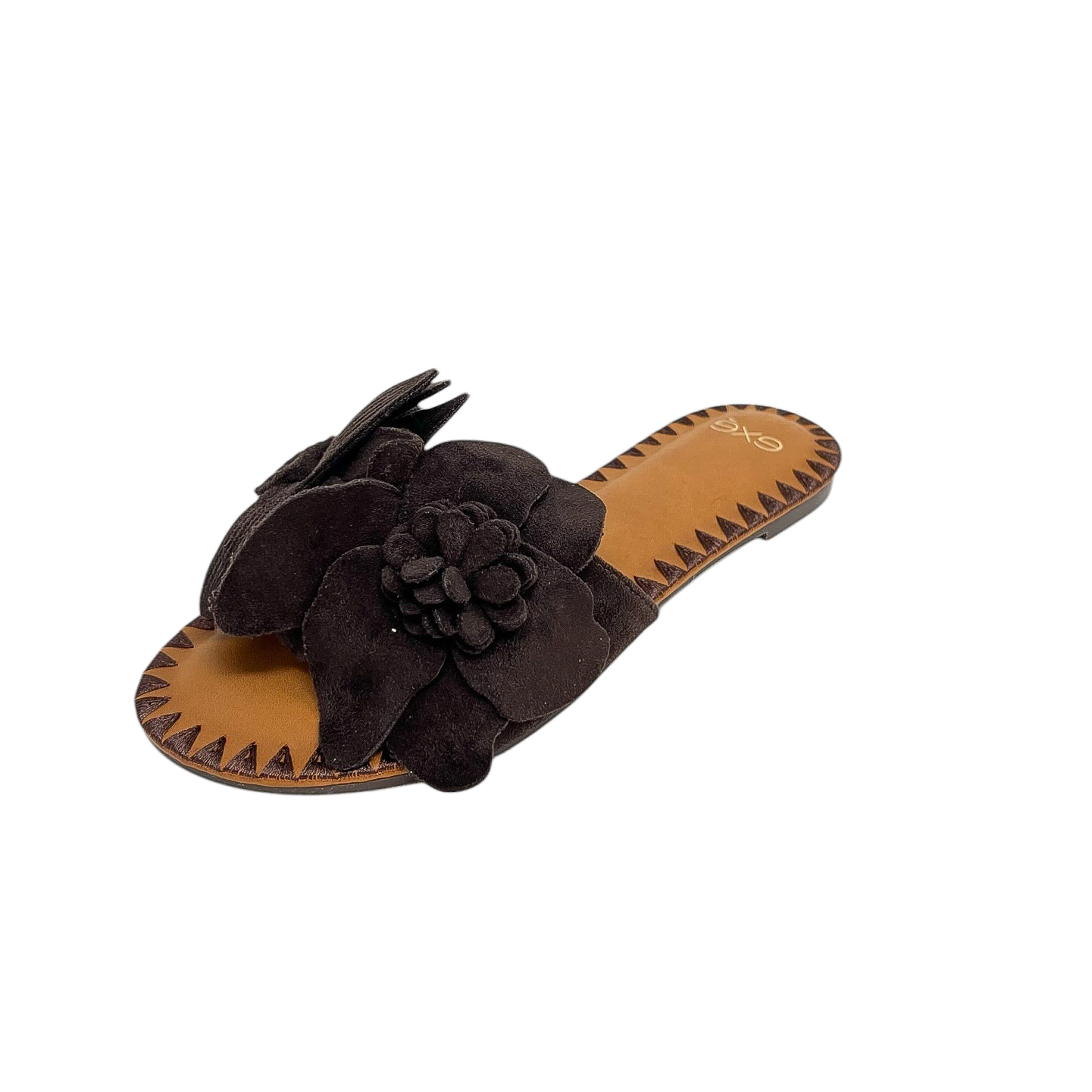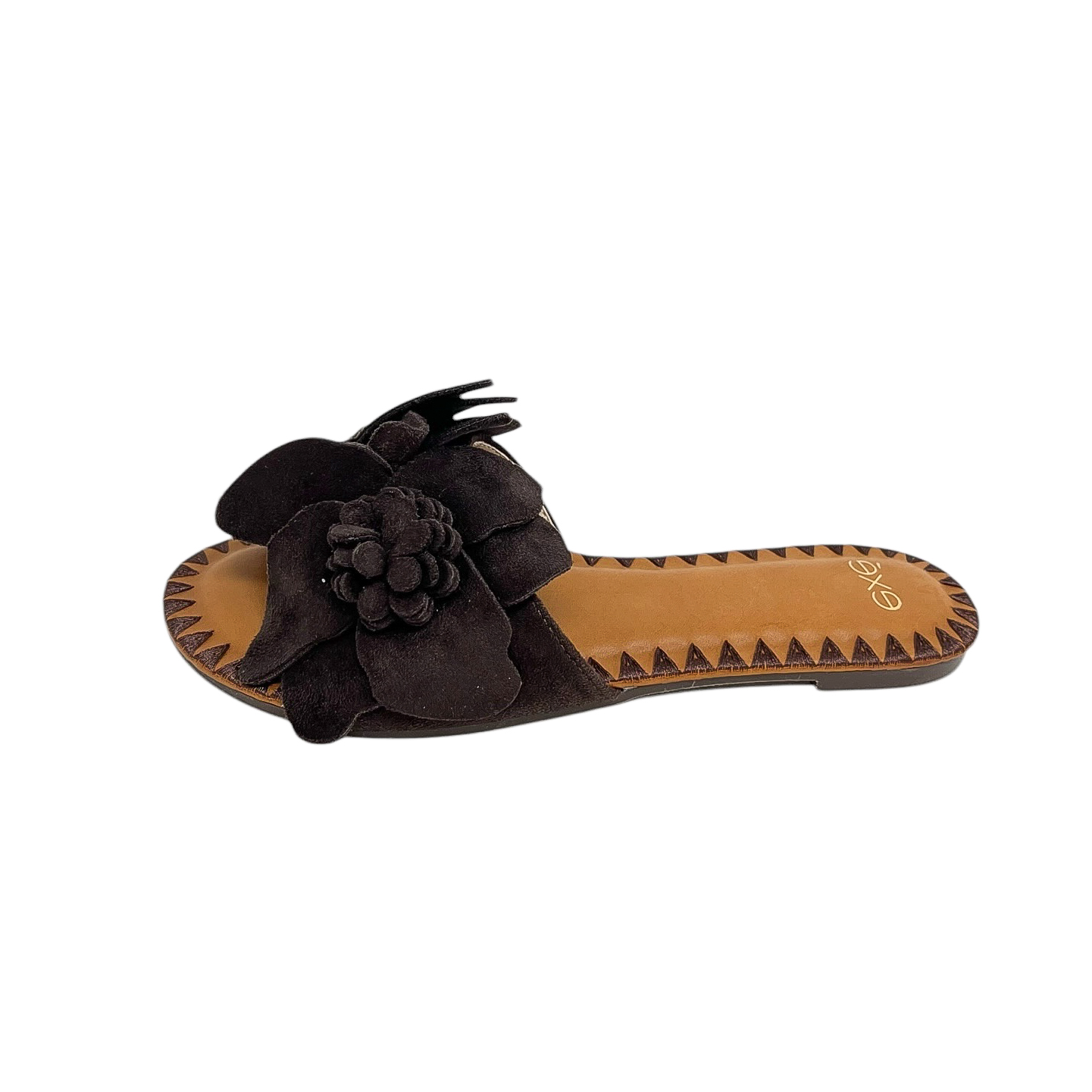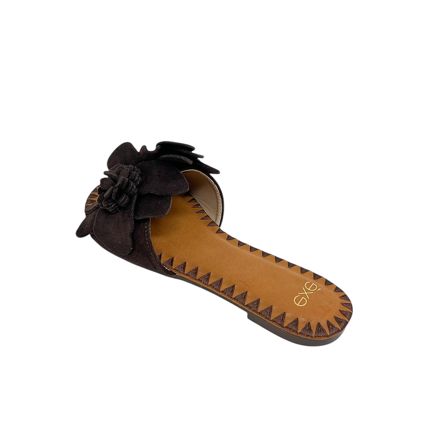 Ciabatta con fascia in fiori in camoscio marrone, beige o nera