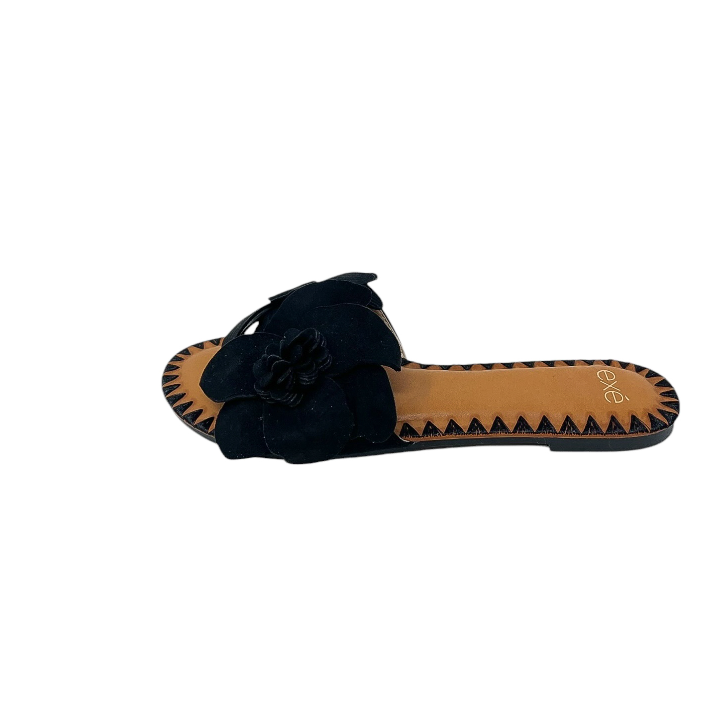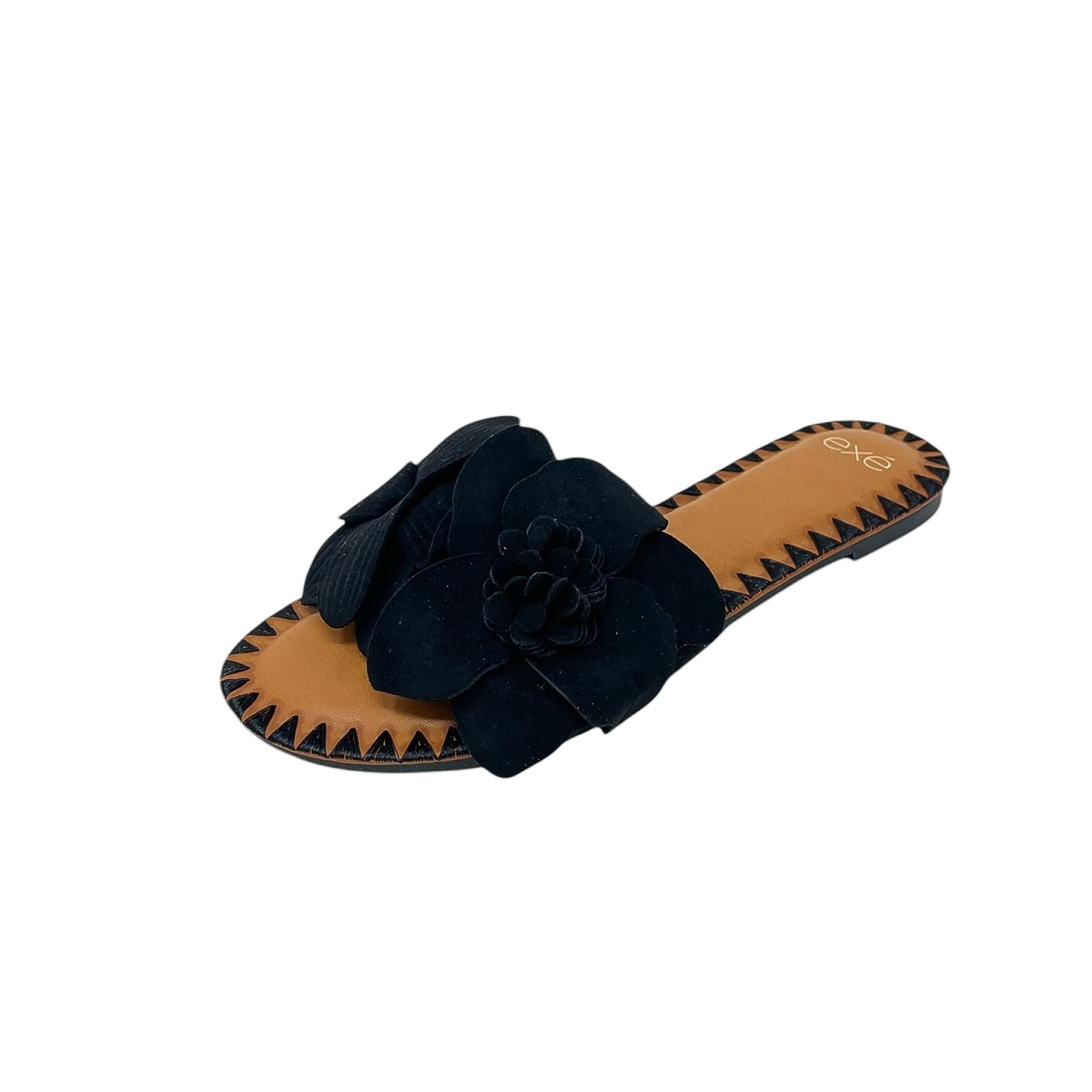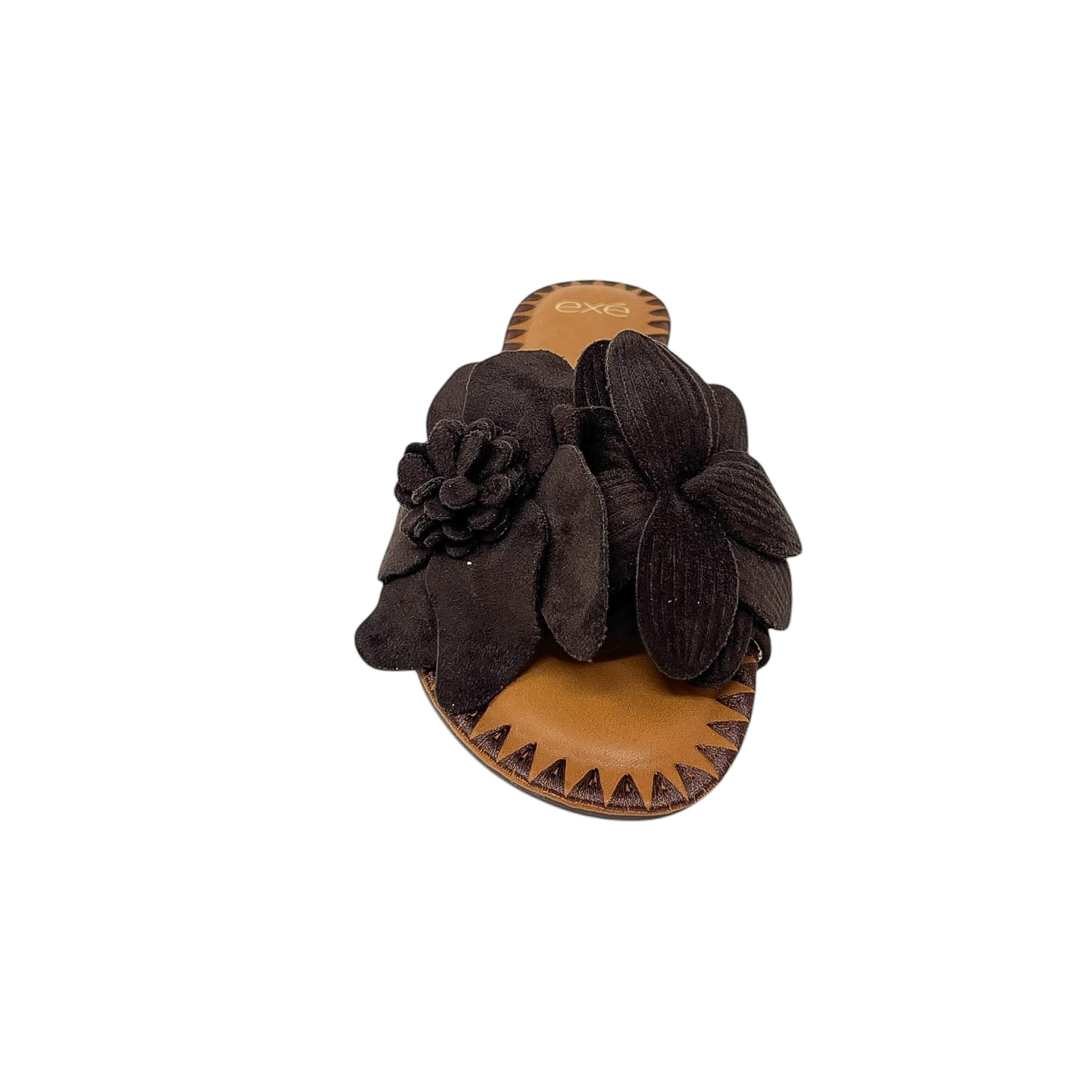 Ciabatta con fascia in fiori in camoscio marrone, beige o nera