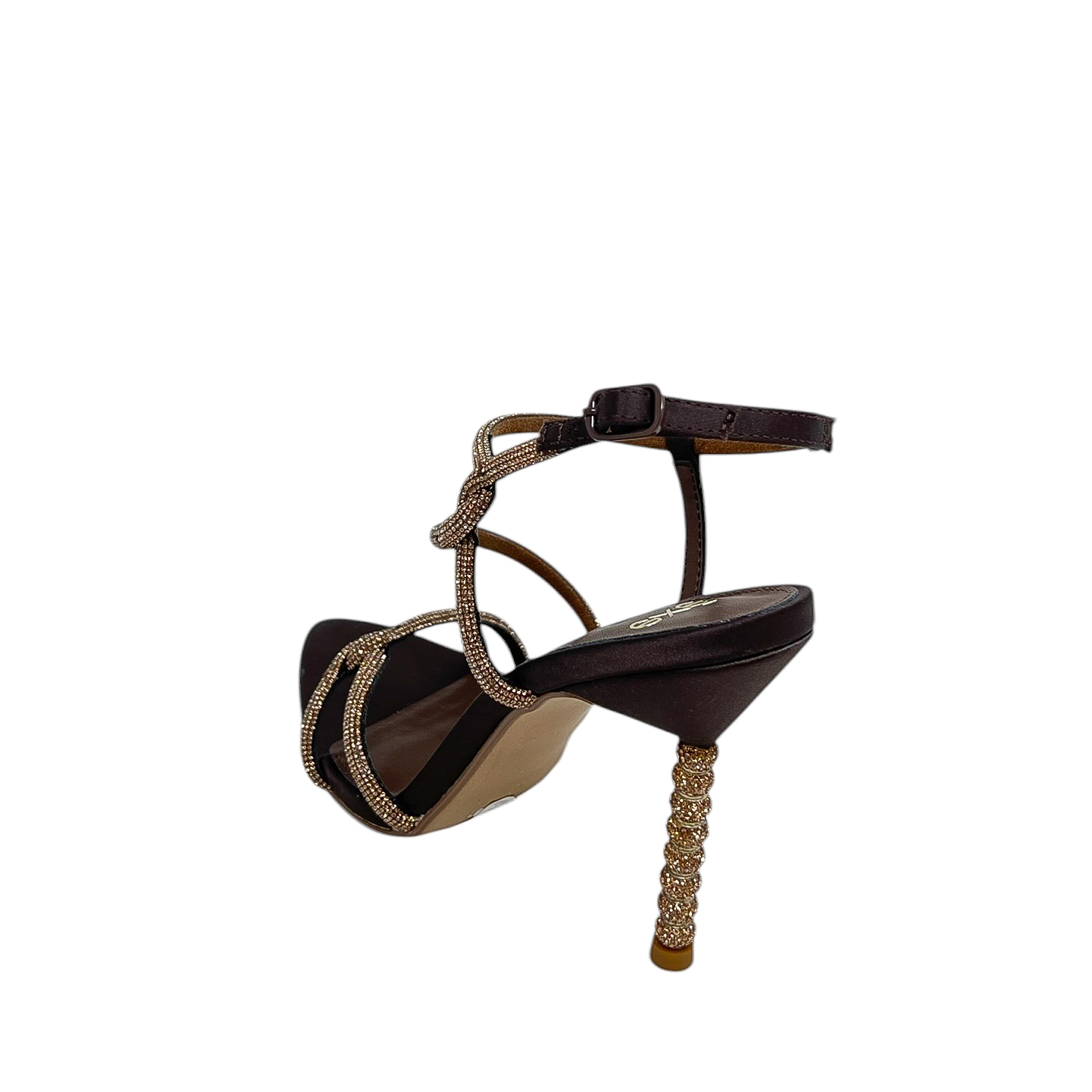 Sandalo marrone con listini in strass bronzo.Tacco in strass di 10 centimetri
