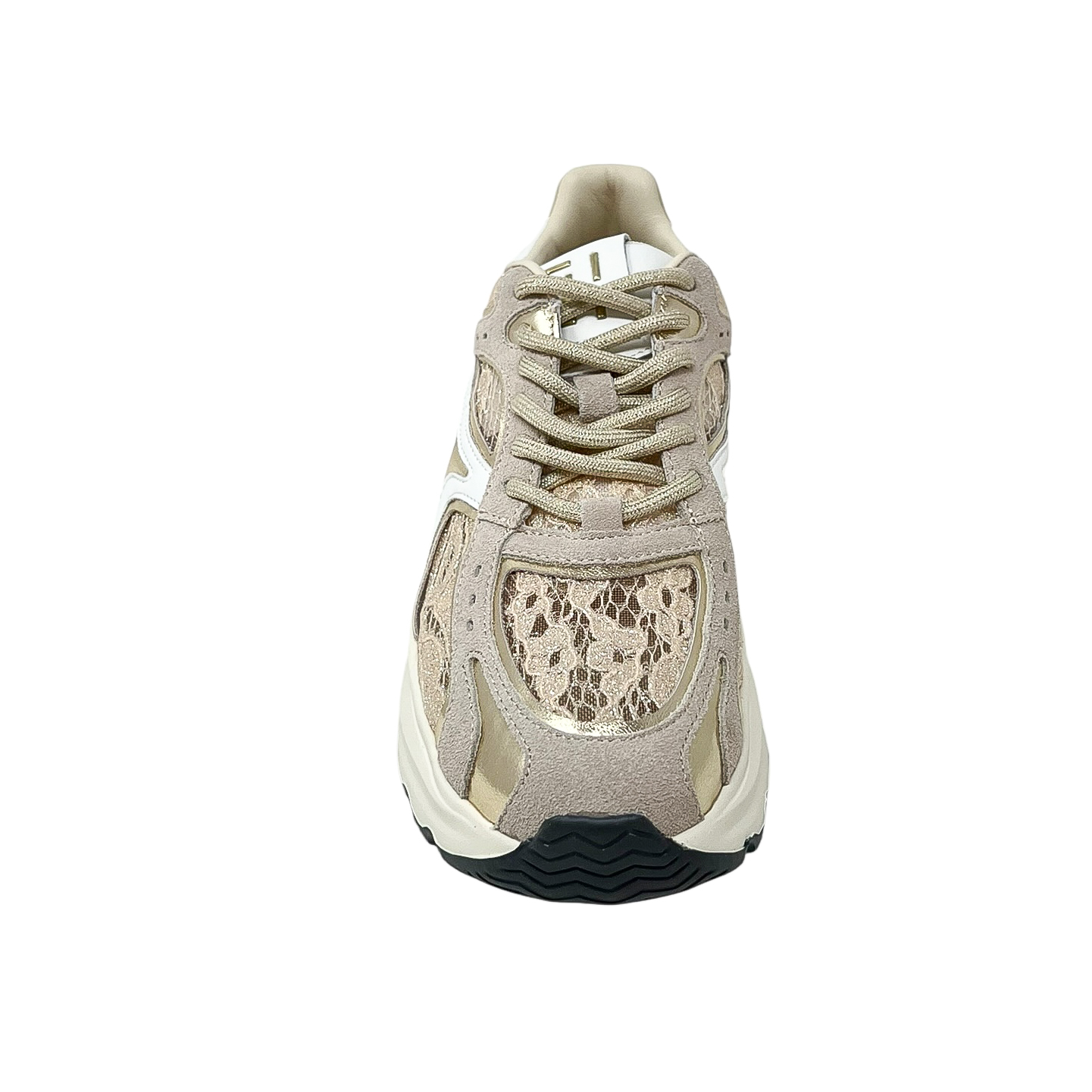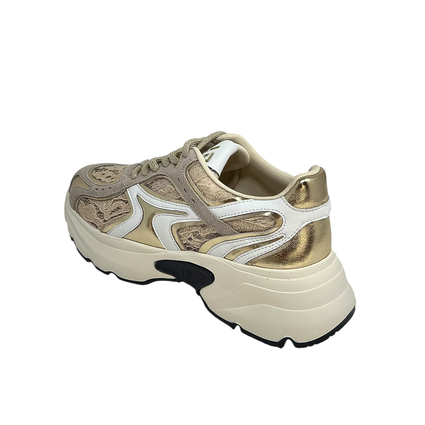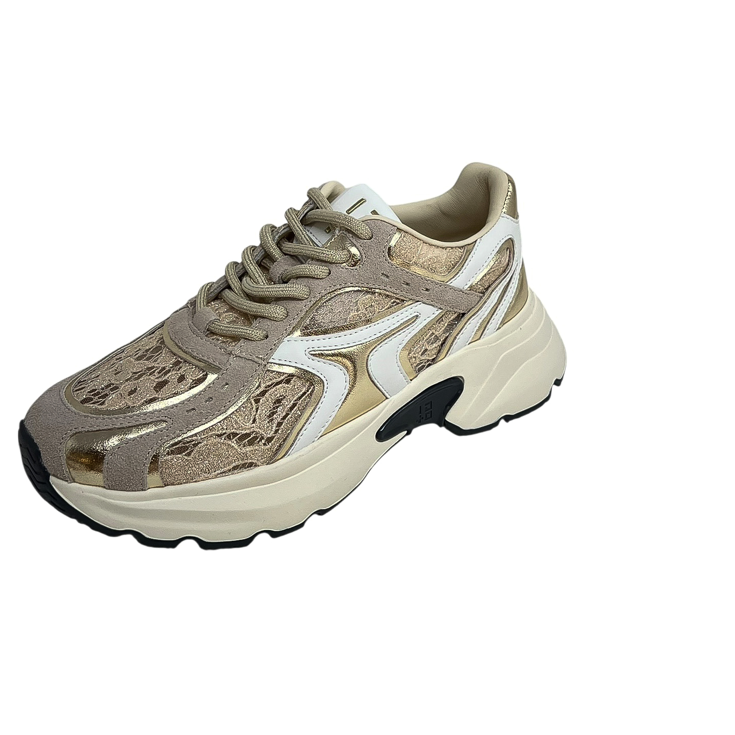 Sneaker running pizzo cipria e oro