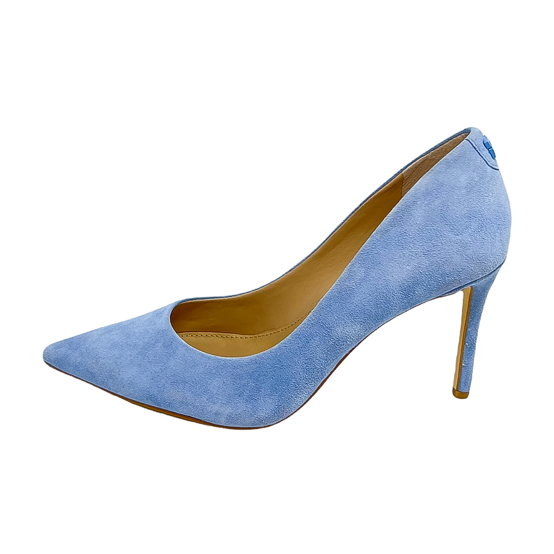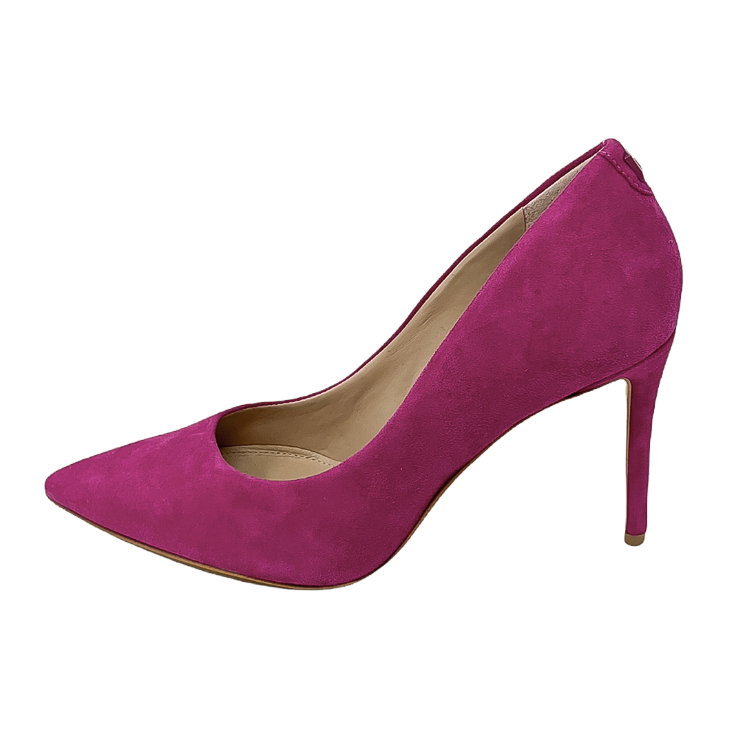 Decollete in camoscio fuxia,rosso corallo o azzurro con tacco di 8 centimetri