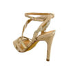 Sandalo in camoscio beige/oro con listini intrecciati,cinturino alla caviglia e tacco di 10 centimetri