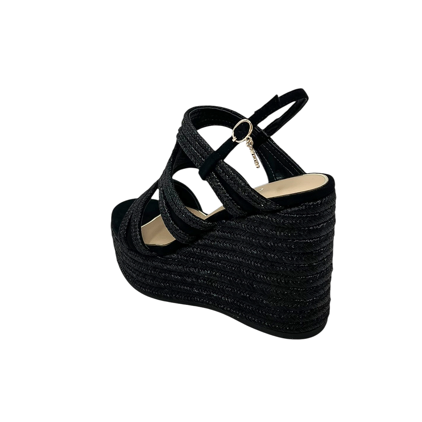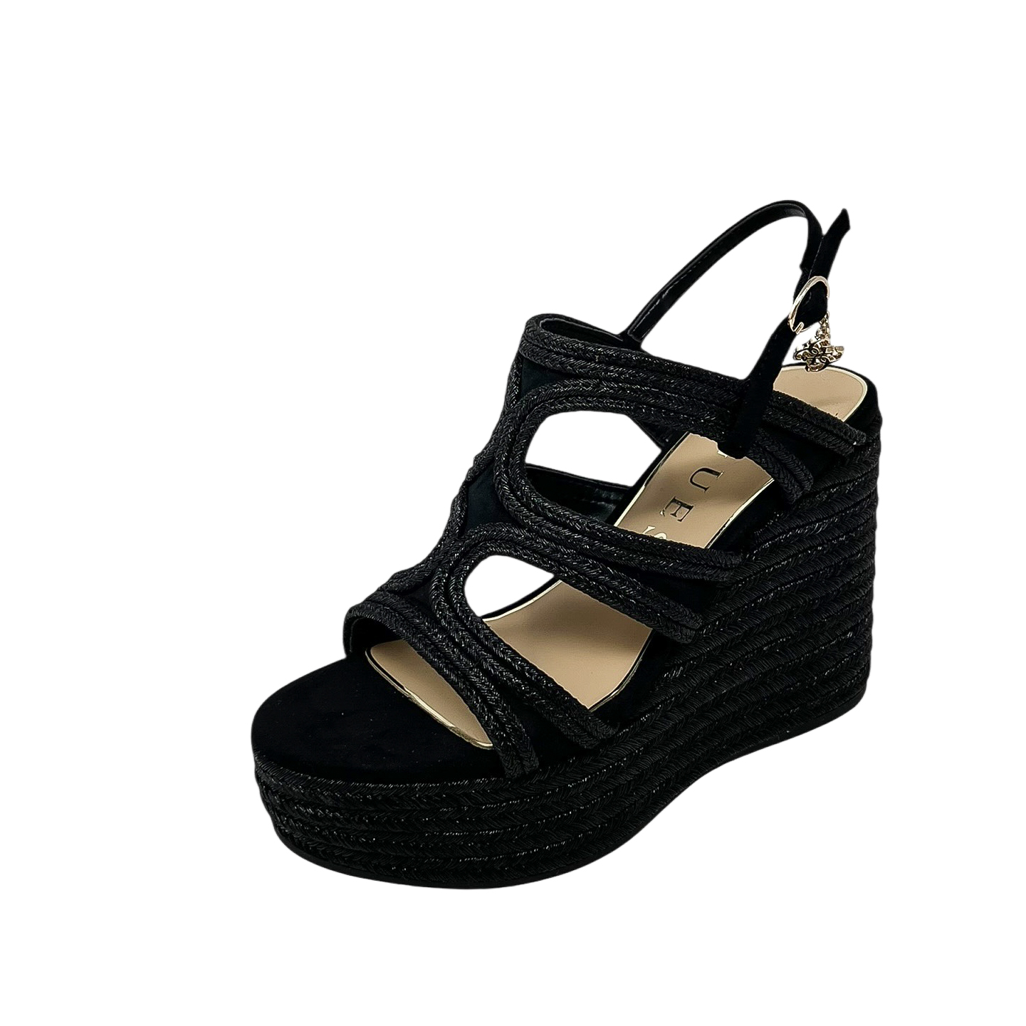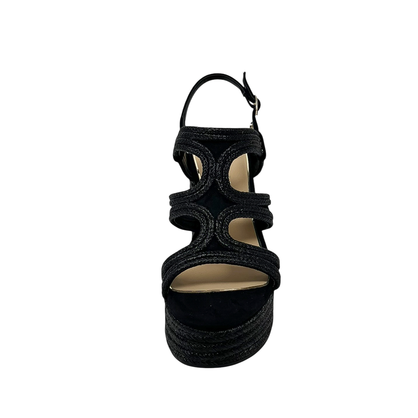 Zeppa con fasce intrecciate nera o beige/cipria con zeppa di 9 centimetri