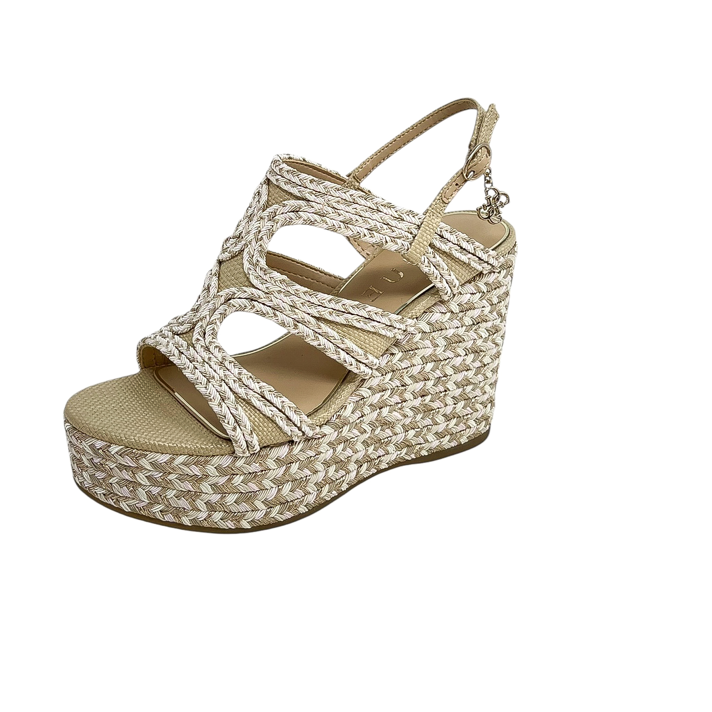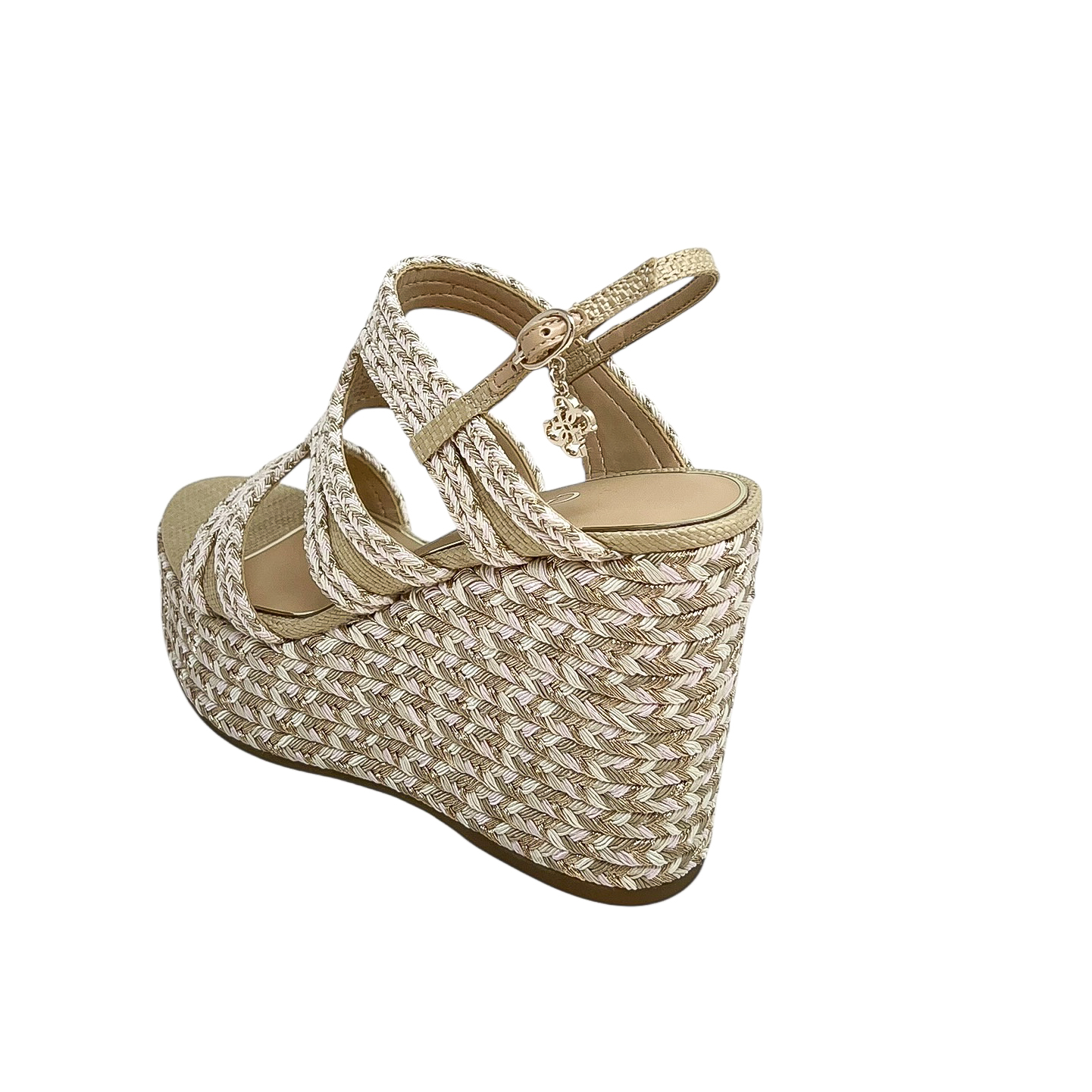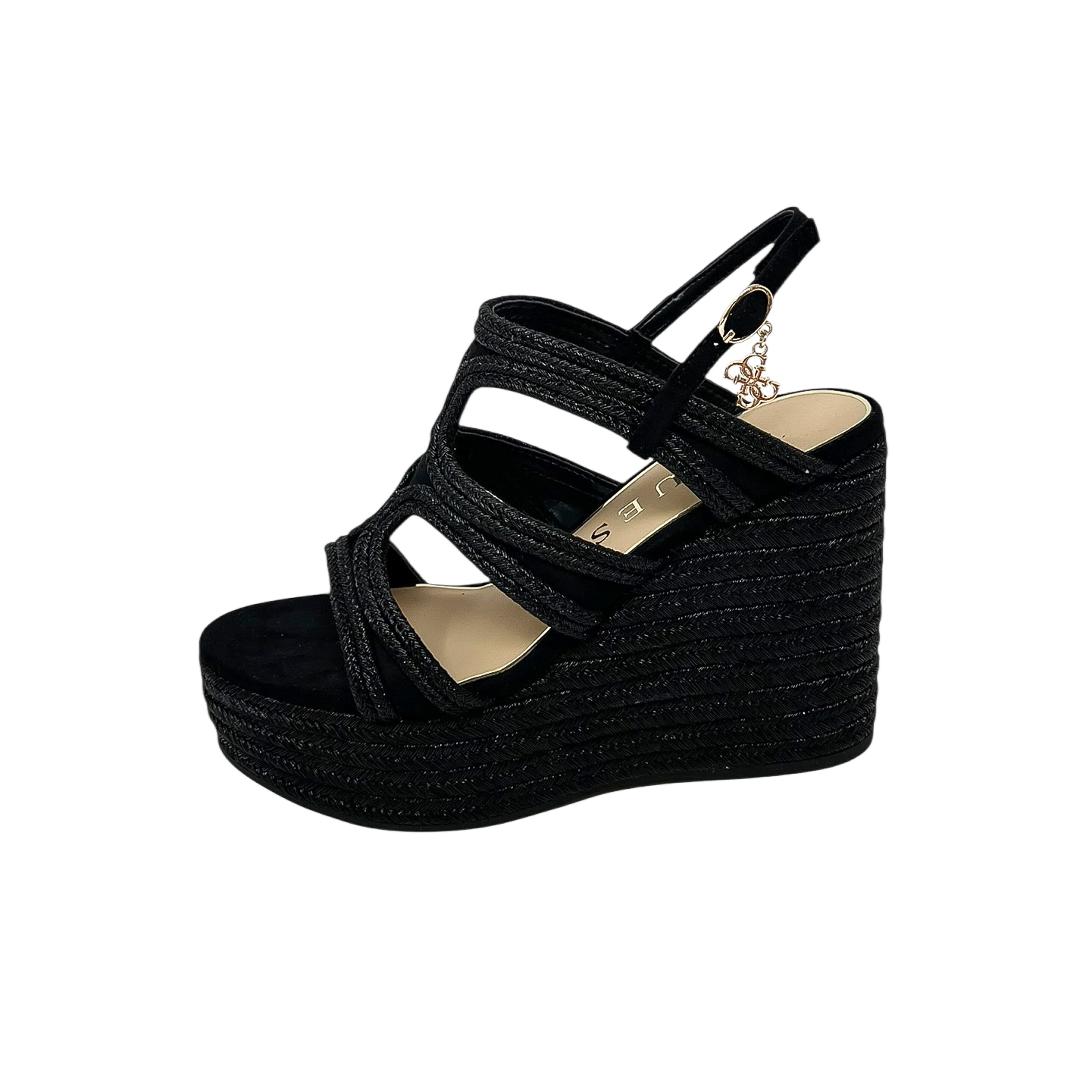 Zeppa con fasce intrecciate nera o beige/cipria con zeppa di 9 centimetri