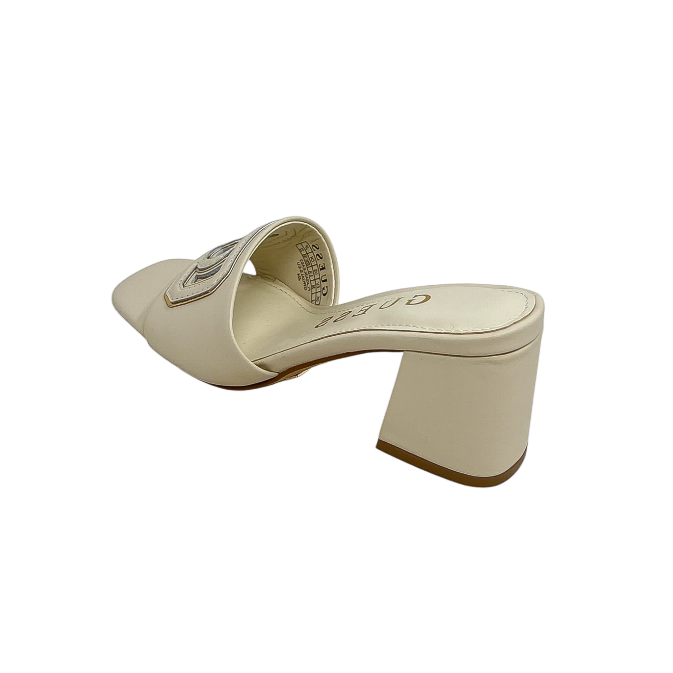Ciabatta panna con fascia logata G e tacco grosso di 5 centimetri