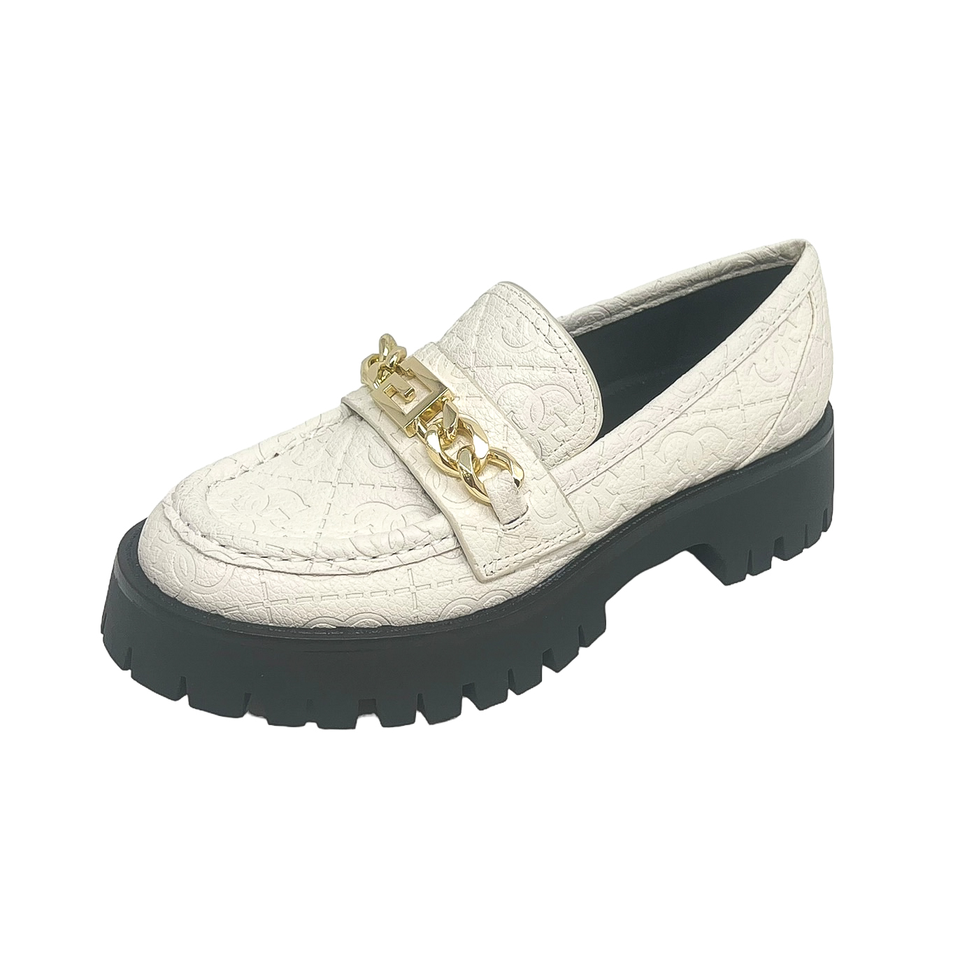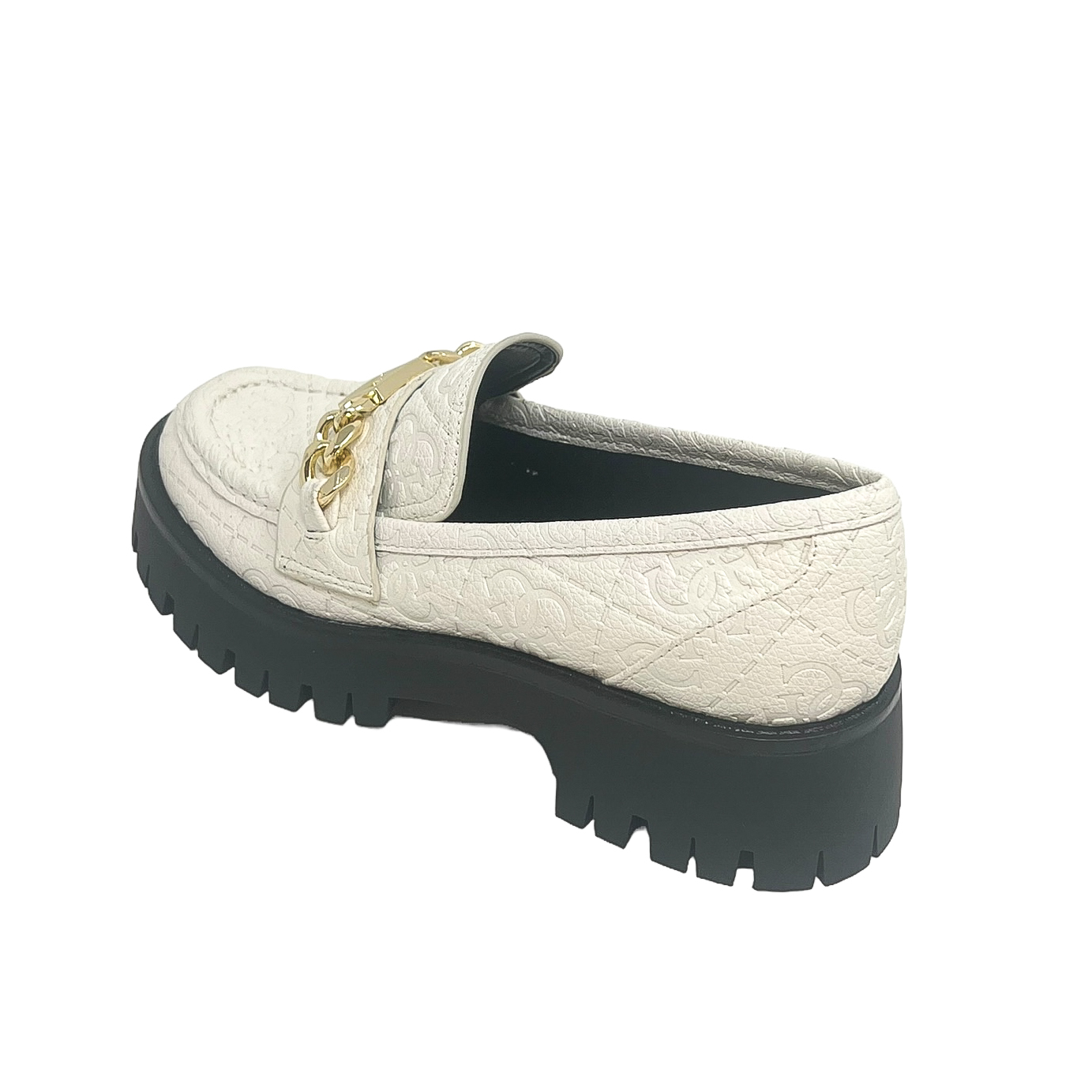 Mocassino logato bianco con catena e con suola in gomma di 3 centimetri