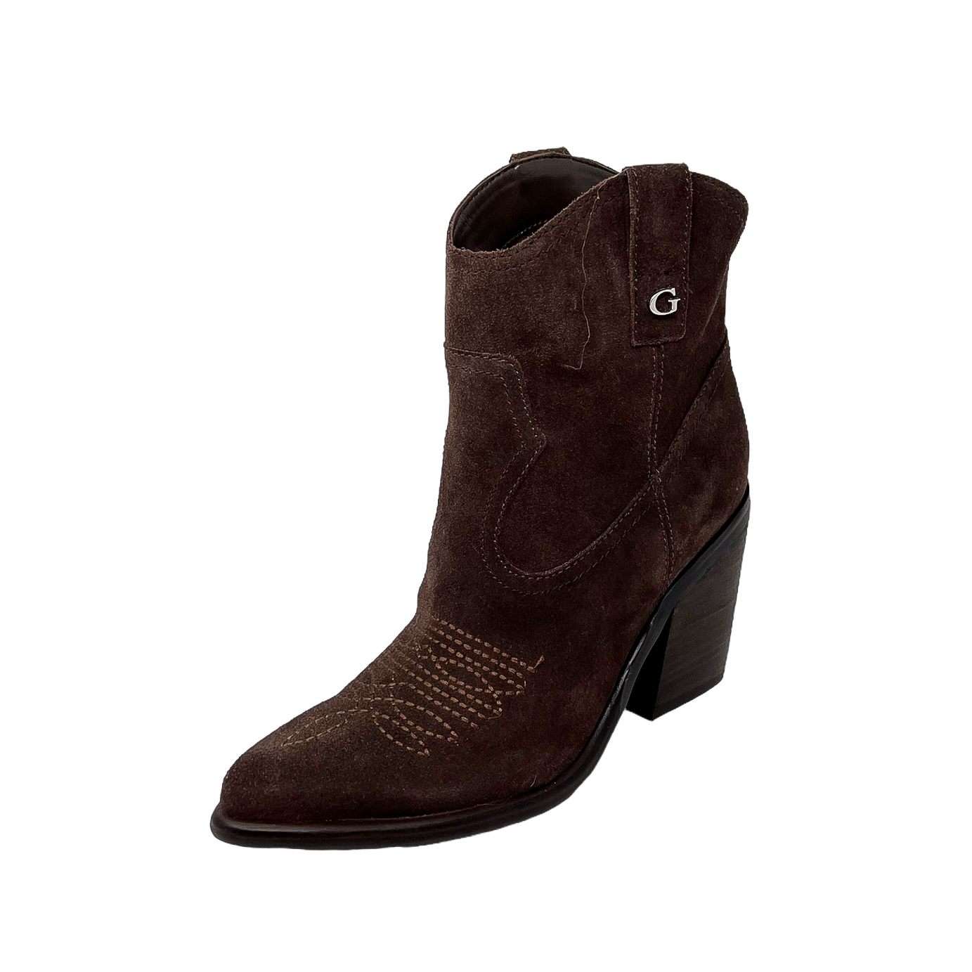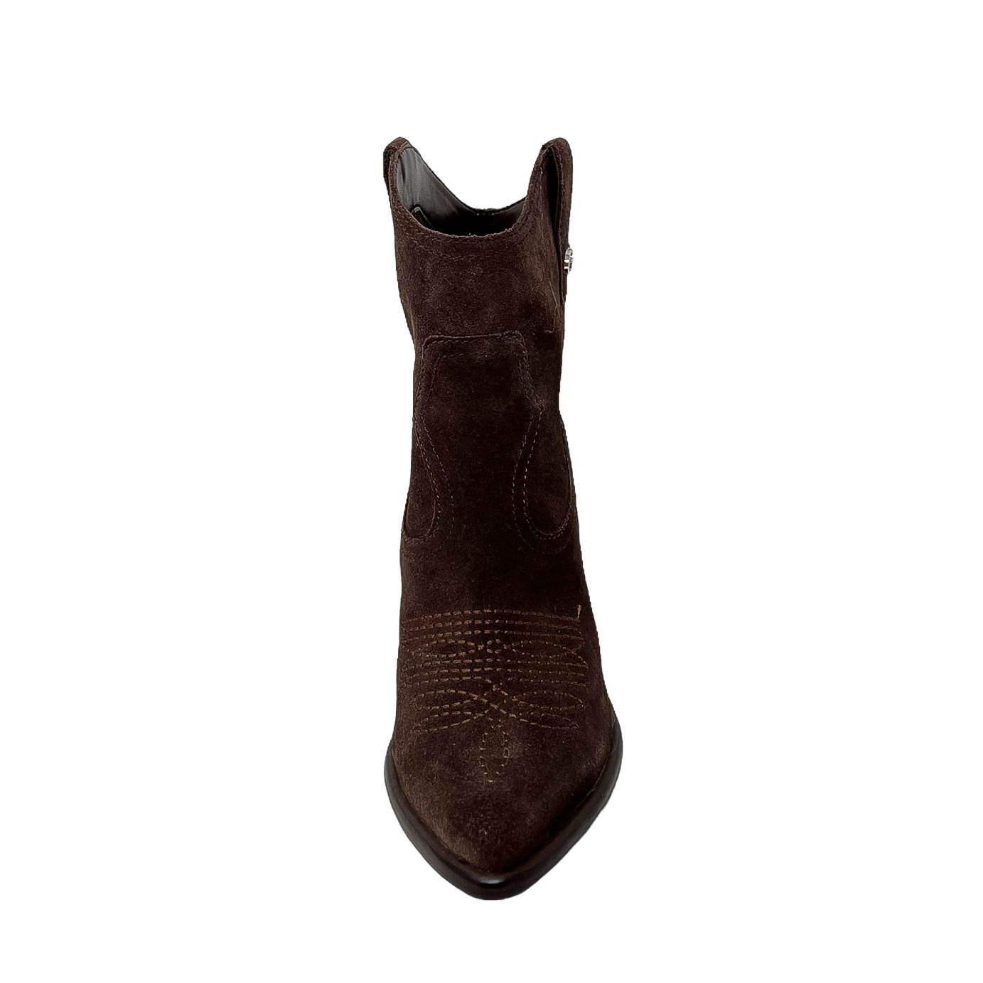 Stivaletto camperos in camoscio marrone con tacco grosso di 10 centimetri