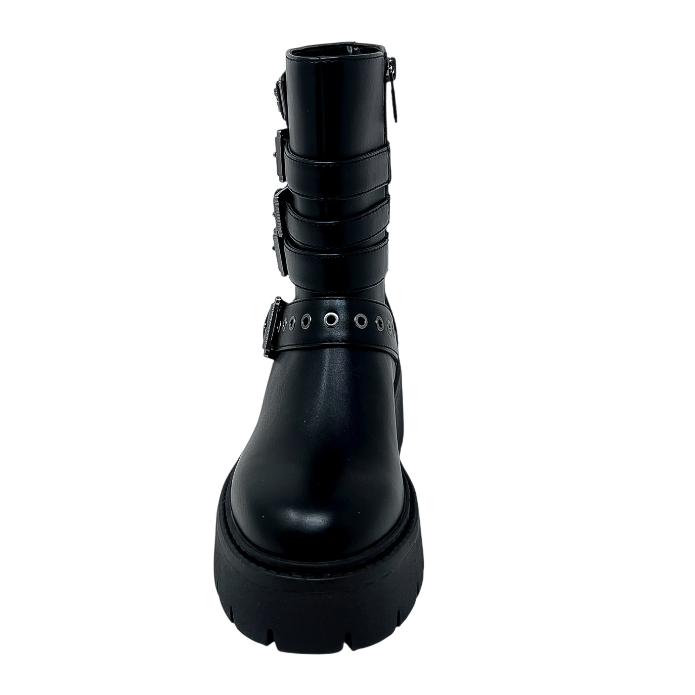 Stivaletto nero con 4 fibbie laterali e tacco grosso di 3 centimetri
