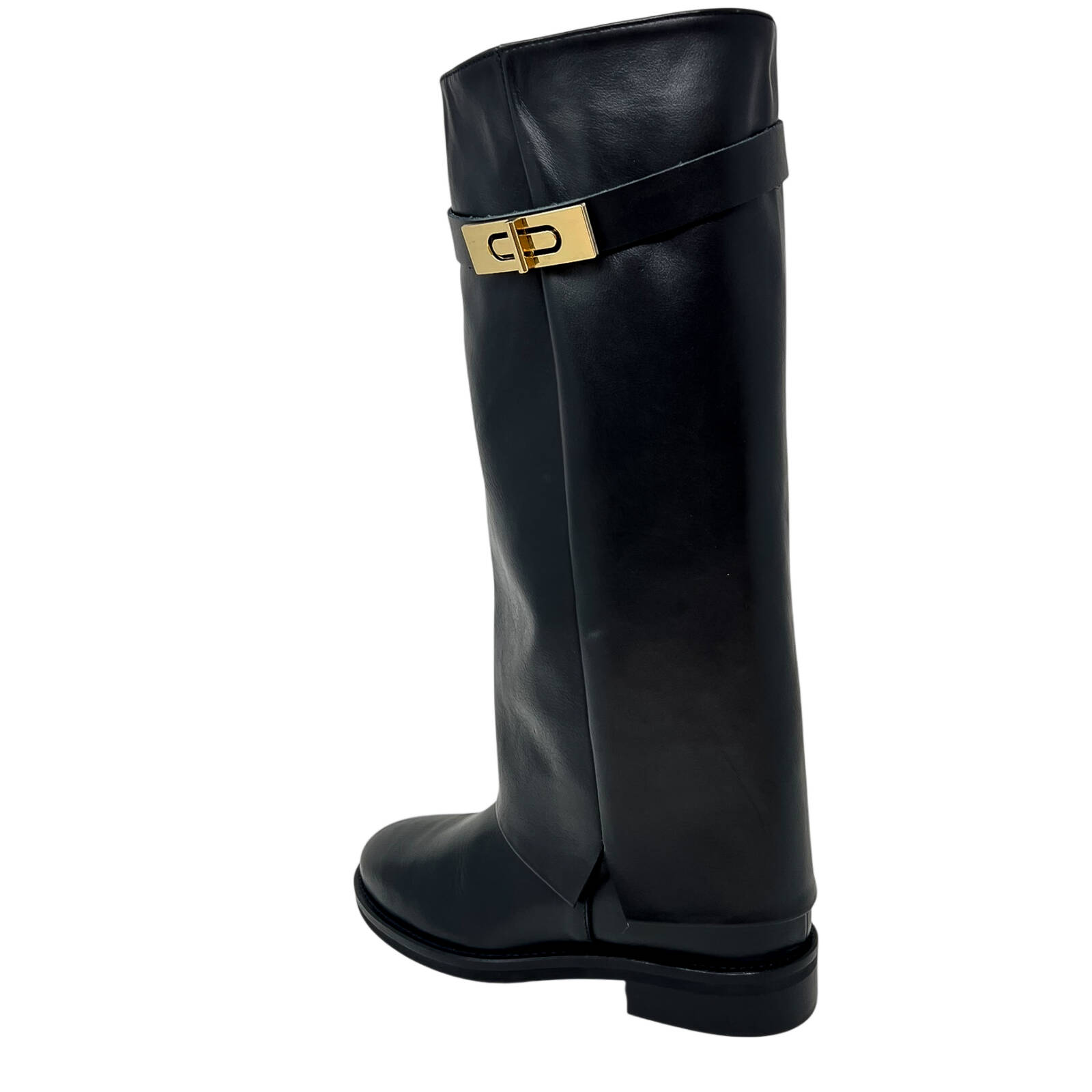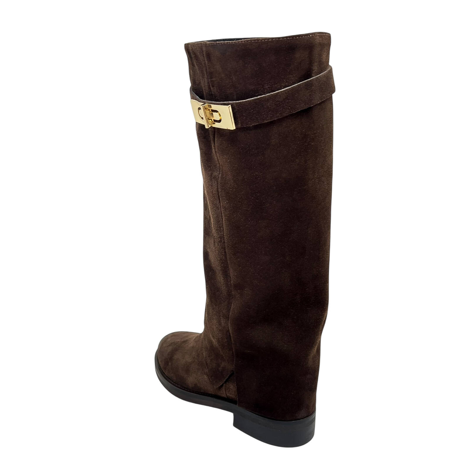 Stivale in pelle nera o camoscio marrone con ghetta e lucchetto laterale