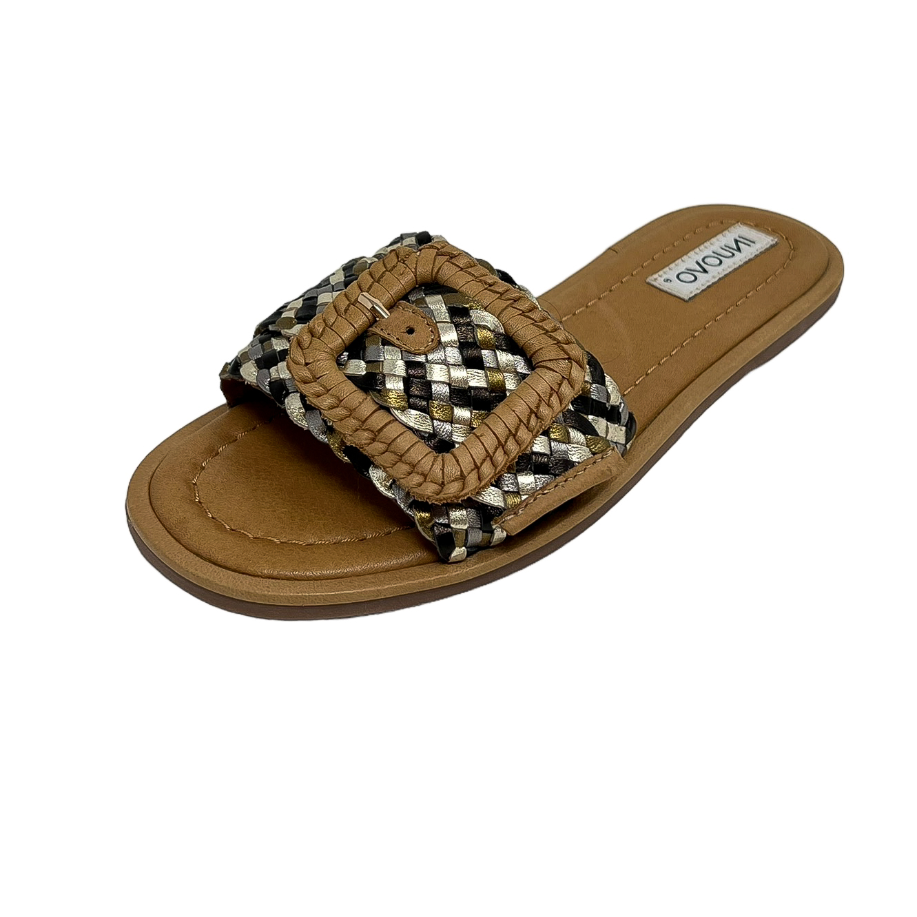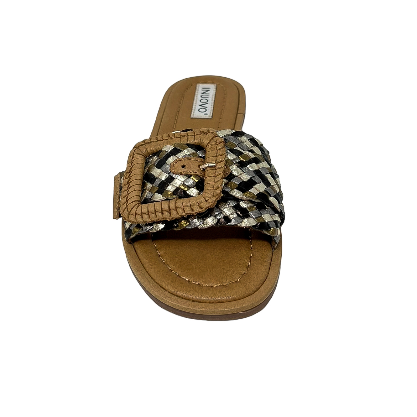 Ciabatta in pelle intrecciata multicolor grigio con fibbia laterale