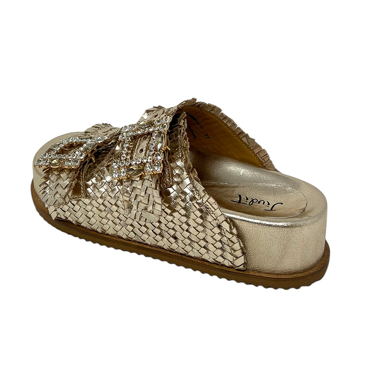 JUDIT 212 CIABATTA 2 FASCE INTRECCIATE NERO – ORO – BIANCO