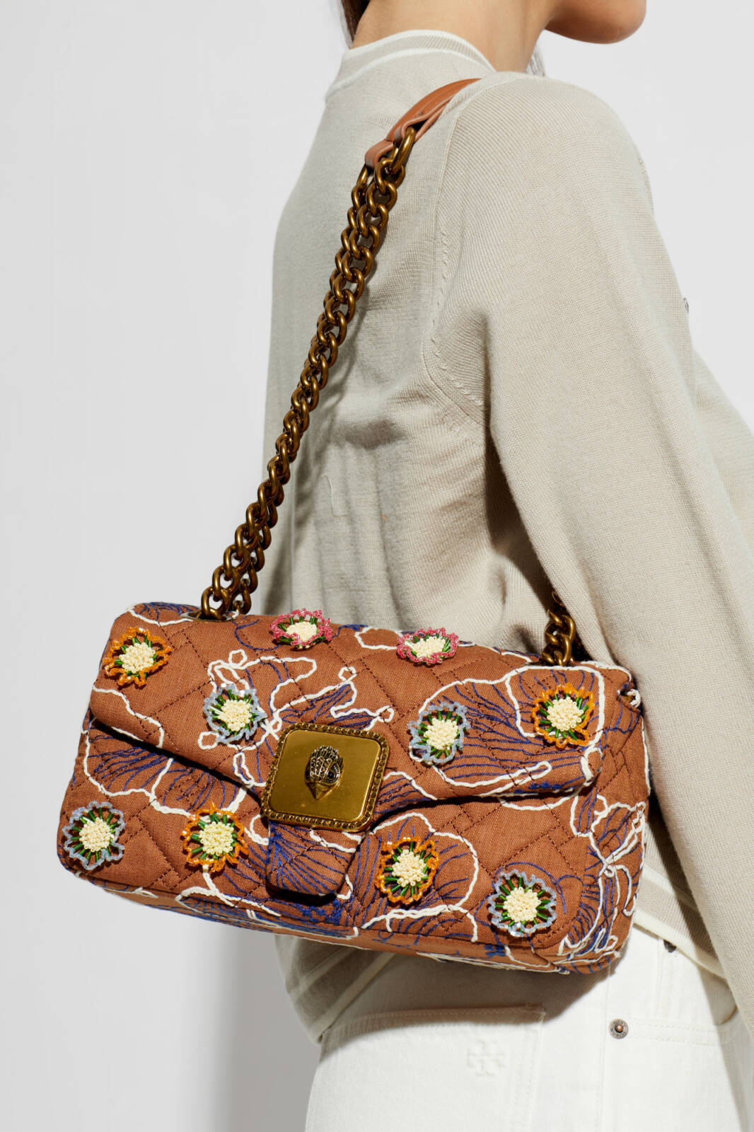 L’opulenta chiusura in metallo color oro, impreziosita da un elaborato motivo centrale, esalta il fascino sofisticato della borsa, mentre la robusta e scultorea tracolla a catena dorata ne sottolinea il glamour moderno. Ogni dettaglio esemplifica la celebre fusione di innovazione, stile britannico e design vibrante che contraddistingue Kurt Geiger, rendendo la borsa a tracolla Pimlico un acquisto davvero unico per i collezionisti più esigenti.