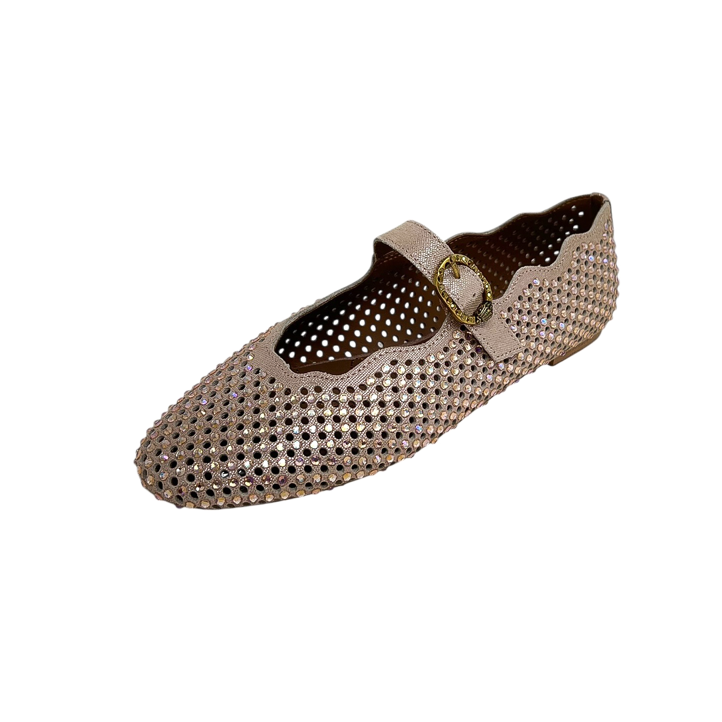 Ballerina/bebè traforata rosa con strass e cinturino sul collo del piede