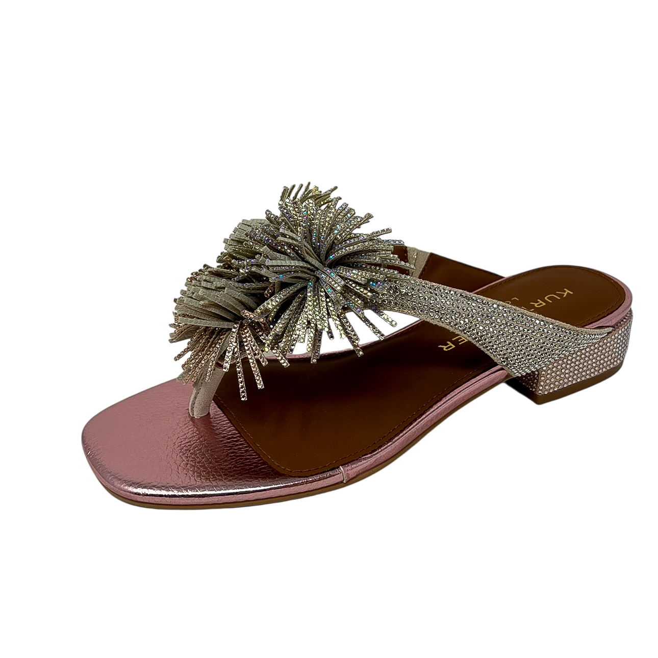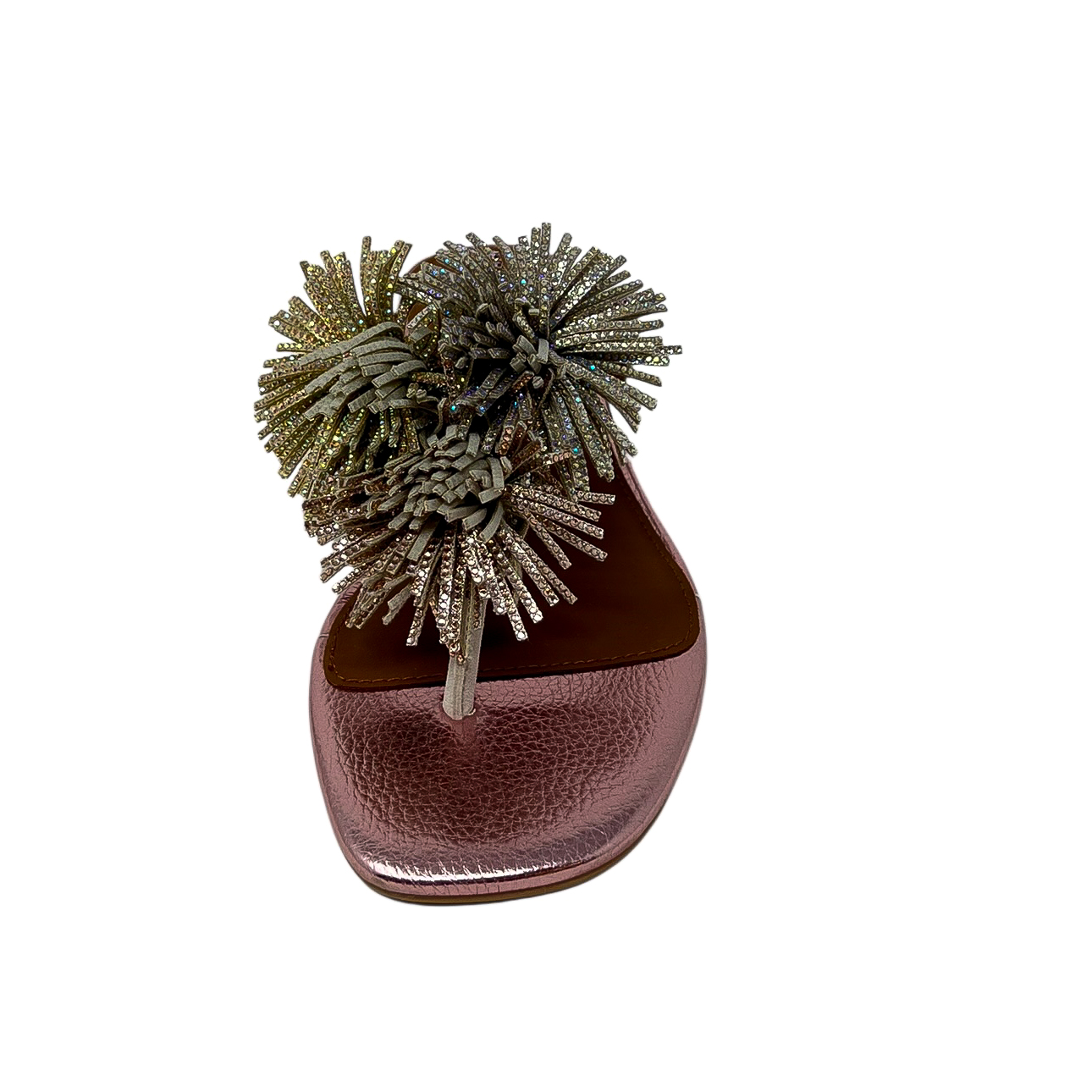 Ciabatta infradito con pon pon in strass multicolor pastello