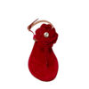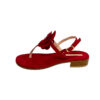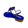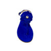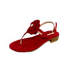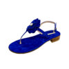 Sandalo infradito in camoscio rosso o bluette con fiore e strass centrale, suola imbottita e tacco di 2 centimetri