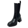 Tronchetto in pelle nera con elastici laterali e tacco grosso di 10 centimetri con platform