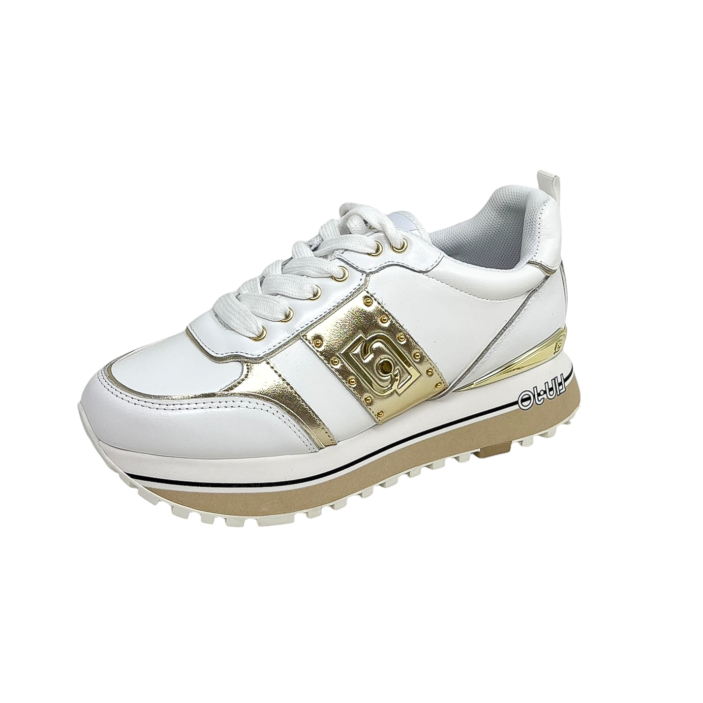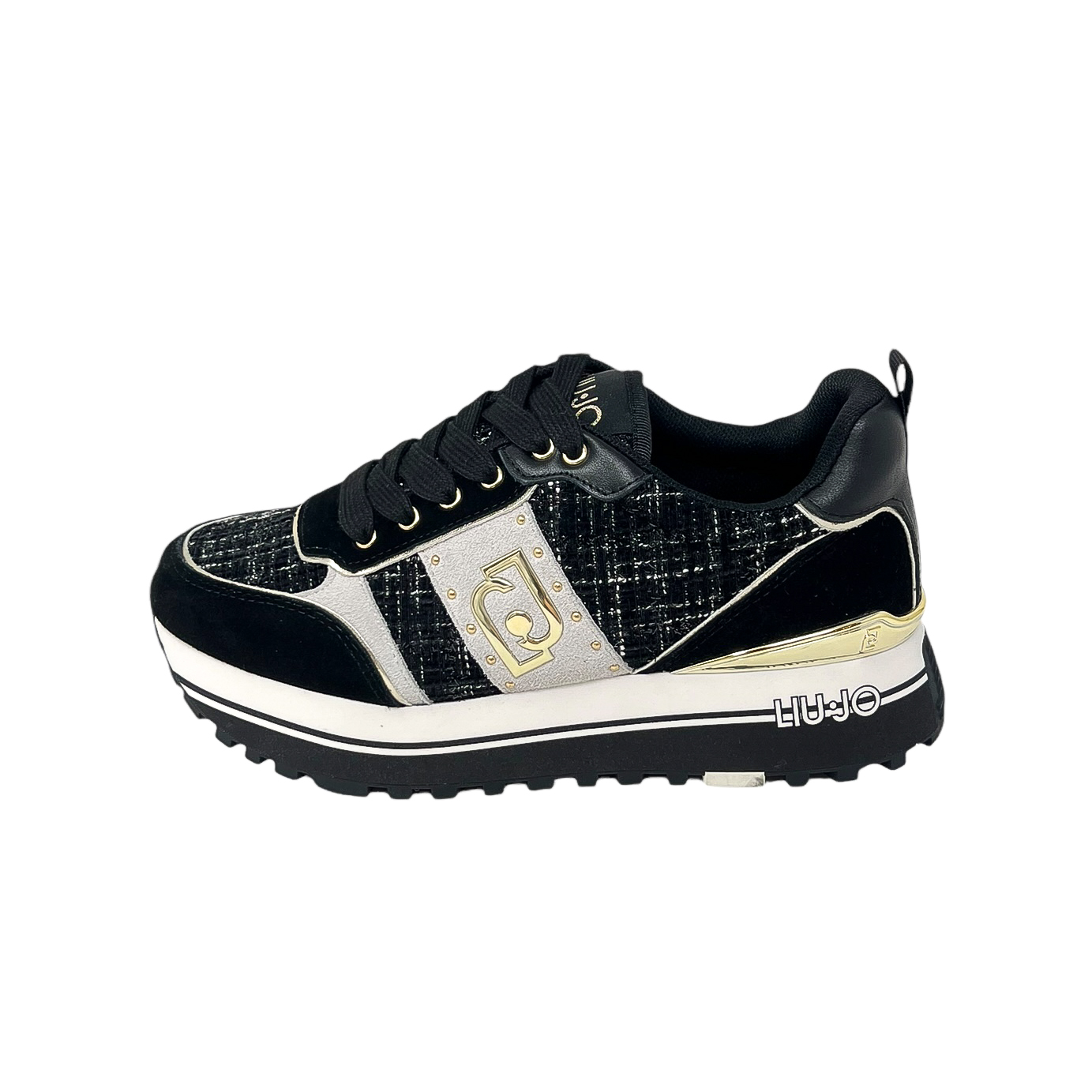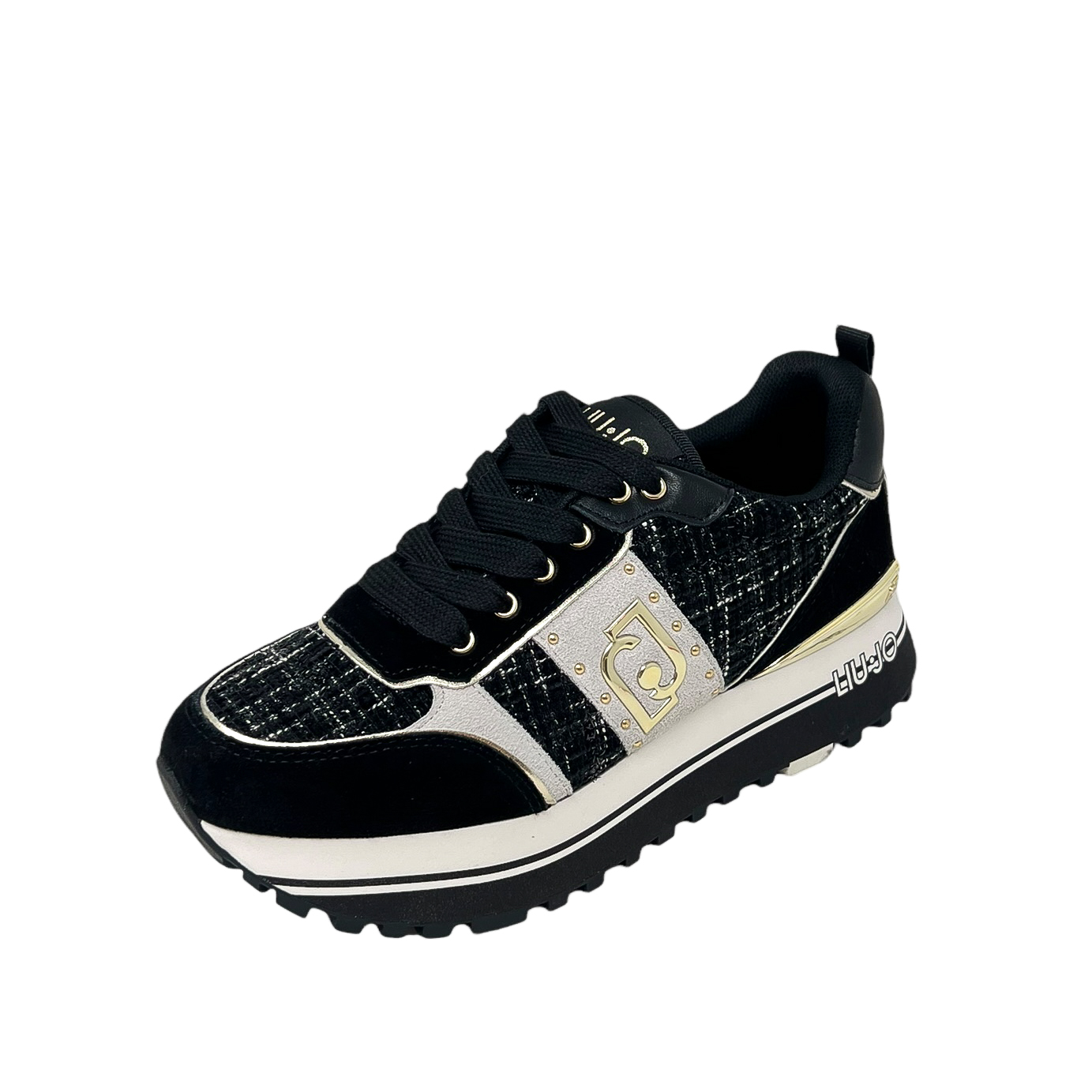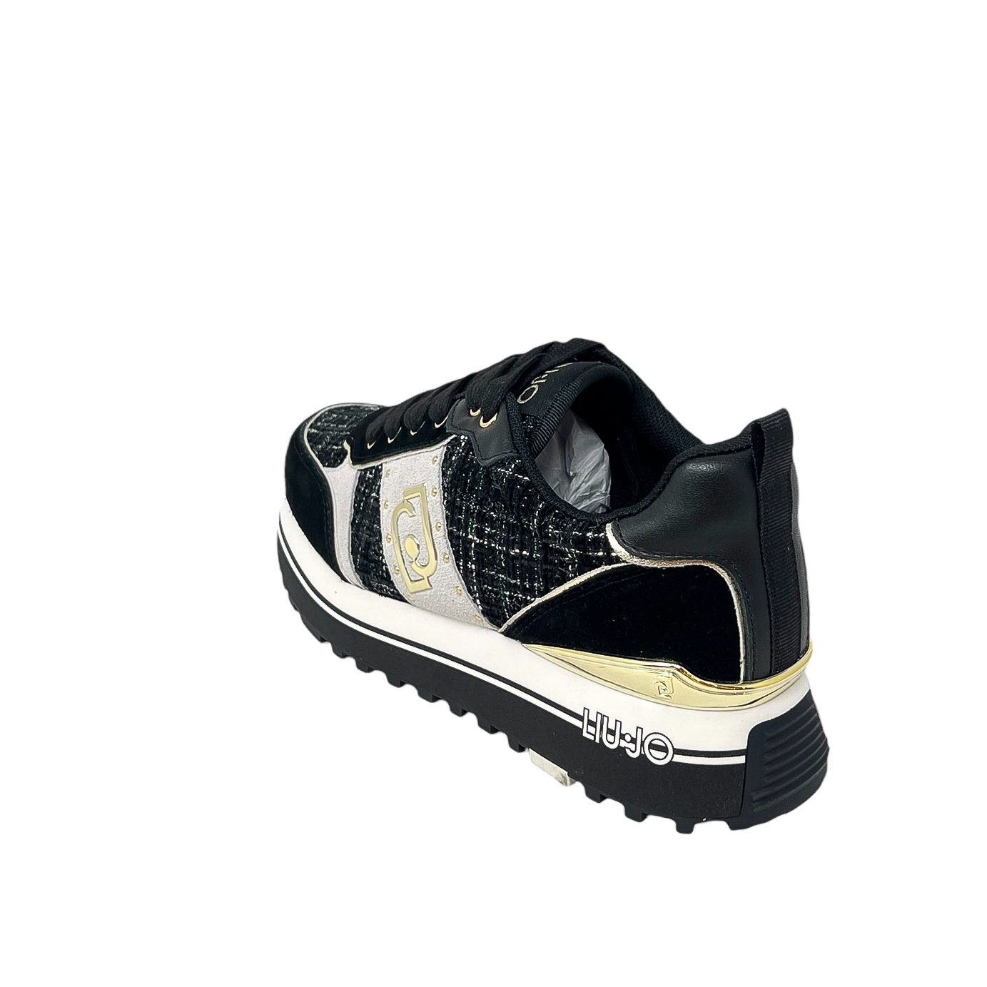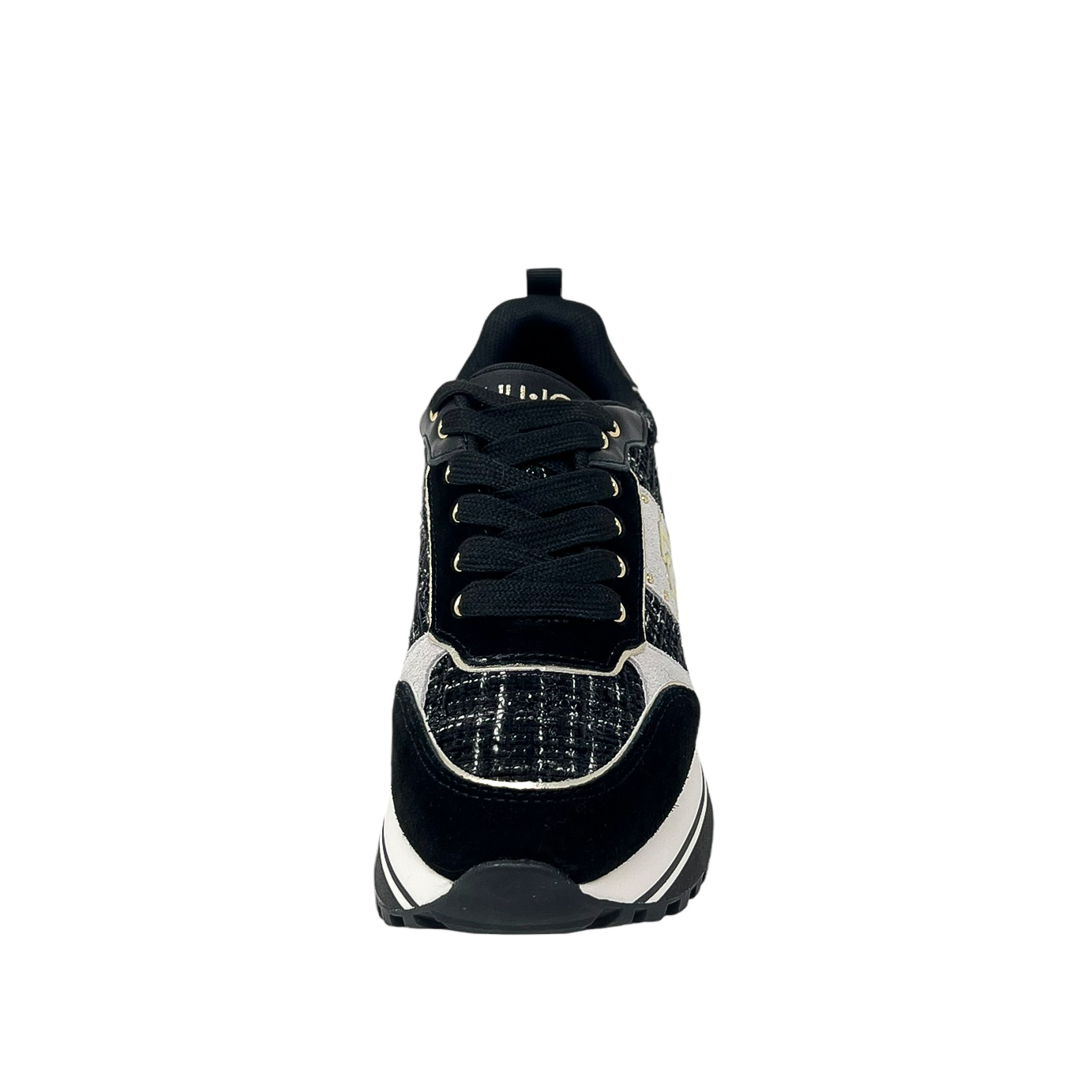 LIU JO BF4003 SNEAKER BIANCO/ORO – NERO /TESSUTO TWEED