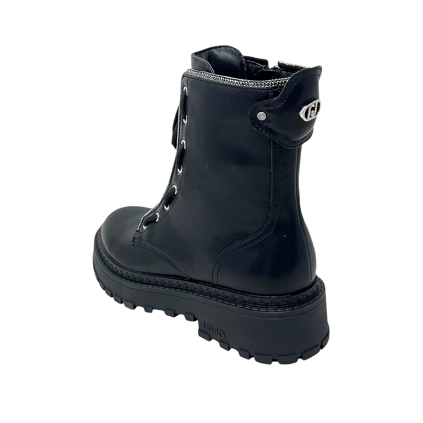 Anfibio nero con profilo in microstrass argento